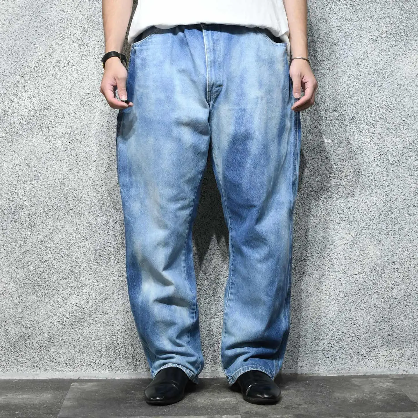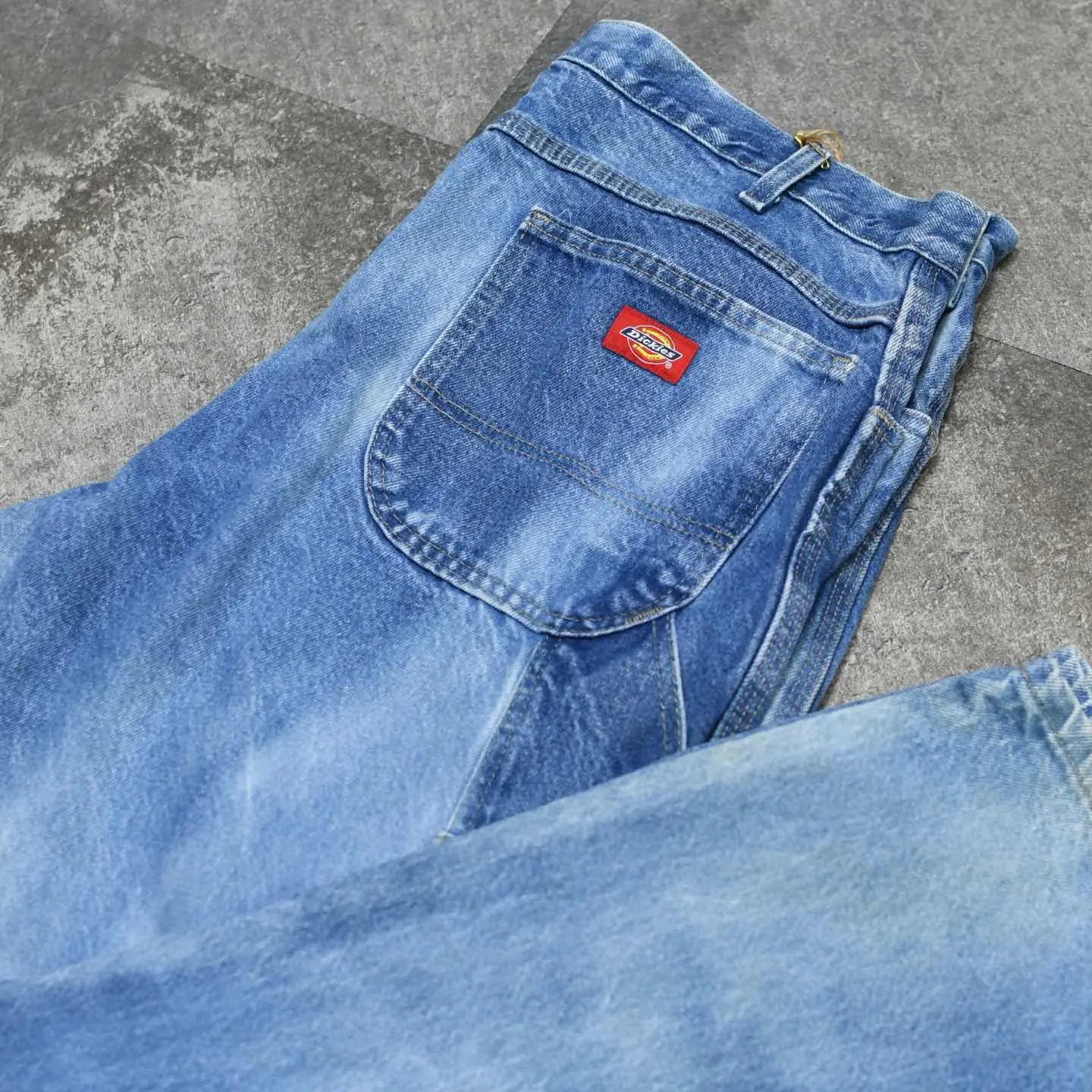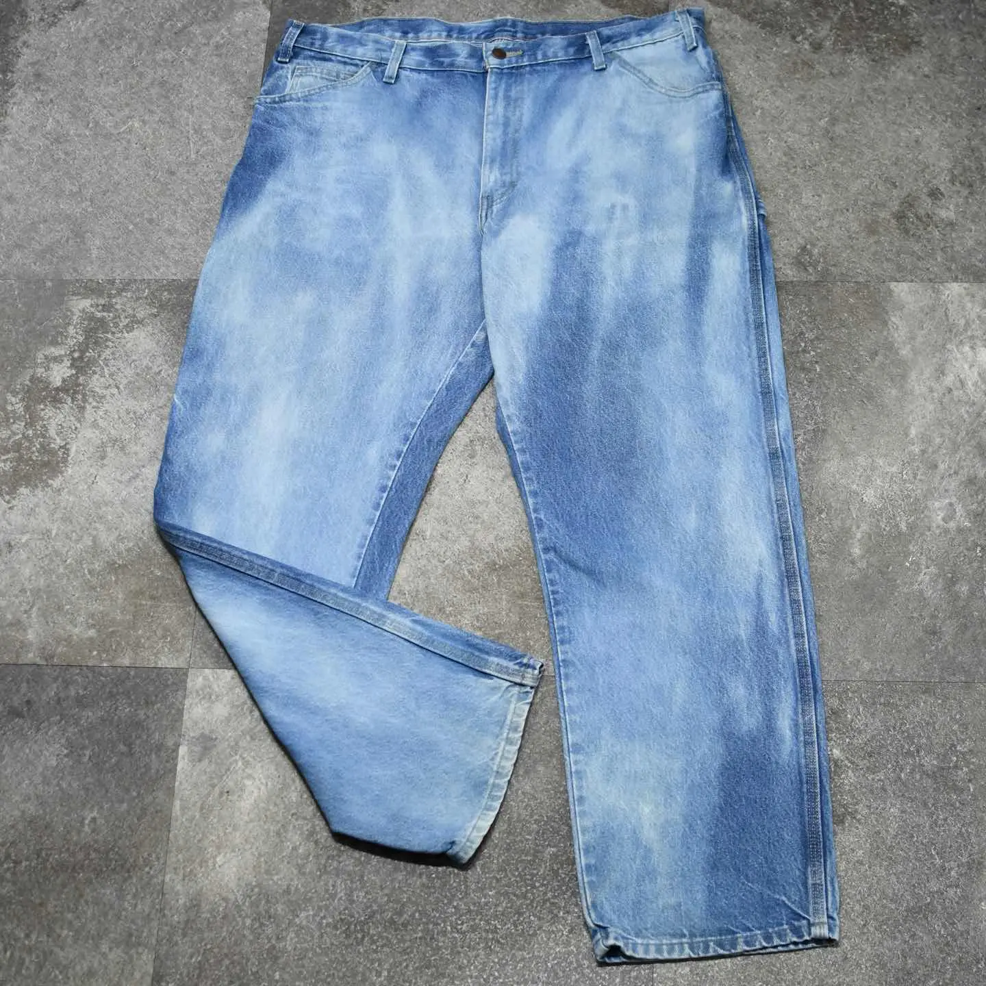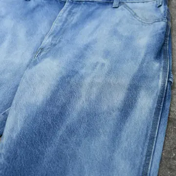 SIZE:38x32 ウエスト98cm 総丈109cm 股下79cm わたり39cm 裾幅23cm fabric/cotton 着用画像 177cm/64kg Dickiesのペインターパンツをブリーチ。 規則性無く、尚且つ淡くブリーチさせることで、 派手過ぎずスタイリングに落とし込める 一本ではないでしょうか。 ペインターパンツらしいワイドなシルエットで、 デニムらしくカジュアルに、雑に履きたい パンツです。 トリプルステッチやハンマーポケットなどの ディテールも抜かりなく◎ ※裾上げ等のレングス直しにつきましては、 購入前に、必ずご連絡お願い致します。 ※撮影状況により、実物と多少色が異なる 場合がございます。 ※古着を取り扱っているため、気づかない汚れや ほつれがある場合がございます。 ※サイズは着用感で選んでおり、 表記サイズは説明欄の最初に記載しております。 古着 オーバーサイズ old vintage ヴィンテージ used 80's 90's POLO RALPH LAUREN Eddie Bauer OLD GAP LANDS' END ランズエンド LLBean エルエルビーン エディーバウアー ラルフローレン ブルックスブラザーズ Brooks Brothers ディッキーズ デニム ワイドパンツ リメイク古着 などがお好きな方 #vintage #オーバーサイズ #old #used #90s #80s #古着 #ヴィンテージ #LLBean #エルエルビーン #EddieBauer #エディーバウアー #oldgap #オールドギャップ #LANDSEND #NAUTICA #ノーティカ #ラルフローレン #POLORALPHLAUREN #ブルックスブラザーズ #BrooksBrothers #デニム #Dickies #ペインターパンツ #デニム #デニムパンツ #リメイク #リメイク古着 #デニムパンツ