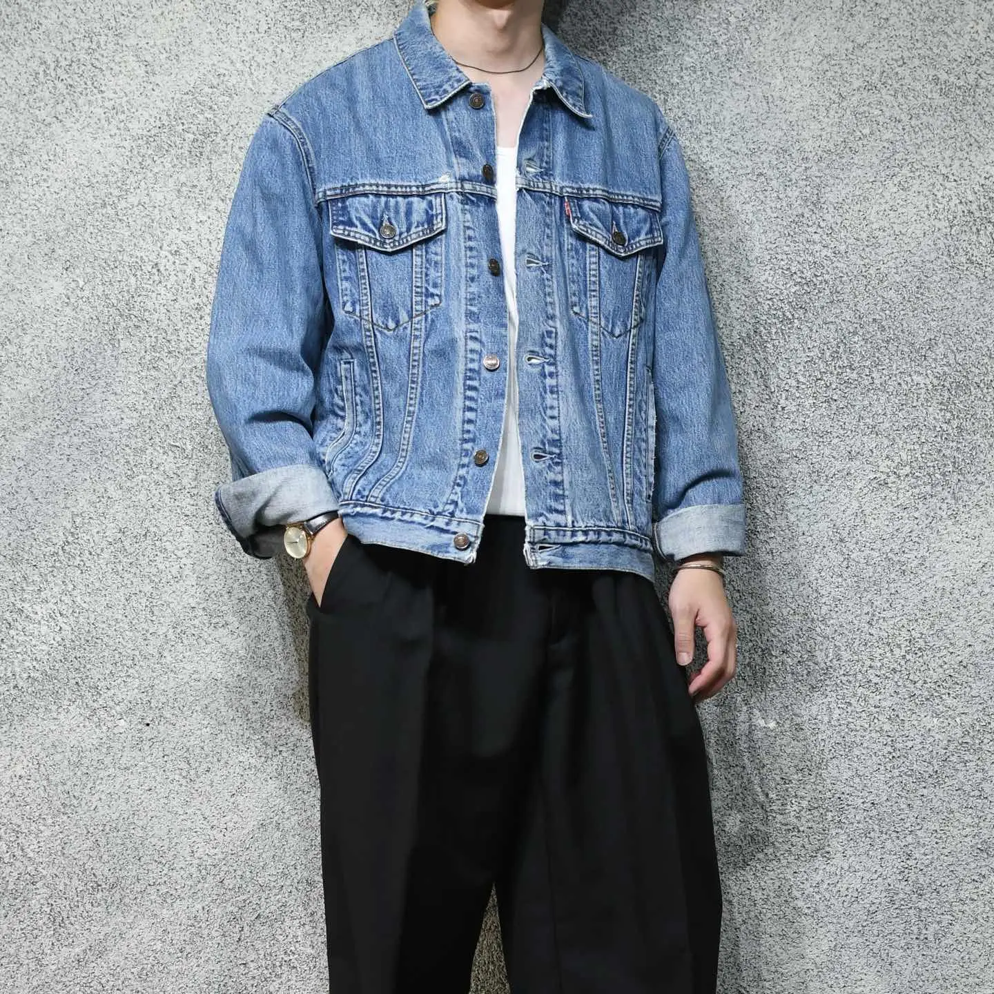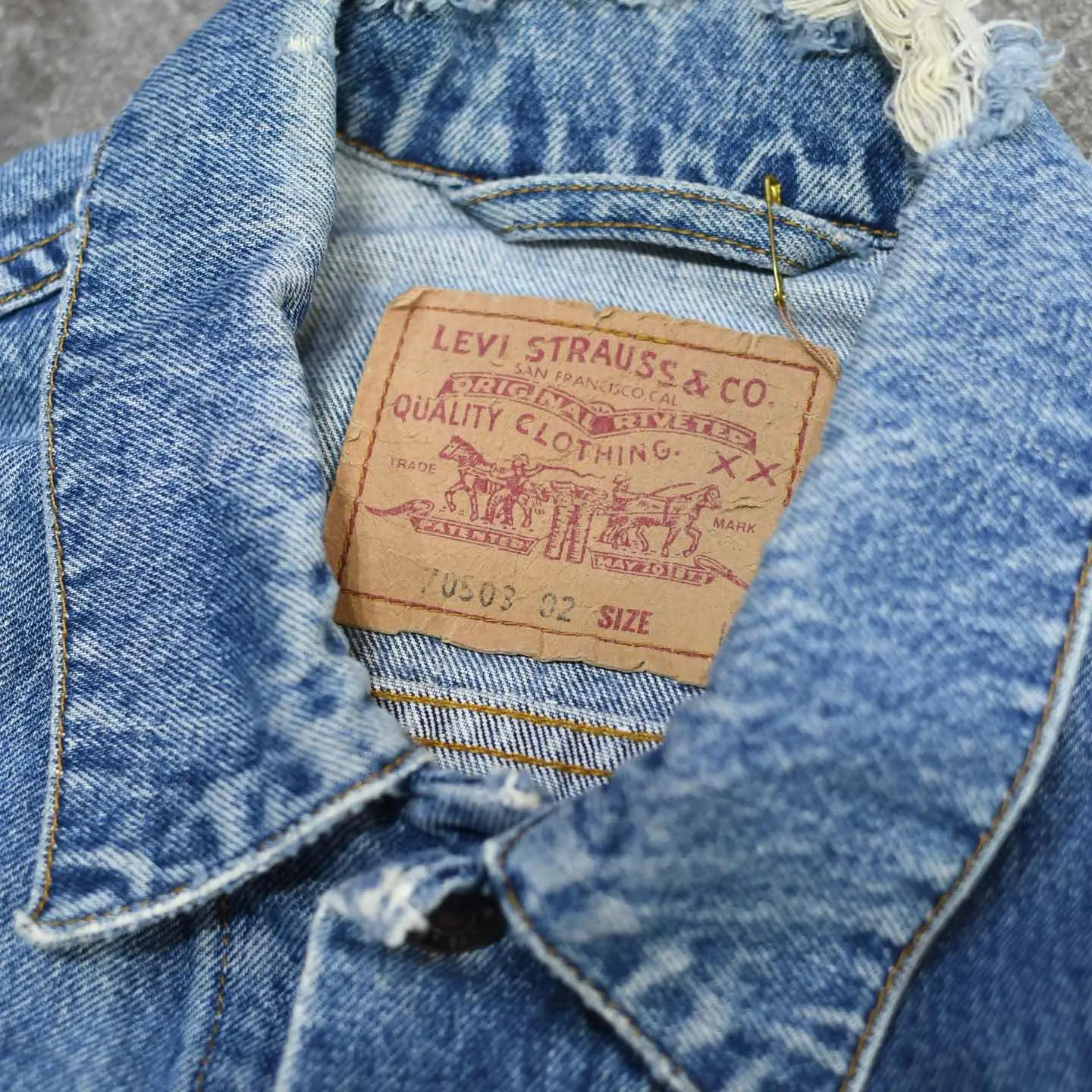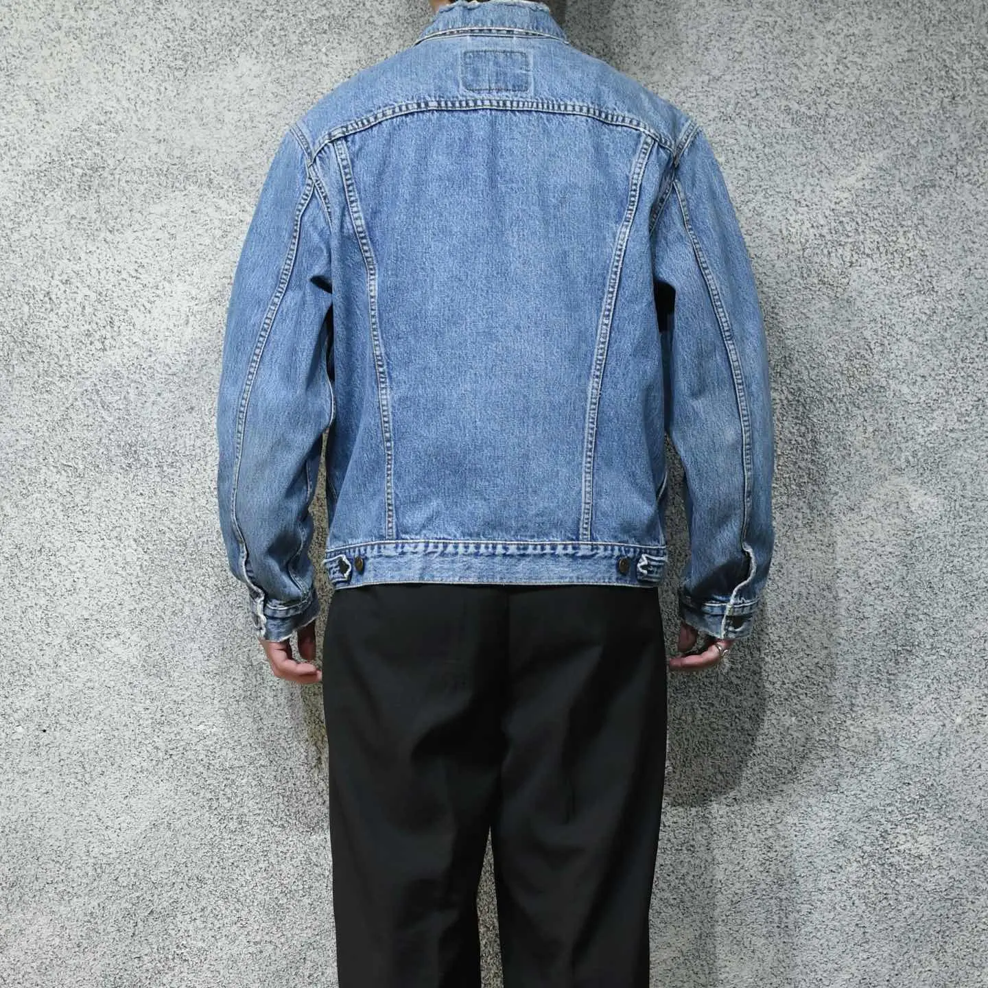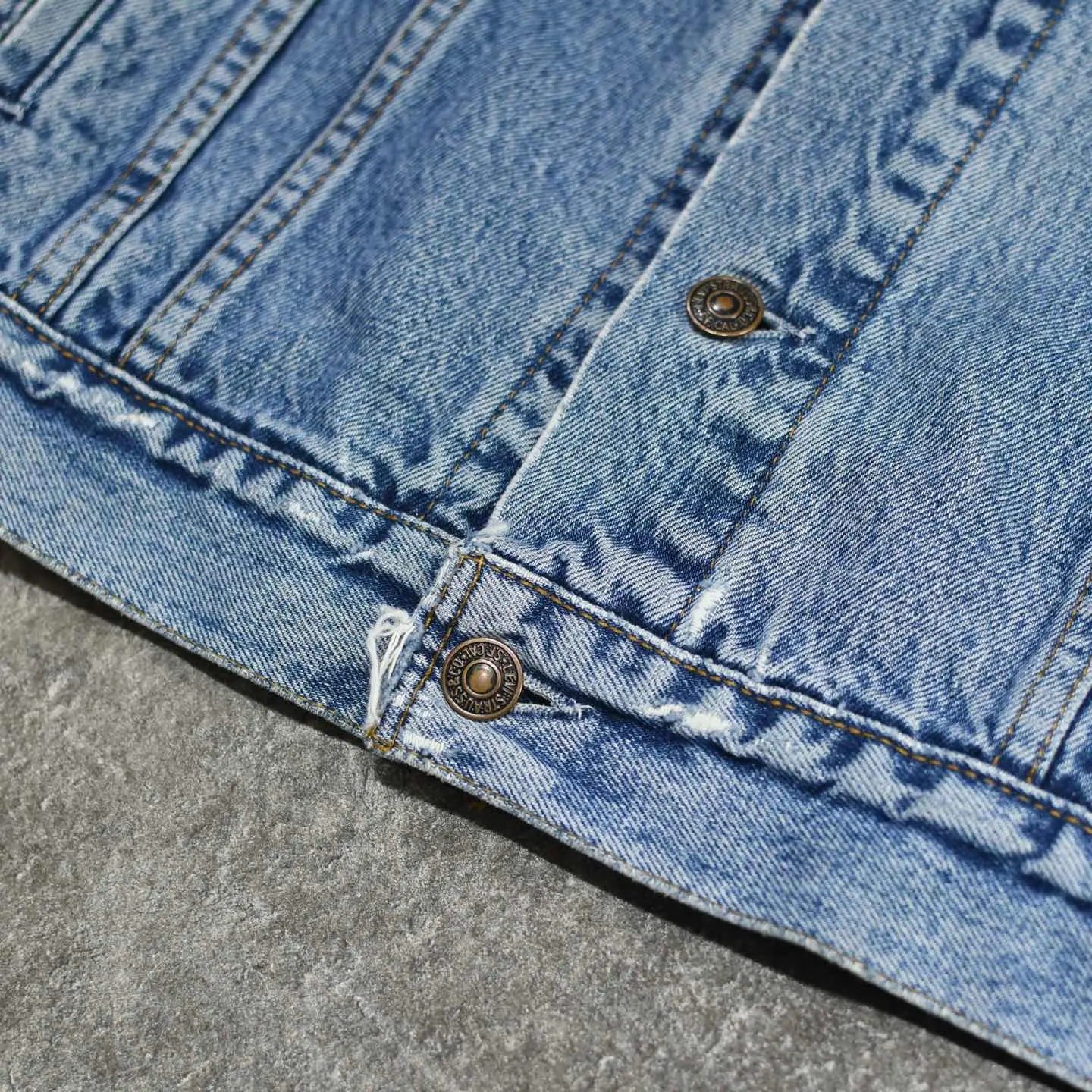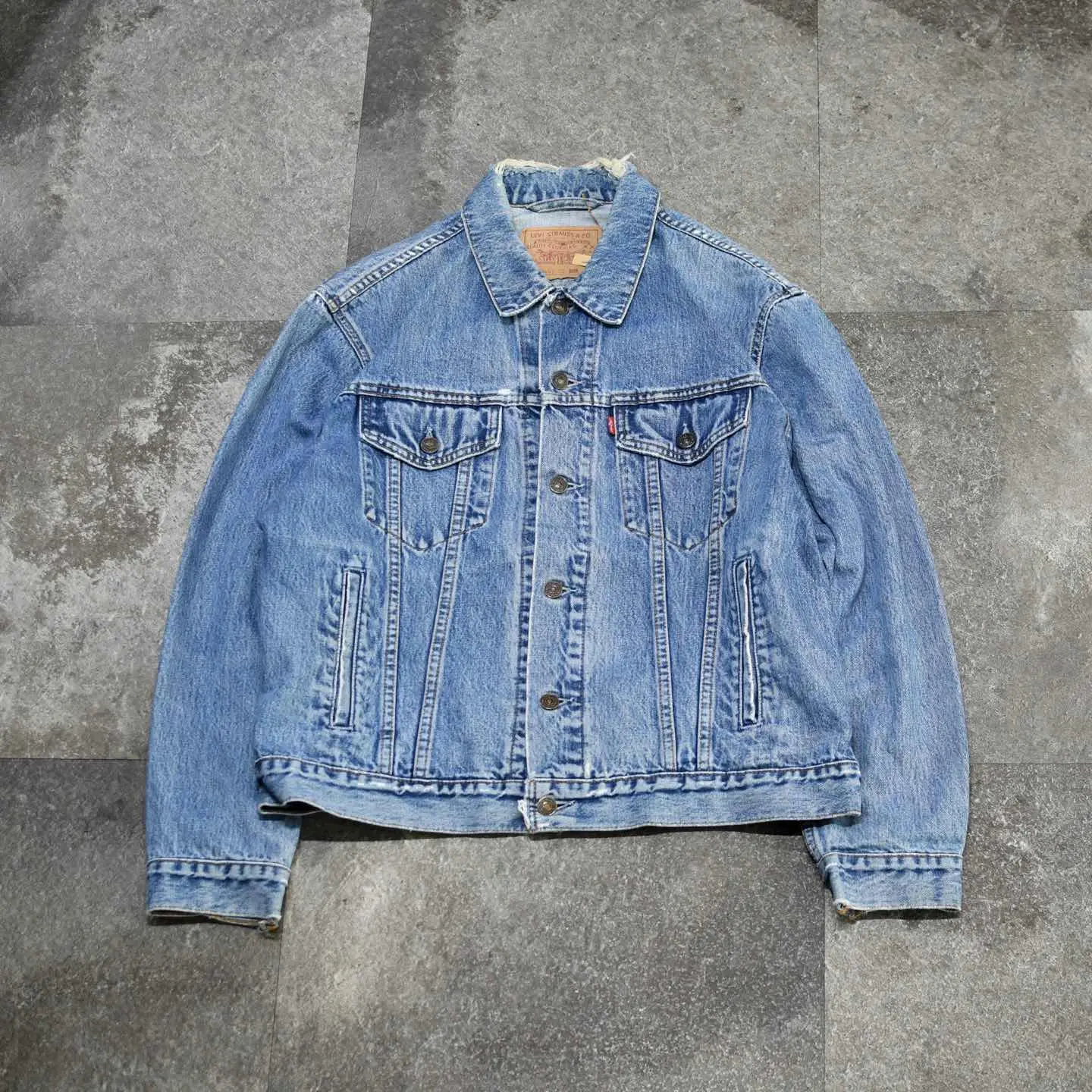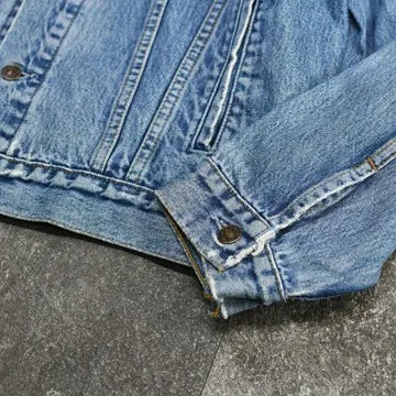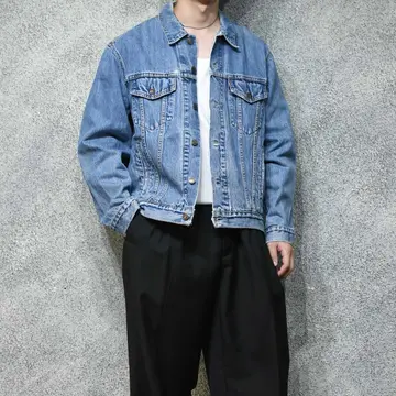 SIZE:L 着丈65cm 肩幅52cm 身幅63cm 袖丈64cm fabric/cotton 着用画像 177cm/64kg 米LEVI’Sのジャケットと比べ、身幅はゆったりと、 そして丈もサイドポケットが付いた分だけ伸びた 70503。 その為短過ぎることのない丈感で、 幅広いスタイリングへ落とし込め、さらに程良く 擦り切れた襟や袖口から雰囲気も持ち合わせた 逸品です。 デイリーユースにも、タウンユースにも着たい 1着ですし、袖を通した後には よりしっくり来るような、そんな個体でした。 腕まくりなんかしながら、ぜひ。 ※撮影状況により、実物と多少色が異なる場合が ございます。 ※古着を取り扱っているため、気づかない汚れや ほつれ等がある場合がございます。 ※サイズは着用感で選んでおり、 表記サイズではございません。 表記サイズは説明欄の最初に記載しております。 古着 オーバーサイズ old vintage ヴィンテージ used 80's 90's POLO RALPH LAUREN Eddie Bauer OLD GAP LANDS' END ランズエンド LLBean エルエルビーン オールドギャップ エディーバウアー ラルフローレン ブルックスブラザーズ Brooks Brothers トラッカージャケット ジャケット Gジャン リーバイス などがお好きな方 #vintage #オーバーサイズ #old #used #90s #80s #古着 #ヴィンテージ #LLBean #エルエルビーン #EddieBauer #エディーバウアー #oldgap #オールドギャップ #LANDSEND #NAUTICA #ノーティカ #ラルフローレン #POLORALPHLAUREN #ブルックスブラザーズ #BrooksBrothers #トラッカージャケット #デニムジャケット #Gジャン #LEVIS #リーバイス #70503