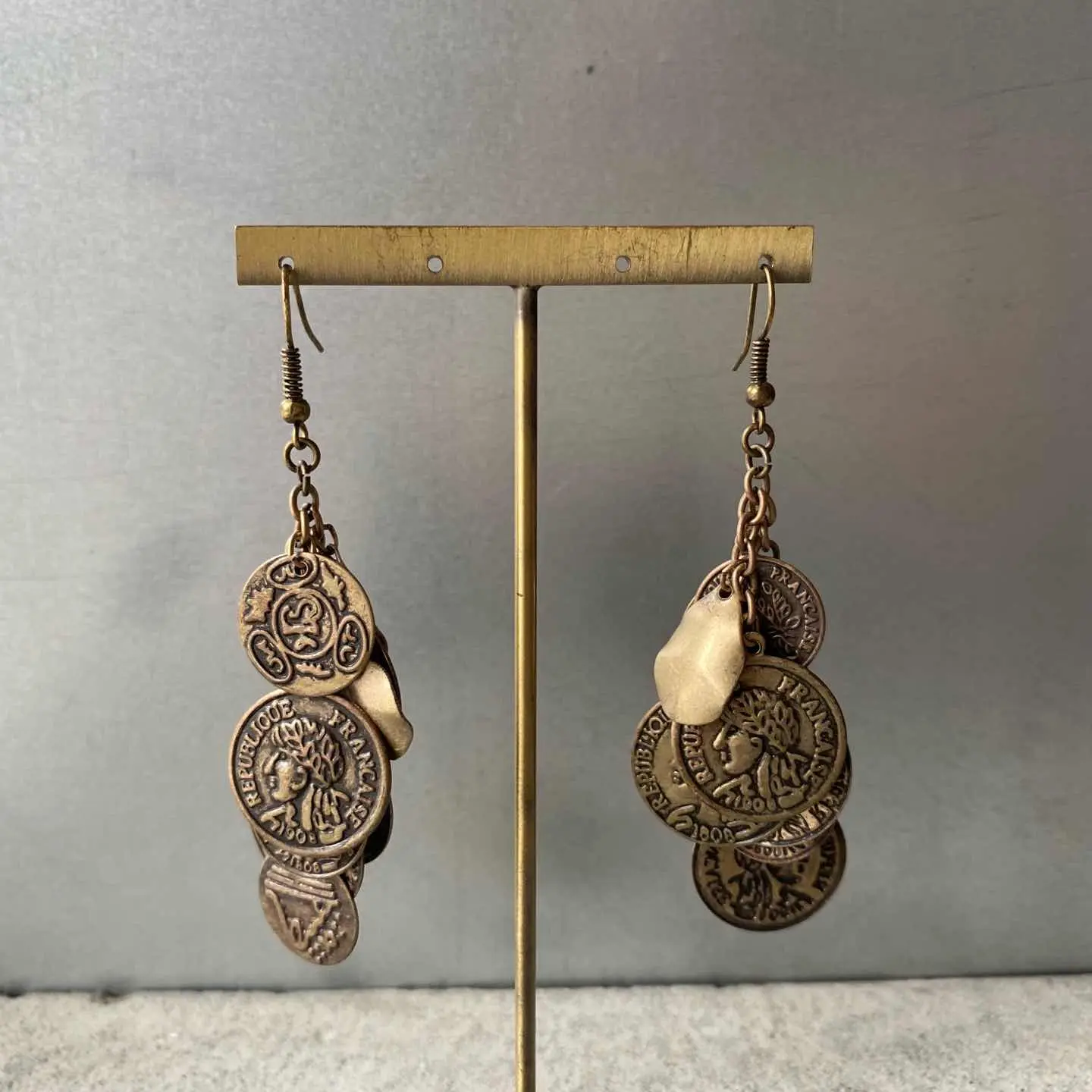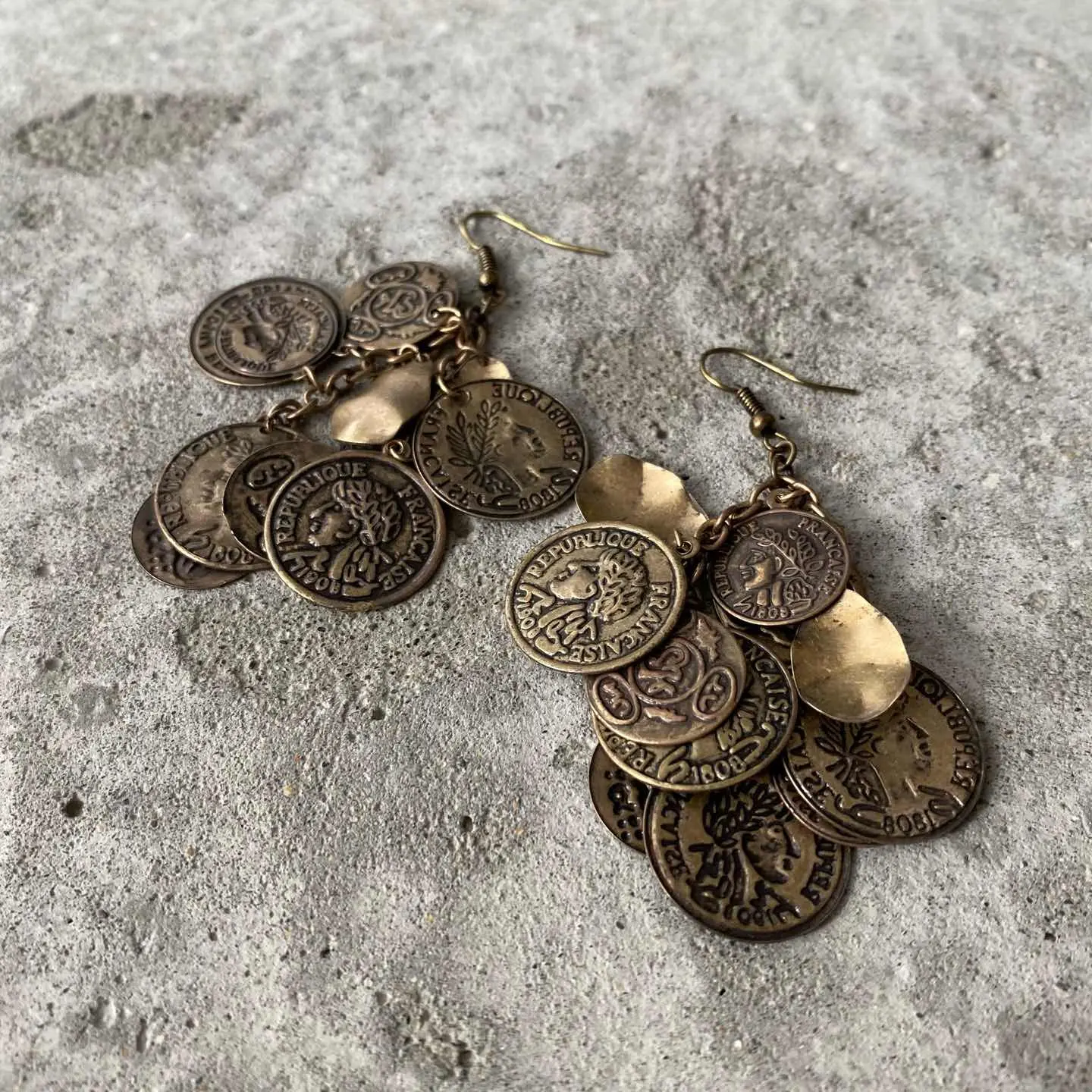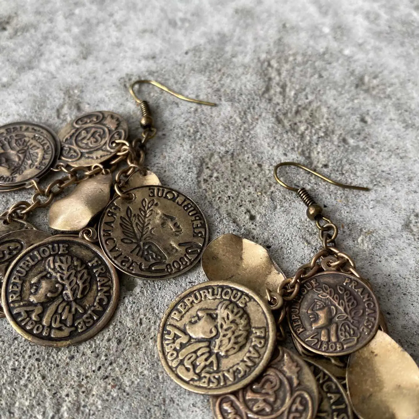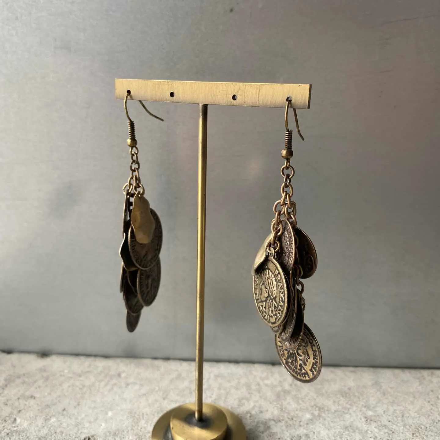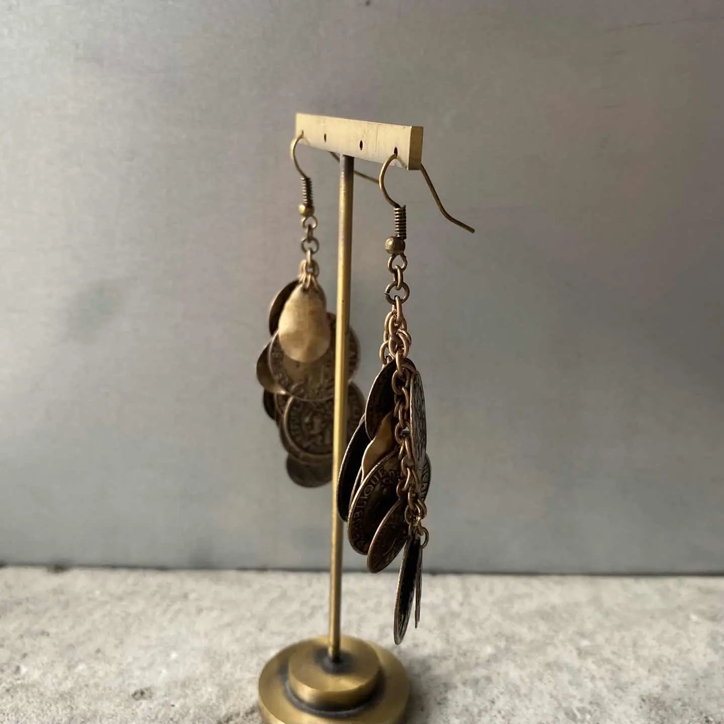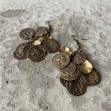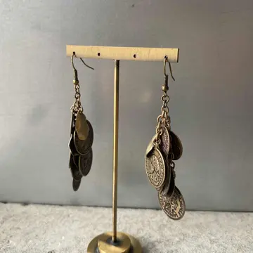コインチャームがジャラジャラと揺れ動く個性的なデザインのUSAヴィンテージピアス。古びたメタルの色味も魅力的です。存在感がありコーディネートにお洒落な雰囲気をプラスしてくれます。 □Materials メタル(メッキ) □Size 約H7.8×W2.8㎝ □Condition【A】 経年によるメタルの変色はみられますが、使用感の少ない良好な状態です。古びた雰囲気がお好きな方におすすめです。中古品であることをご理解のうえお買い求めください。ご購入前にショッピングガイドのご確認をお願いいたします。 【S】未使用 【A】未使用に近い 【B】やや使用感あり 【C】使用感あり Item No.3337