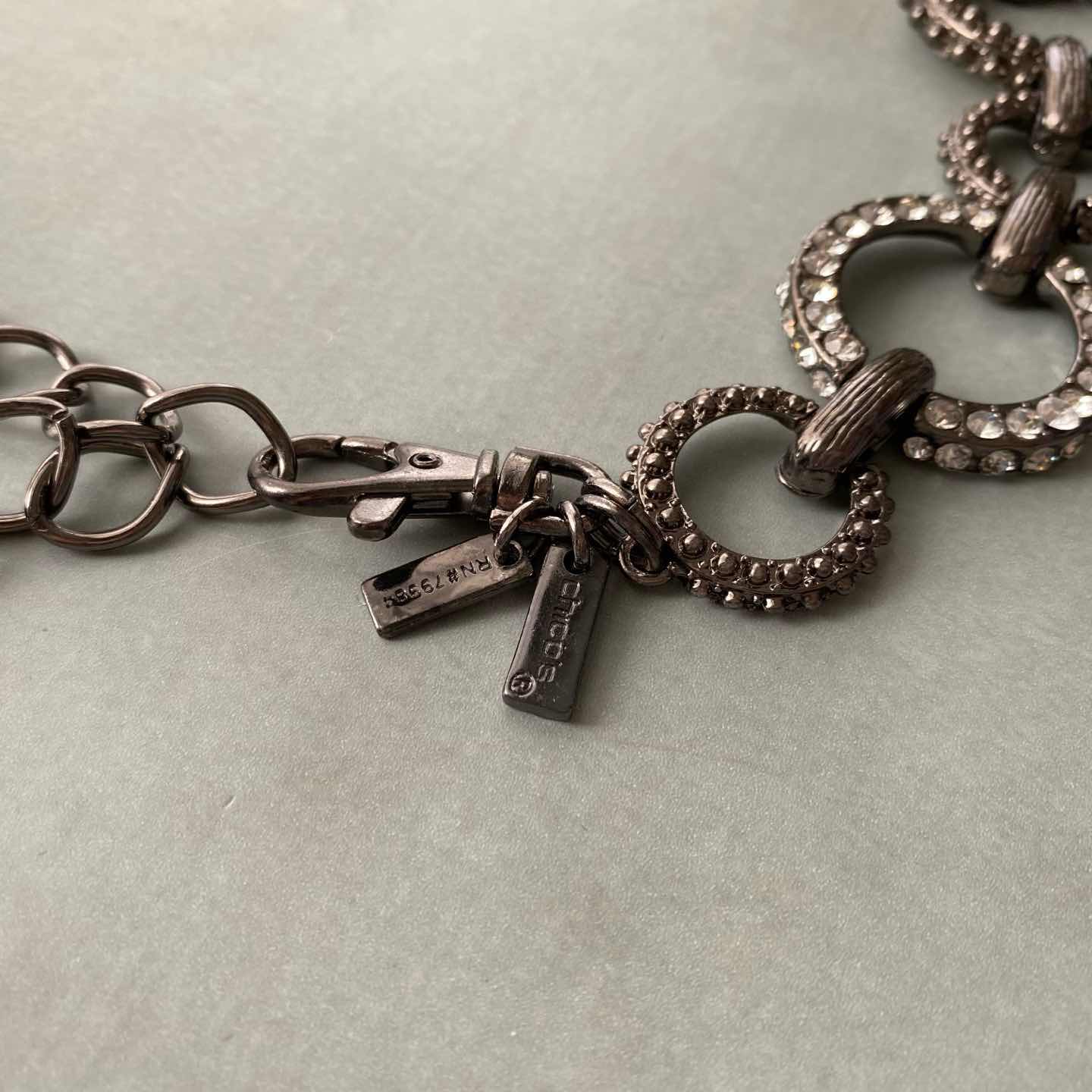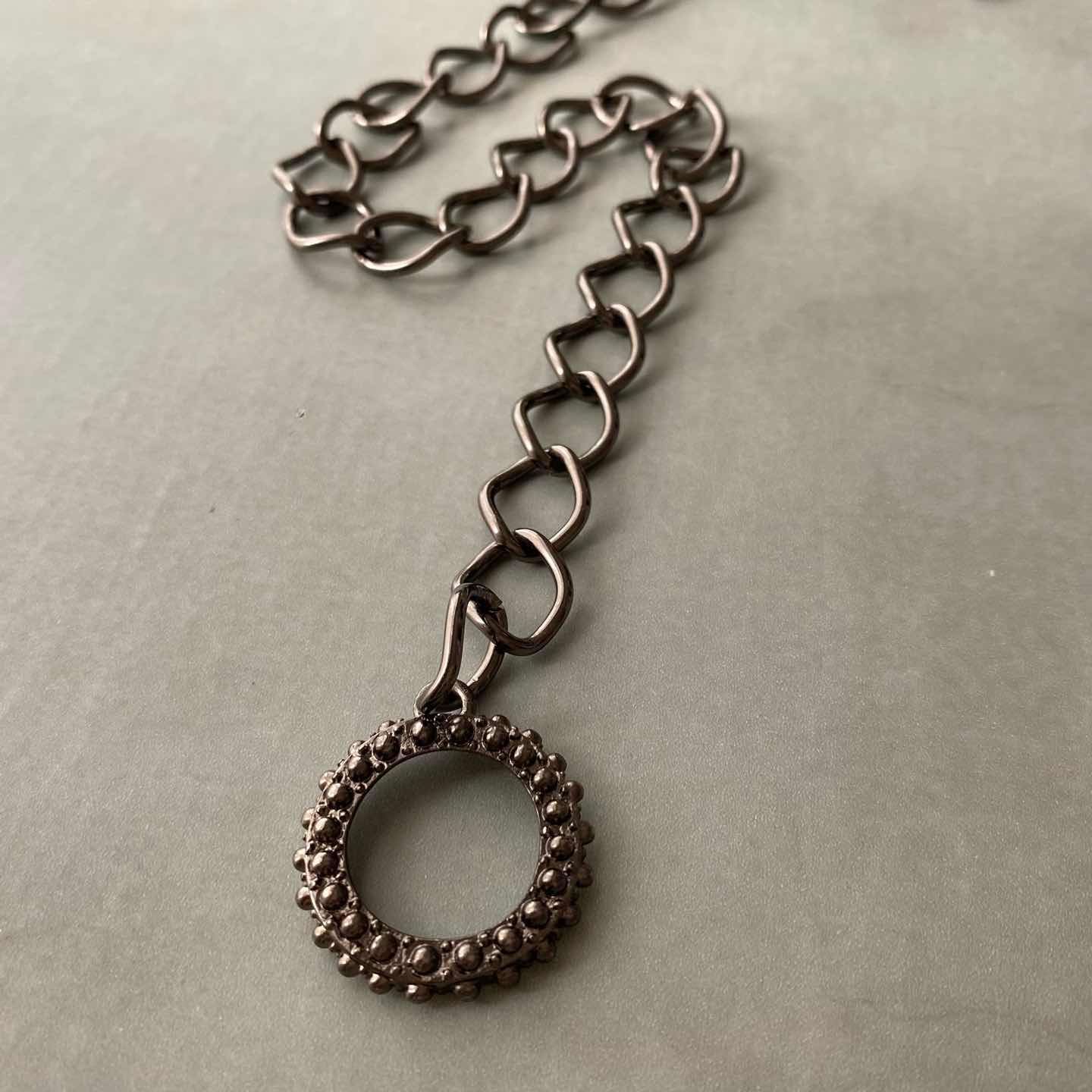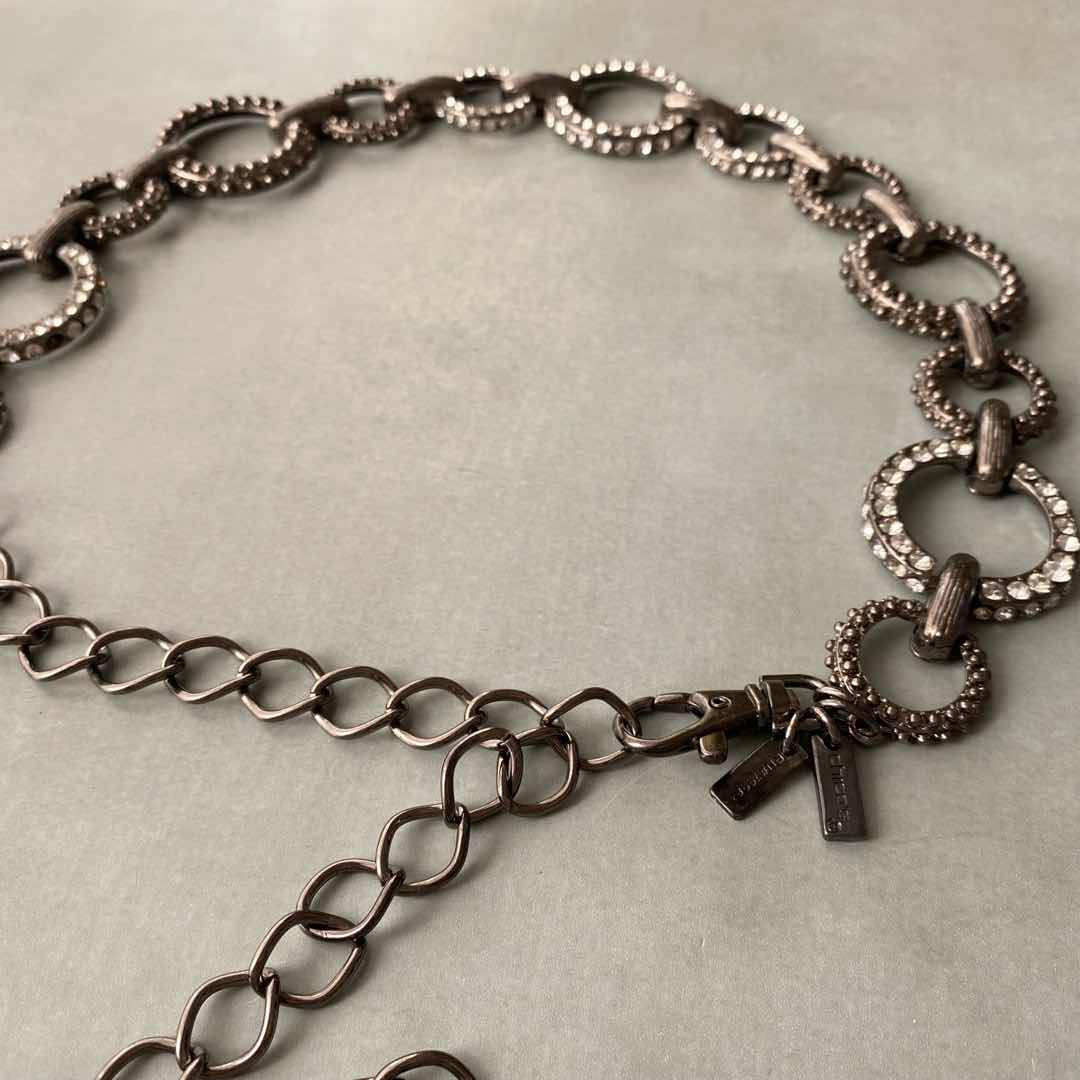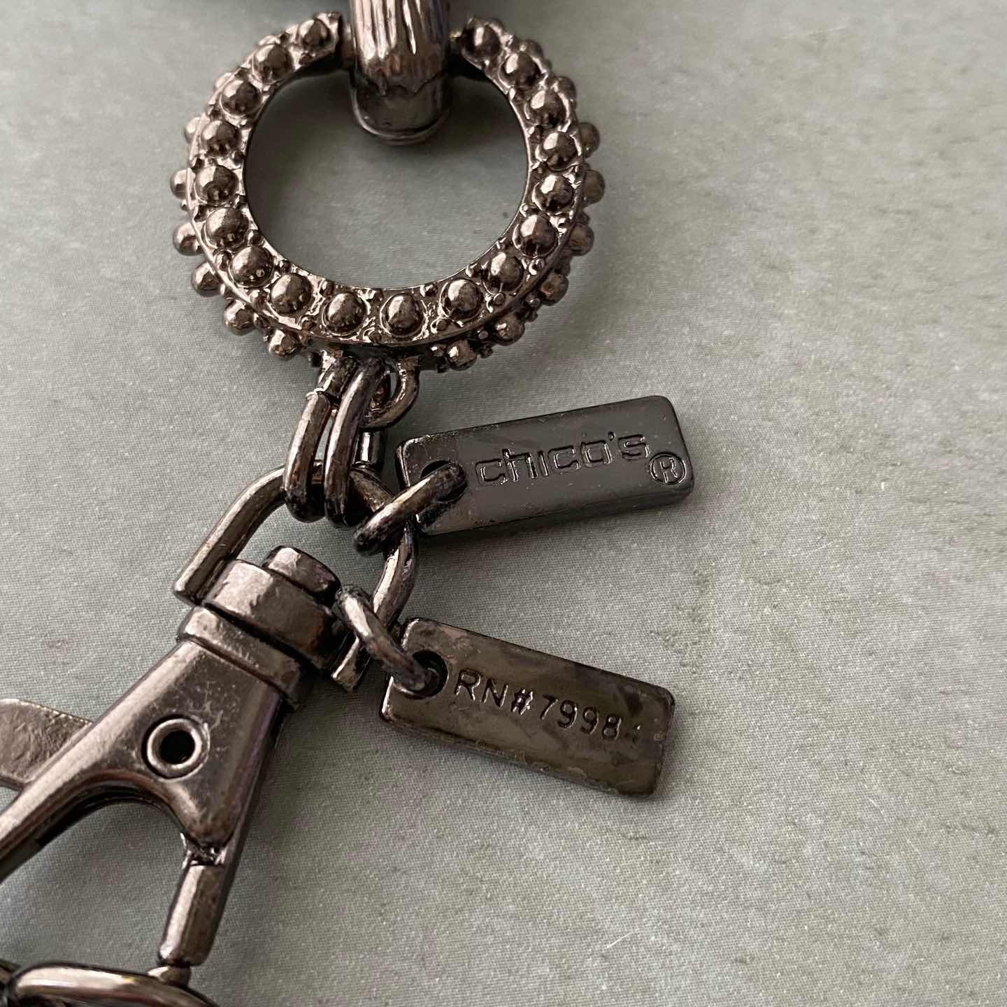 1983年アメリカで創業したアパレルブランド「CHICO'S」のベルト。ブラックカラーのチェーンにキラキラと輝くビジューが映える個性的なデザイン。重厚感のあるしっかりとした作りです。存在感がありコーディネートにお洒落な雰囲気をプラスしてくれます。 □Materials メタル(ブラックメッキ)、ガラスストーン □Size 全長 約101㎝(51〜98㎝間でサイズ調節可能) 幅 約4.2㎝ □Brand CHICO’S □Condition【B】 目立ったダメージはございません。中古品であることをご理解のうえお買い求めください。ご購入前に必ずショッピングガイドのご確認をお願いいたします。 【S】未使用 【A】未使用に近い 【B】やや使用感あり 【C】使用感あり Item No.3341