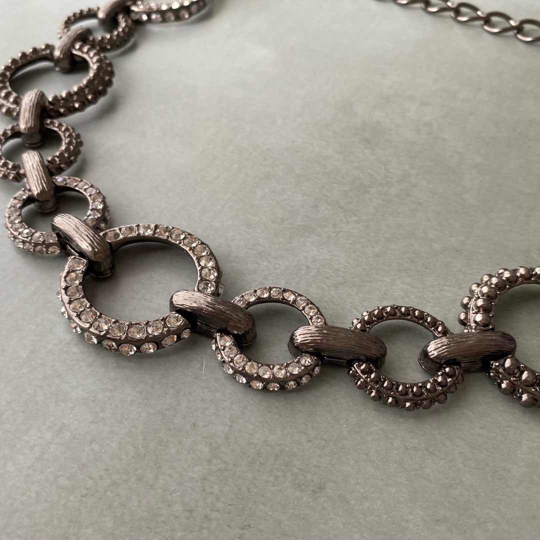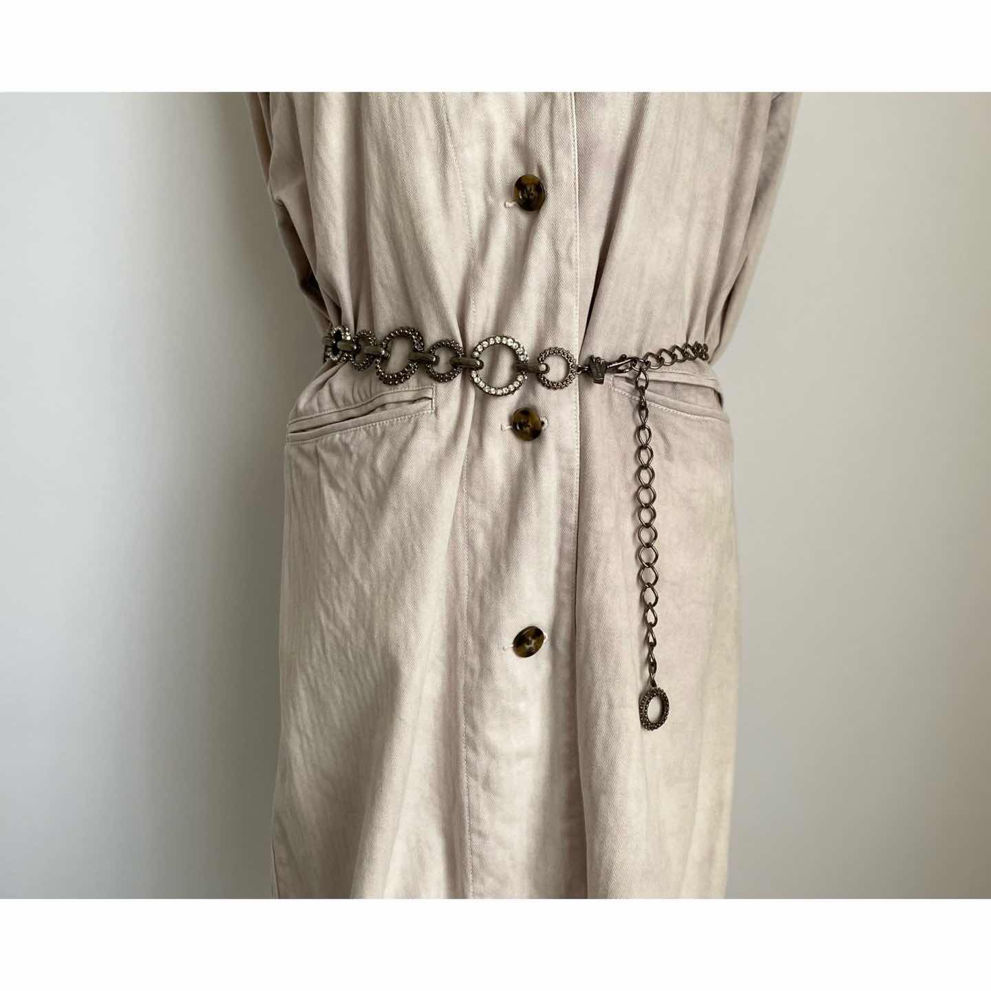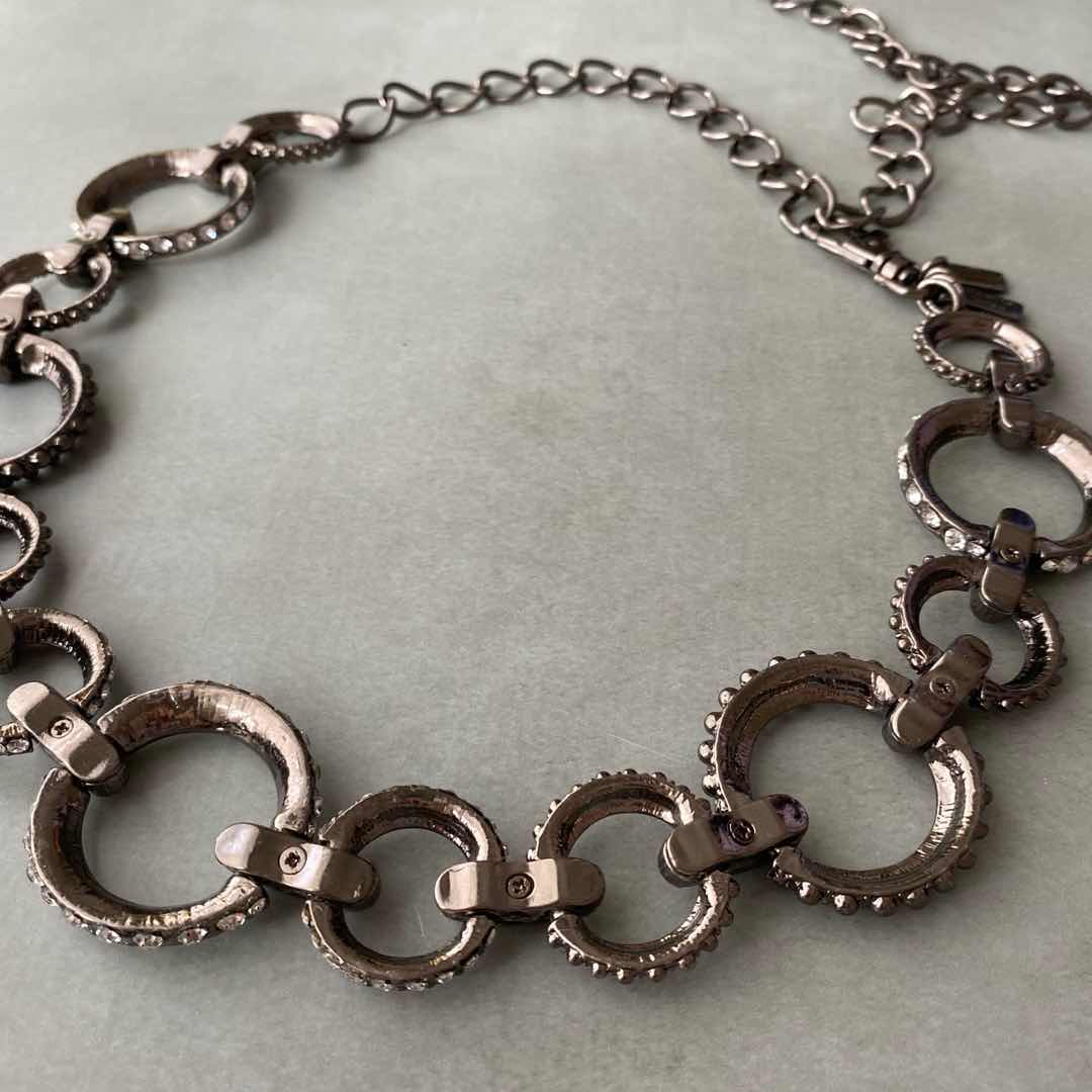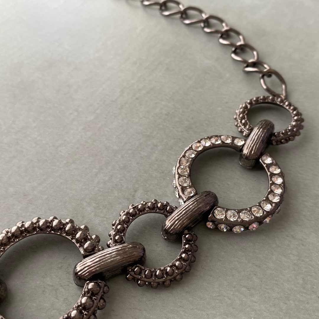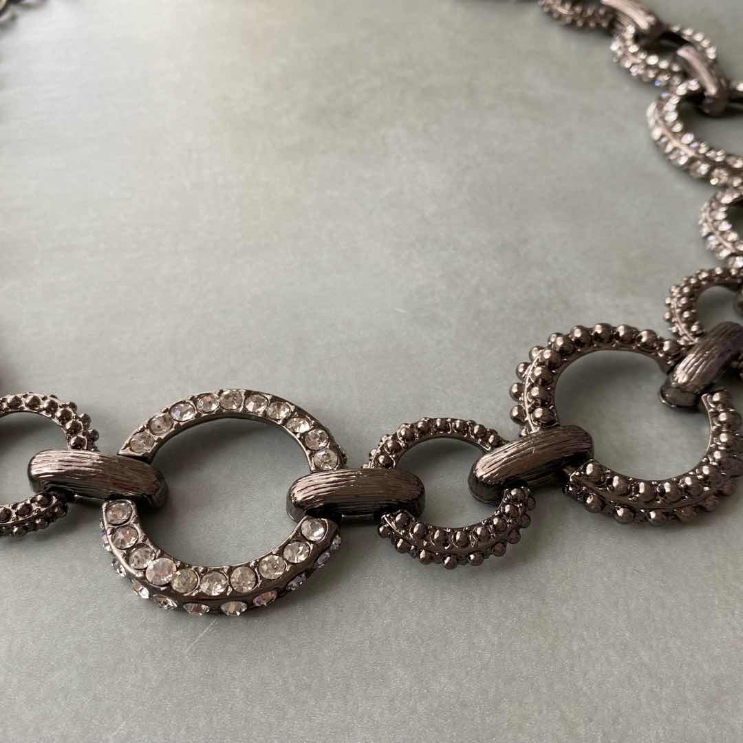1983年アメリカで創業したアパレルブランド「CHICO'S」のベルト。ブラックカラーのチェーンにキラキラと輝くビジューが映える個性的なデザイン。重厚感のあるしっかりとした作りです。存在感がありコーディネートにお洒落な雰囲気をプラスしてくれます。 □Materials メタル(ブラックメッキ)、ガラスストーン □Size 全長 約101㎝(51〜98㎝間でサイズ調節可能) 幅 約4.2㎝ □Brand CHICO’S □Condition【B】 目立ったダメージはございません。中古品であることをご理解のうえお買い求めください。ご購入前に必ずショッピングガイドのご確認をお願いいたします。 【S】未使用 【A】未使用に近い 【B】やや使用感あり 【C】使用感あり Item No.3341
