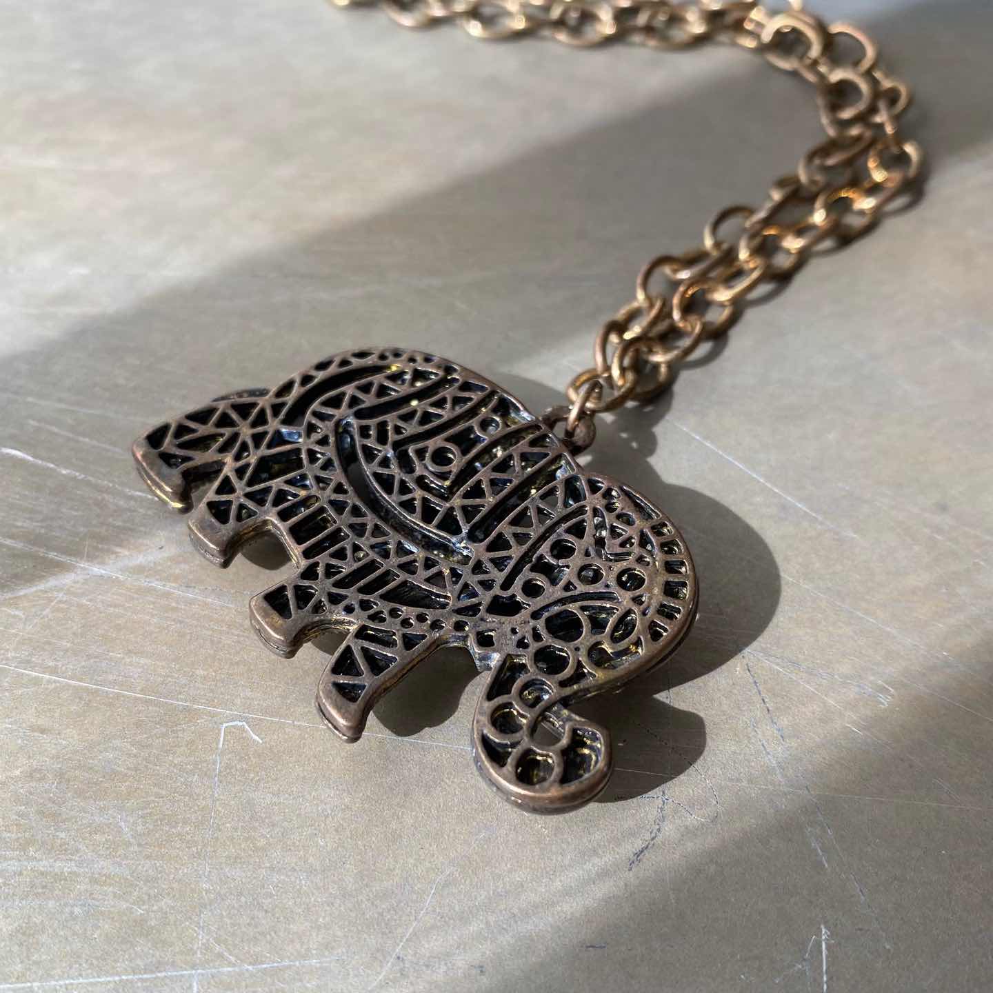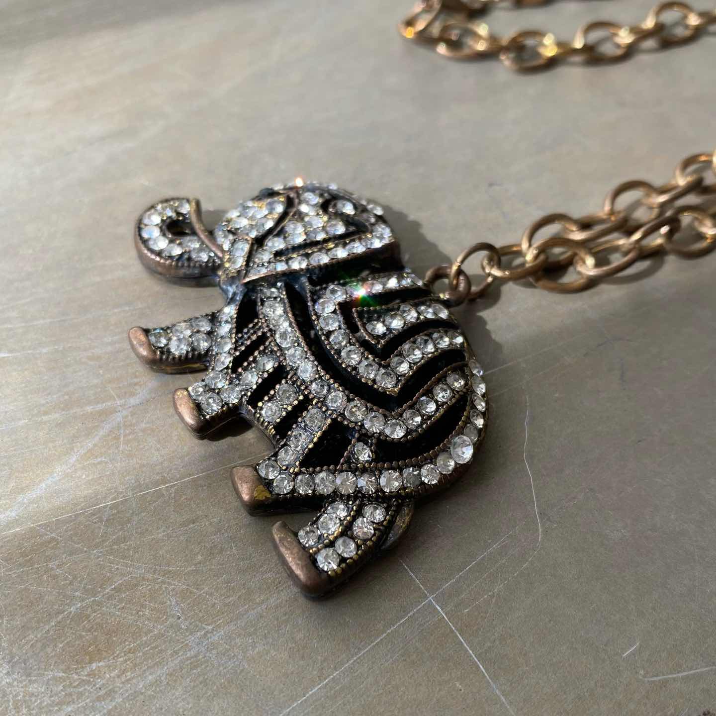 レトロ可愛いゾウのUSAヴィンテージネックレス。古びたメタルにビジューが映えるクラシカルなデザイン。大ぶり存在感がありスタイリングのポイントにおすすめです。 □Materials メタル、ガラスストーン □Size 全長 約51㎝ チェーン幅 約6.5㎜ チャームH3.5×W5.2㎝ 35g □Condition【B】 経年によるメタルのトーンダウンはみられますが目立ったダメージの無い良好な状態です。古びた雰囲気がお好きな方におすすめです。中古品であることをご理解のうえお買い求めください。ご購入前にショッピングガイドのご確認をお願いいたします。 【S】未使用 【A】未使用に近い 【B】やや使用感あり 【C】使用感あり Item No.3350