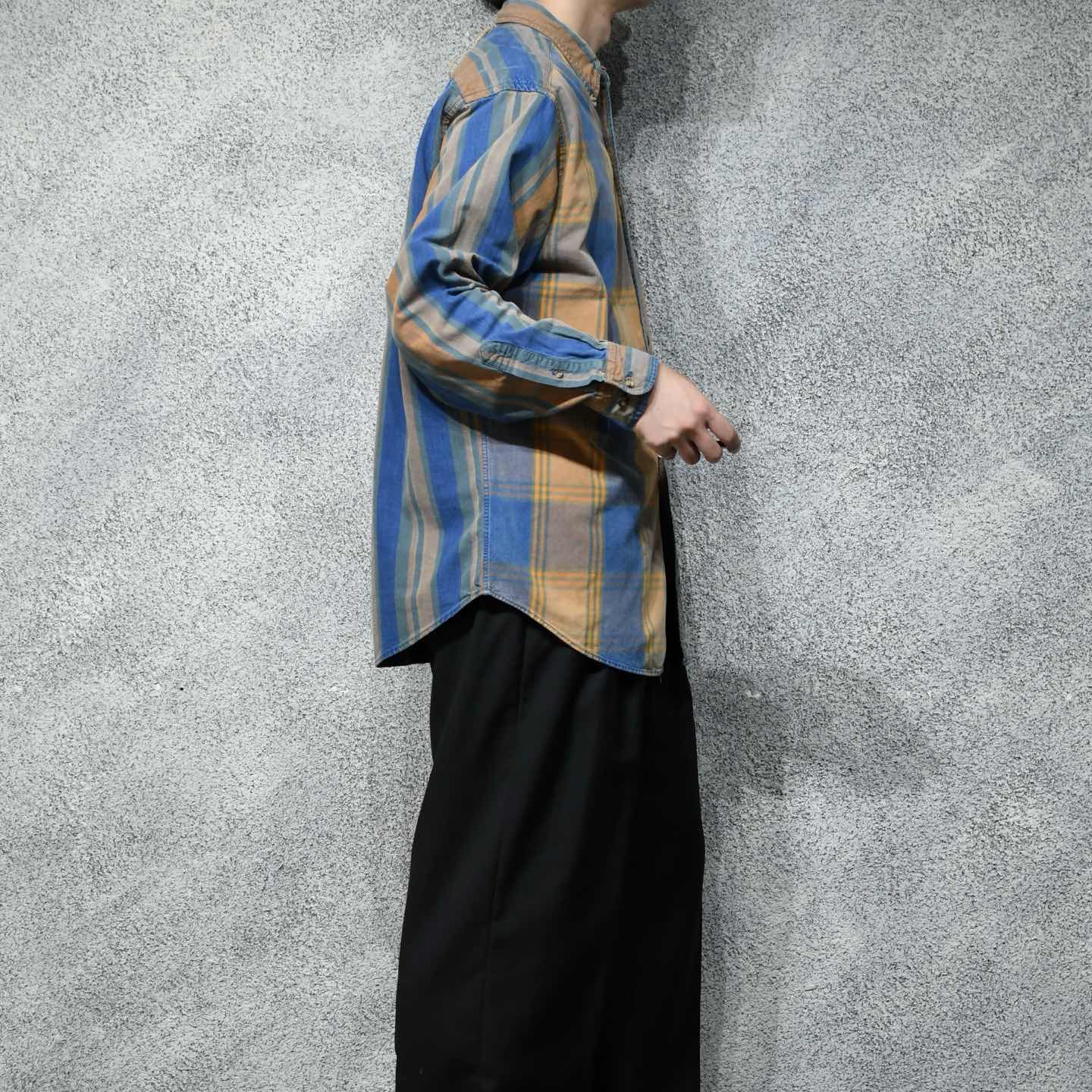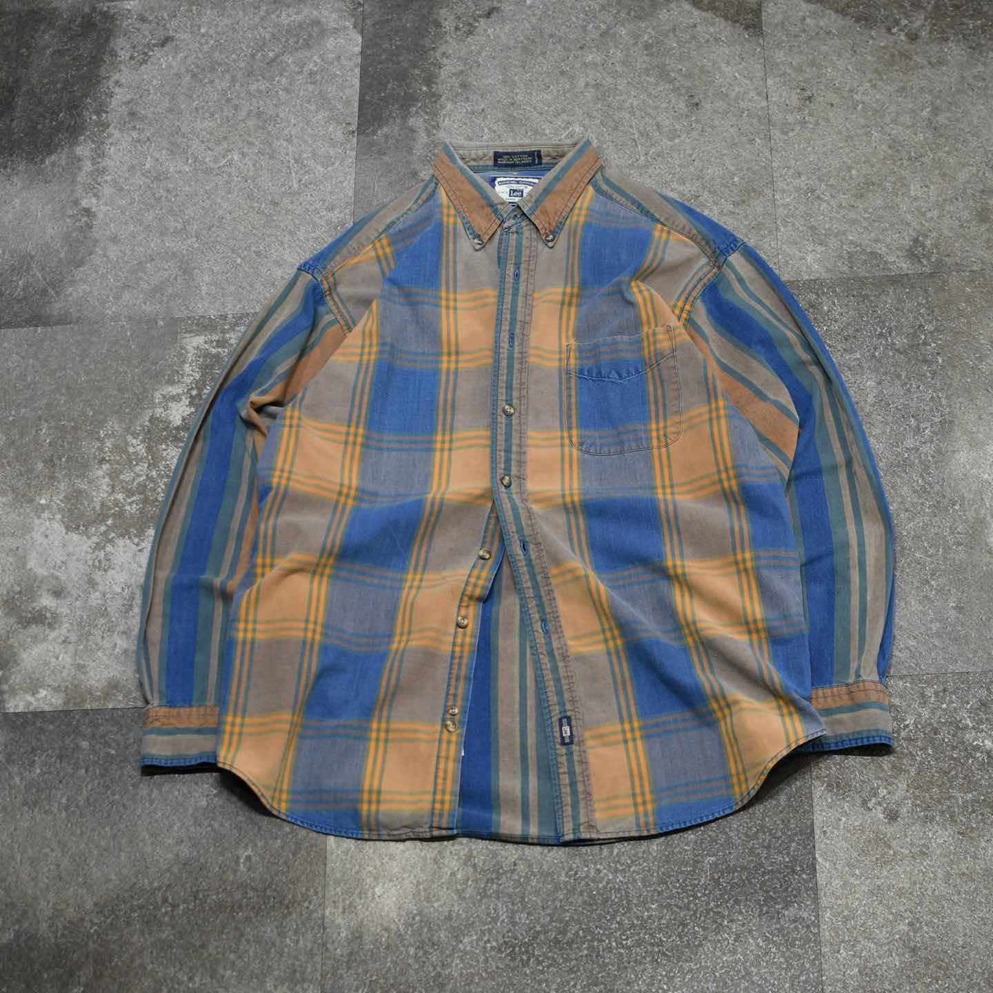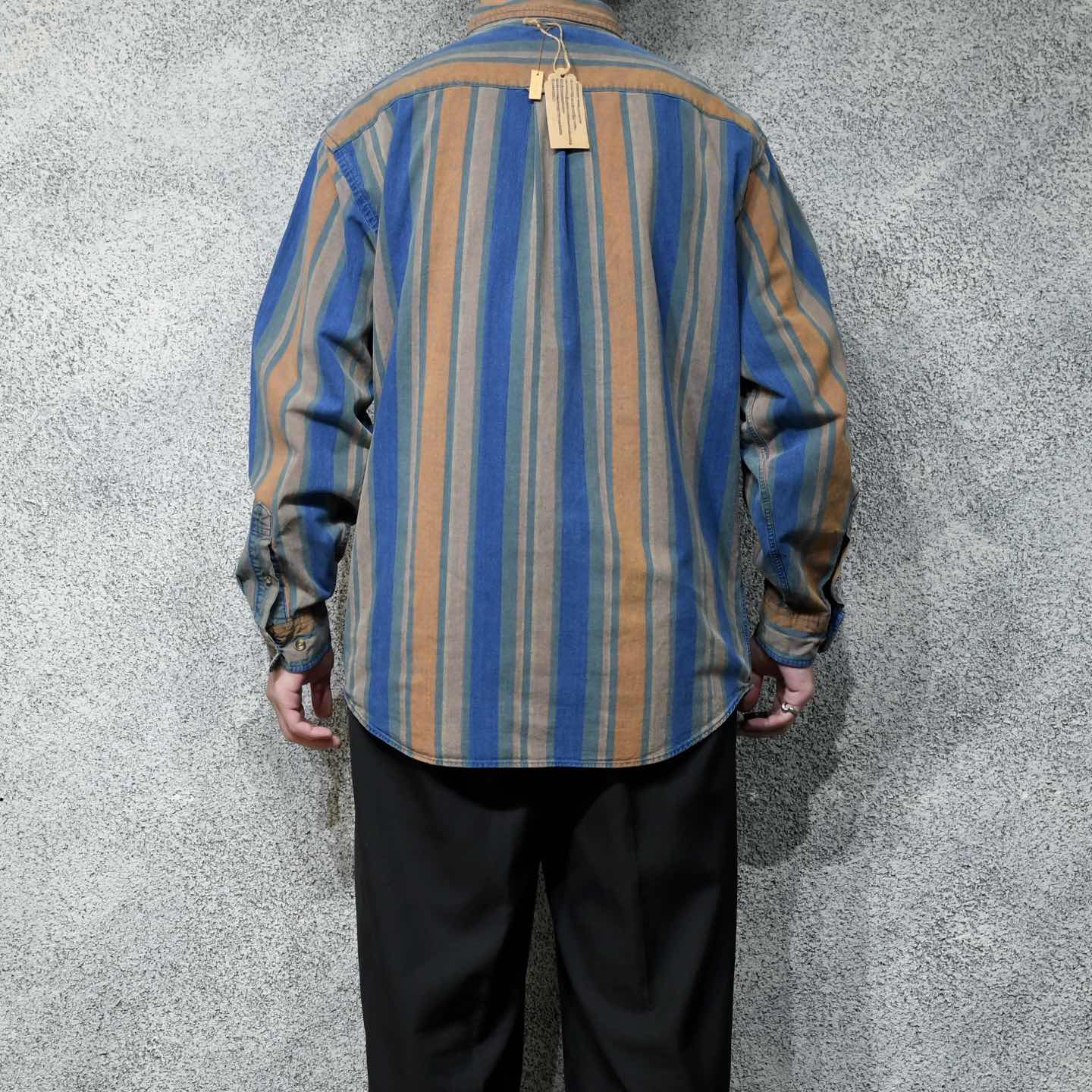 SIZE:M 着丈80cm 肩幅53cm 身幅64cm 袖丈61cm fabric/cotton 着用画像 177cm/64kg フロントはチェック、袖はストライプ。 なんだか少し変わった1着。 一見喧嘩しそうな組み合わせですが、 上手く纏まった印象を与えてくれる秋色シャツ。 こんな秋色の中にもデニムカラーを 取り入れており、デニムとの相性も◎ 袖を捲ったり、Tシャツの上に羽織ったり 上からアウターを着たり。 秋の寒暖差にも対応出来る1着として 手元にどうでしょう。 ※撮影状況により、実物と多少色が異なる場合が ございます。 ※古着を取り扱っているため、気づかない汚れや ほつれ等がある場合がございます。 ※サイズは着用感で選んでおり、 表記サイズではございません。 表記サイズは説明欄の最初に記載しております。 古着 オーバーサイズ old vintage ヴィンテージ used 80's 90's アメリカ古着 ユーロ古着 POLO RALPH LAUREN Eddie Bauer OLD GAP LANDS' END ランズエンド LLBean エルエルビーン オールドギャップ エディーバウアー ラルフローレン ブルックスブラザーズ Brooks Brothers シャツ BAシャツ ストライプシャツ などがお好きな方 #vintage #オーバーサイズ #old #used #90s #80s #古着 #ヴィンテージ #アメリカ古着 #ユーロ古着 #LLBean #エルエルビーン #EddieBauer #エディーバウアー #oldgap #オールドギャップ #LANDSEND #ランズエンド #NAUTICA #ノーティカ #ラルフローレン #POLORALPHLAUREN #ブルックスブラザーズ #BrooksBrothers #Lee #チェックシャツ #ボタンダウンシャツ #BDシャツ #長袖シャツ #シャツ