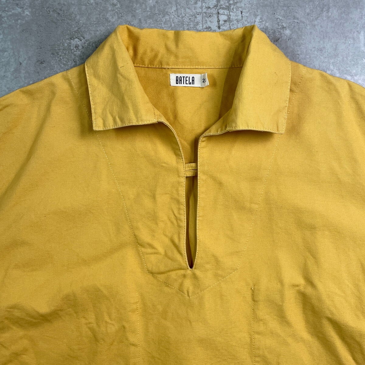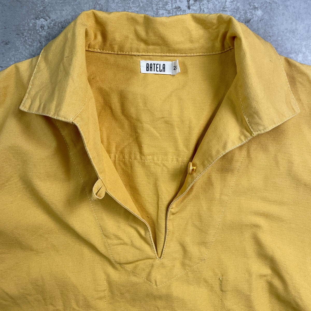 ■BATELA ユーロ フィッシャーマンスモック ユーロワークジャケット メンズXL相当 古着 キャンバス地 黄色【ワークジャケット】/イエロー 【ブランド】BATELA 【サイズ】表記 2XL(実寸メンズXL相当) ※計測値をご確認ください。 着丈…77.5 身幅…65 肩幅…56.5 袖丈…58 【生産国】不明 【素材】コットン100% 【状態】全体的に使用感による色褪せがございます。 バックサイド袖に色落ちした部分があります。 画像にてご確認ください。 【c250926112】 ※古着は洗濯、検品などのケアを行っております。(新品・デッドストックは洗濯していません。) ※モニターの発色により実物と異なる場合がございます。予めご了承ください。 ※ 海外直輸入USED品になります。