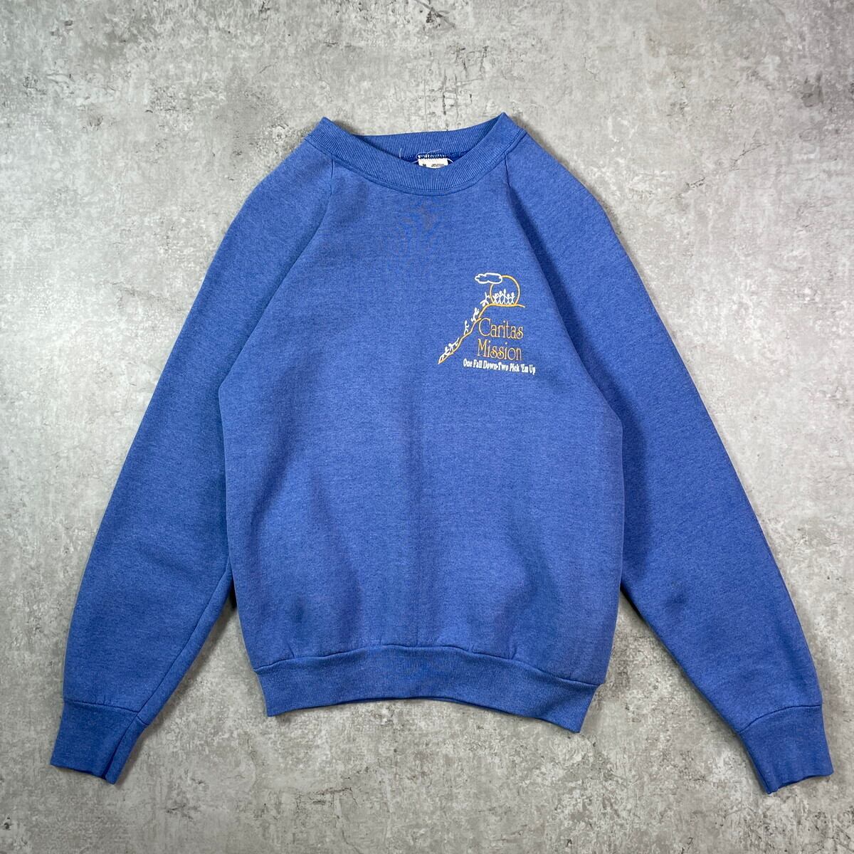 ■80年代 USA製 Caritas Mission ワンポイント企業ロゴプリント スウェットシャツ メンズS相当 レディースM相当 古着 80s ヴィンテージ VINTAGE ラグランスリーブ 裏起毛 群青色【スウェット】/ブルー 【ブランド】FRUIT OF THE LOOM 【サイズ】表記 M(実寸メンズS相当) ※計測値をご確認ください。 着丈…57 身幅…48 裄丈…70.5 袖丈(脇下計測)…48 【生産国】USA製 【素材】ポリエステル50% コットン50% 【状態】全体的に使用感がございます。 フロント左袖に一部汚れがあります。 ご確認ください。 【c250924106】 ※古着は洗濯、検品などのケアを行っております。(新品・デッドストックは洗濯していません。) ※モニターの発色により実物と異なる場合がございます。予めご了承ください。 ※ 海外直輸入USED品になります。