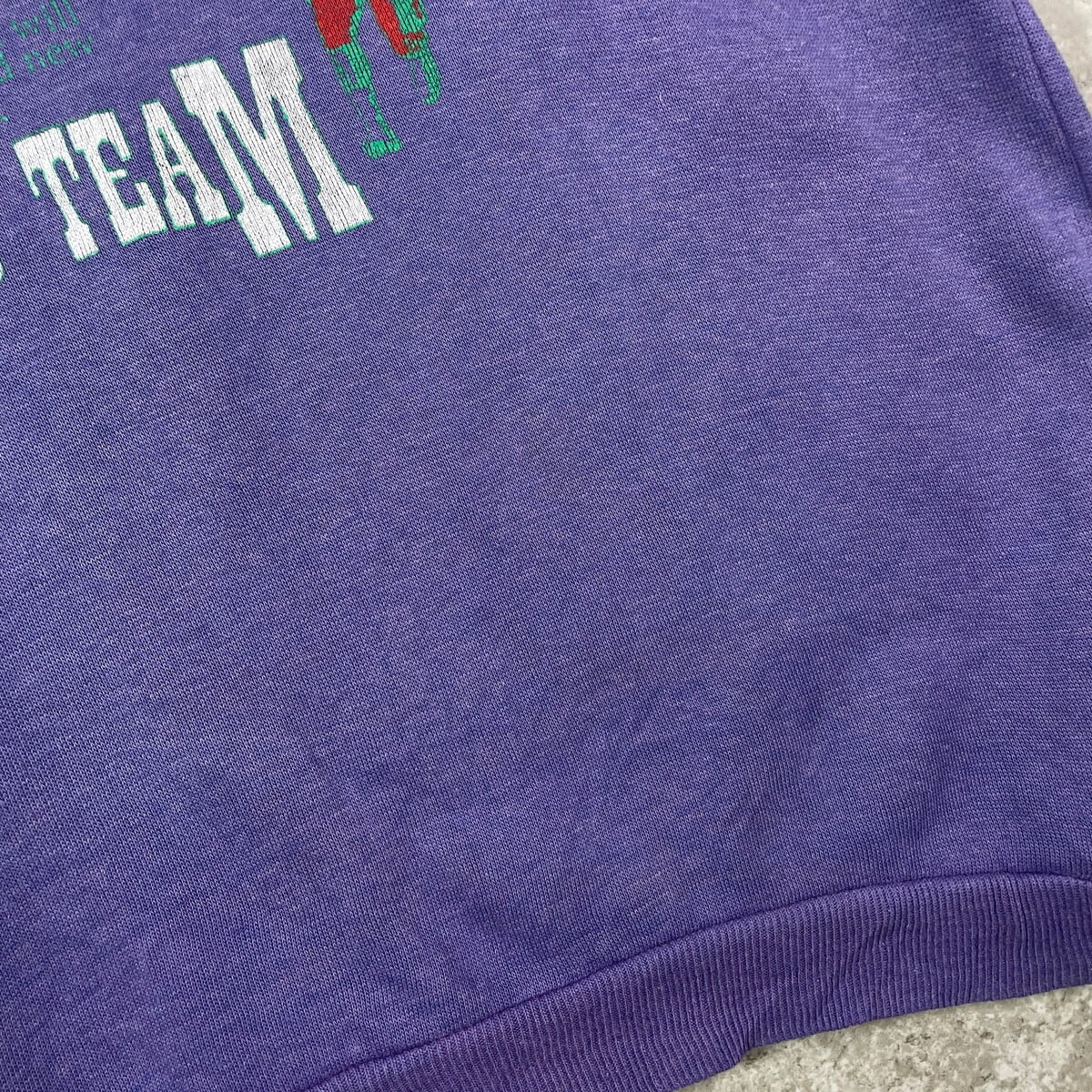 ■BULL'S TEAM アメフト アートプリント スウェットシャツ メンズM~L相当 古着 メッセージ 裏起毛 フェードパープル 【スウェット】/パープル 【ブランド】不明 【サイズ】表記不明(実寸メンズM~L相当) ※計測値をご確認ください。 着丈…60 身幅…57 肩幅…58 袖丈…54 【生産国】不明 【素材】不明(おそらくコットンかと思われます) 【状態】タグの印字が消えております。 全体的にフェード、毛羽立ちがあります。 裾が一部縮んでいます。 画像にてご確認ください。 【c250924105】 ※古着は洗濯、検品などのケアを行っております。(新品・デッドストックは洗濯していません。) ※モニターの発色により実物と異なる場合がございます。予めご了承ください。 ※ 海外直輸入USED品になります。