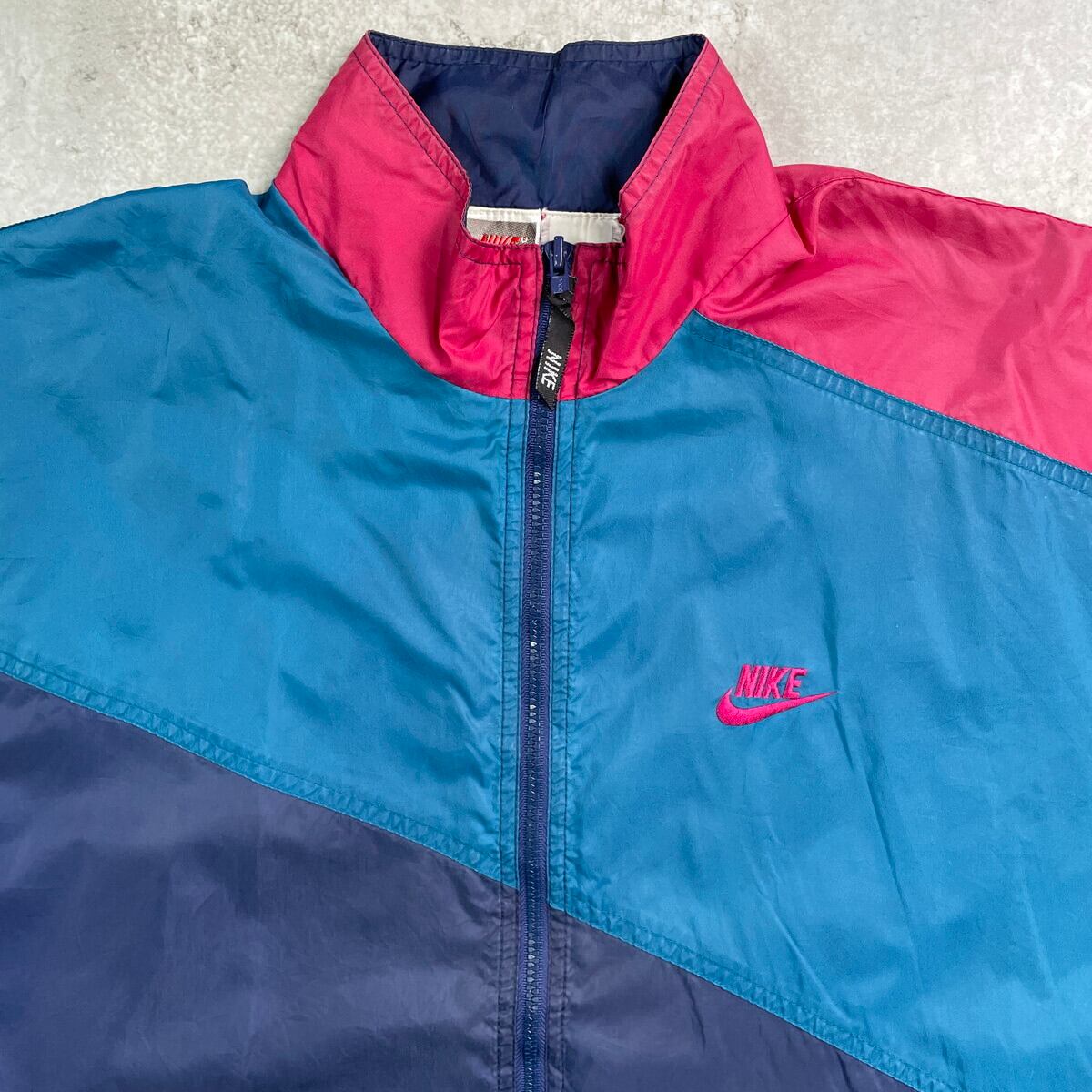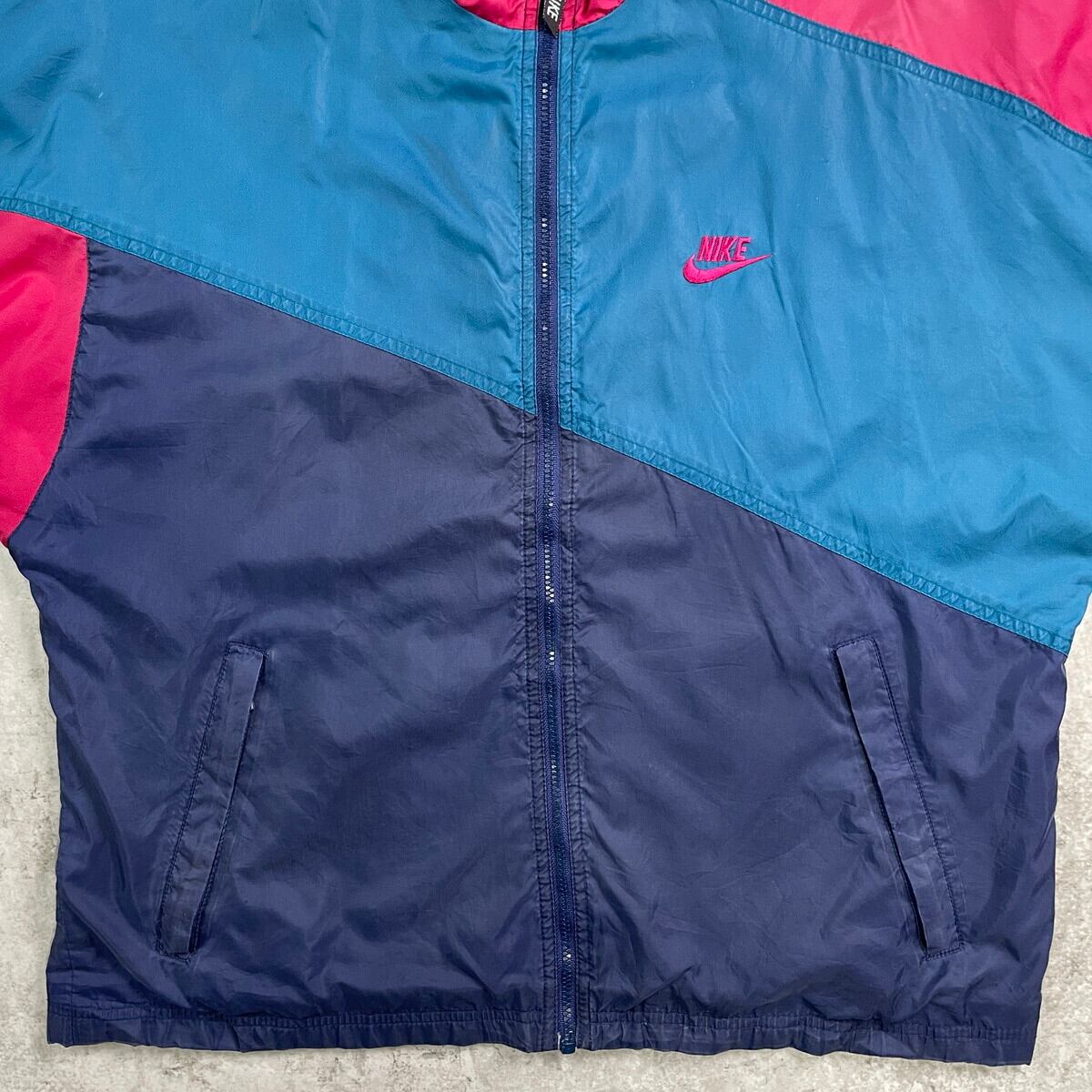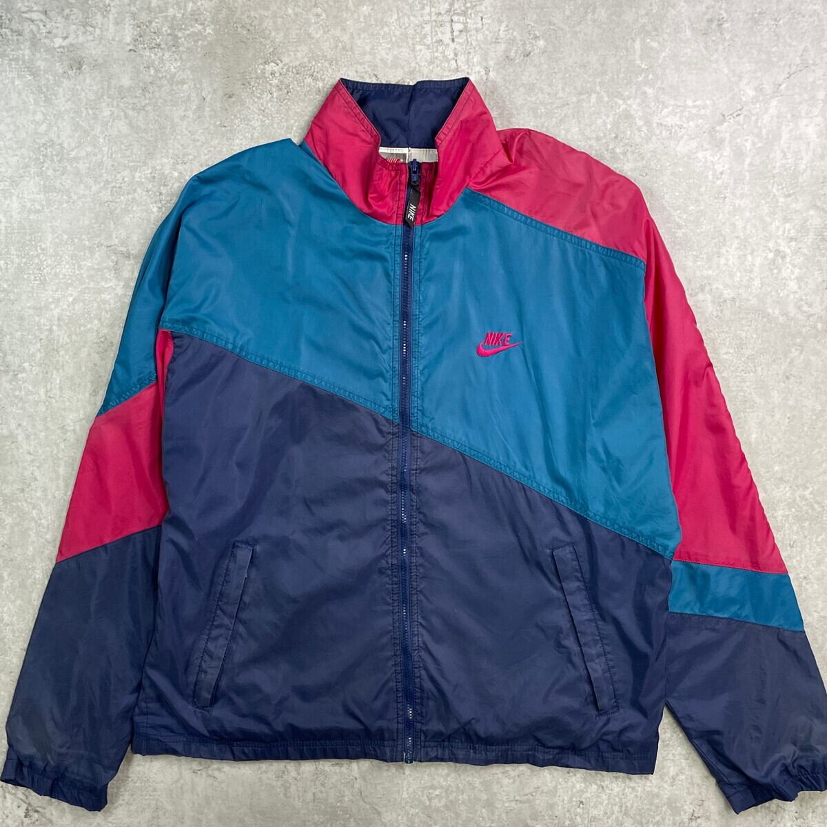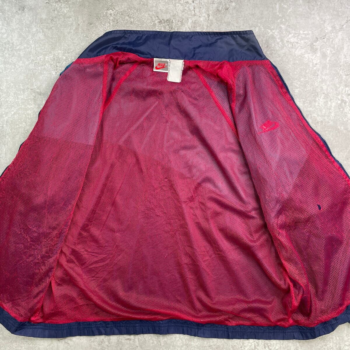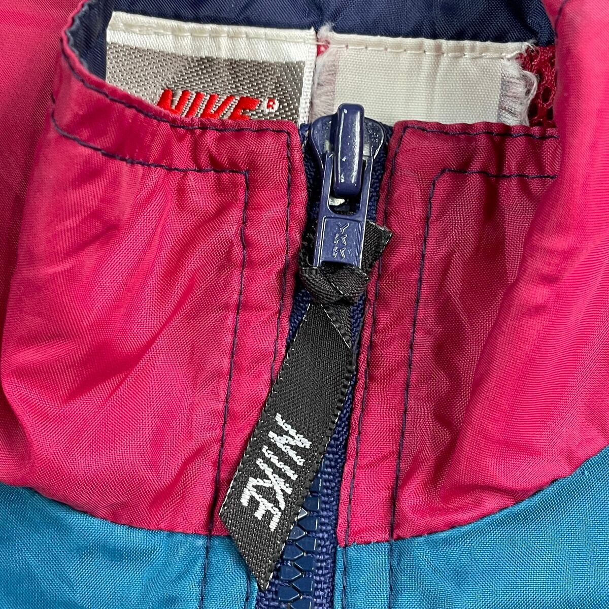 ■90年代 NIKE ナイキ ナイロンジャケット 銀タグ メンズL相当 古着 90s VINTAGE ヴィンテージ ラグランスリーブ メッシュライナー ネイビー ピーコックブルー カーマイン【ナイロンジャケット】/マルチカラー 【ブランド】NIKE ナイキ 【サイズ】表記不明(実寸メンズL相当) ※計測値をご確認ください。 着丈…64.5 身幅…62.5 裄丈…81.5 袖丈(脇下計測)…52 【生産国】不明 【素材】不明(おそらくナイロンかと思われます) 【状態】袖に汚れ、ダメージがあります。 また裏地のメッシュライナーにも一部破損がございます。 画像にてご確認ください。 【c250922103】 ※古着は洗濯、検品などのケアを行っております。(新品・デッドストックは洗濯していません。) ※モニターの発色により実物と異なる場合がございます。予めご了承ください。 ※ 海外直輸入USED品になります。