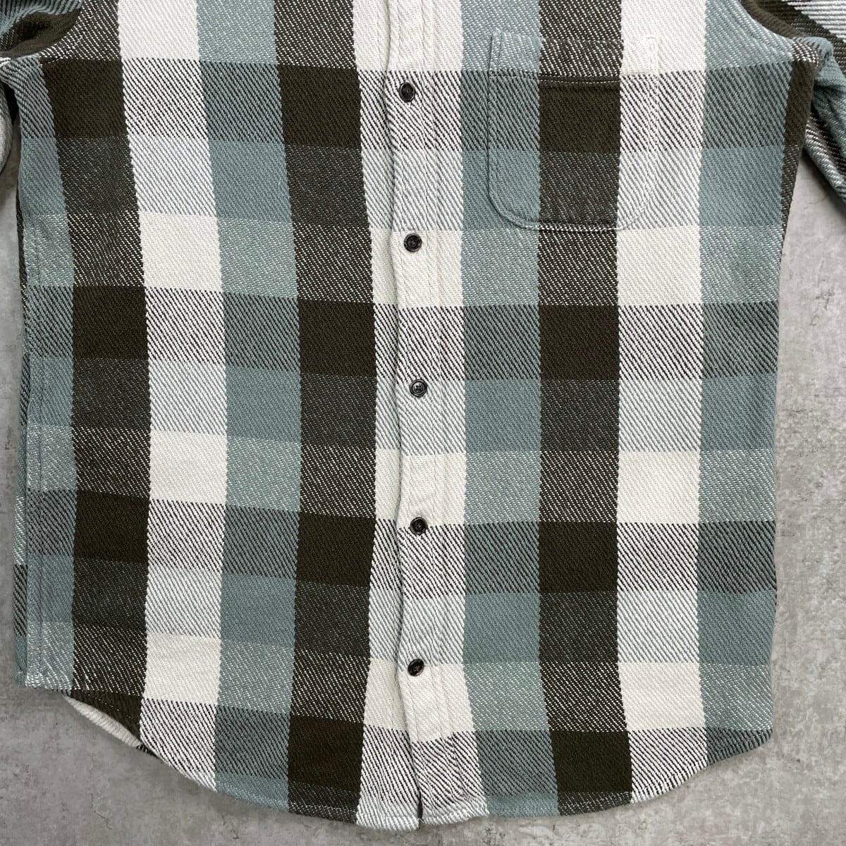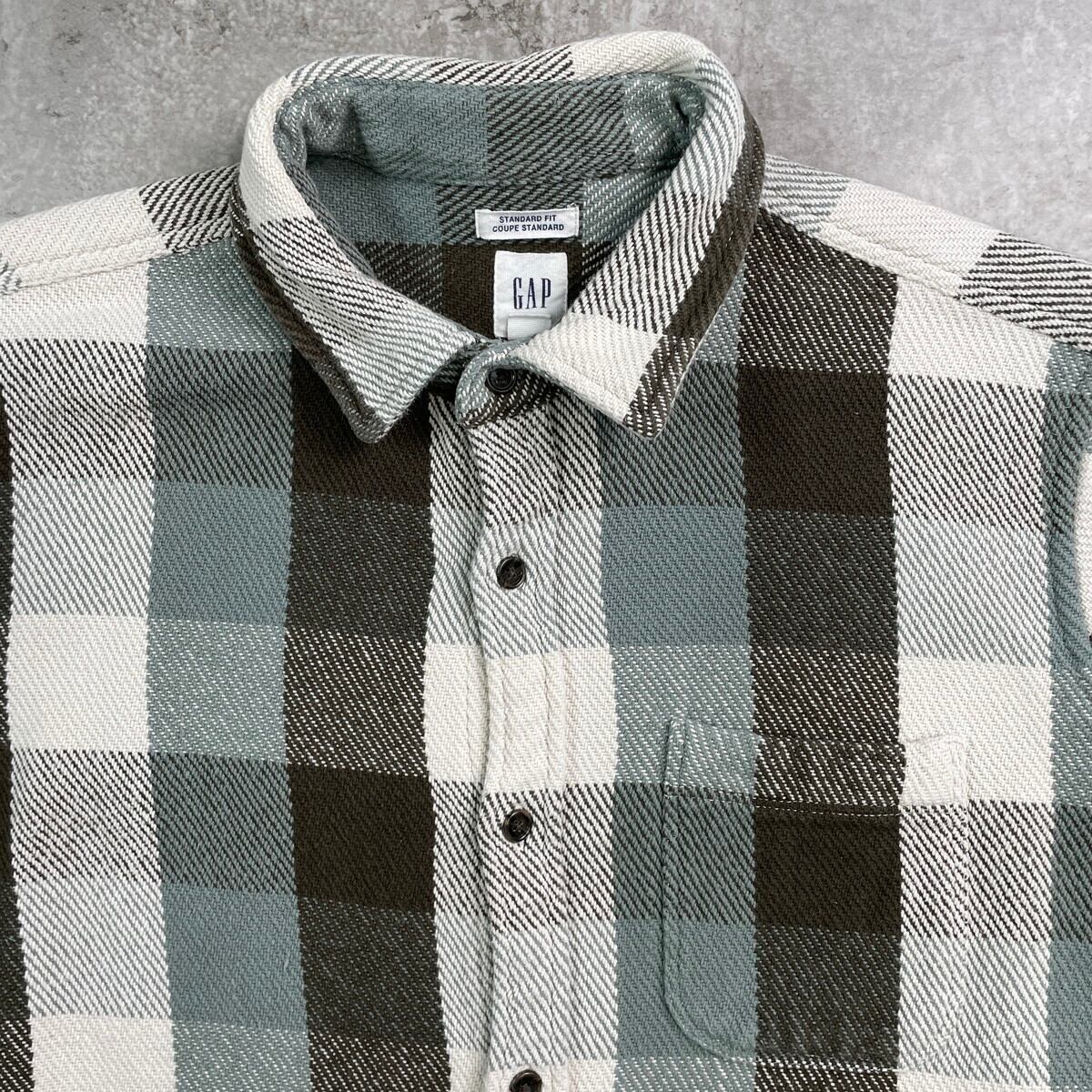 ■GAP ギャップ ブロックチェック ヘビーネルシャツ メンズM 古着 アメカジ 胸ポケ付き ホワイト×オリーブグリーン×ミントグリーン【長袖シャツ】/マルチカラー 【ブランド】GAP ギャップ 【サイズ】表記 M ※計測値をご確認ください。 着丈…75 身幅…57 肩幅…47 袖丈…66.5 【生産国】インドネシア製 【素材】コットン100% 【状態】多少の使用感は御座いますが、目立ったダメージや汚れは御座いません。 画像にてご確認ください。 【c250919107】 ※古着は洗濯、検品などのケアを行っております。(新品・デッドストックは洗濯していません。) ※モニターの発色により実物と異なる場合がございます。予めご了承ください。 ※ 海外直輸入USED品になります。