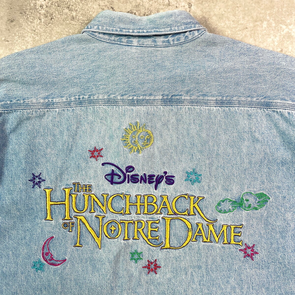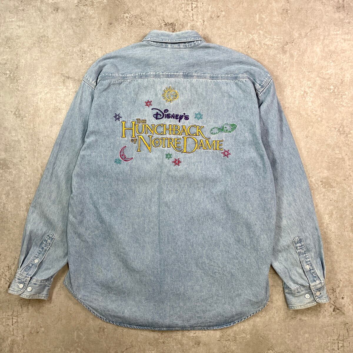■90年代 THE HUNCHBACK OF NORTREDAME ロゴ刺繍 デニムシャツ メンズXL相当 古着 90s VINTAGE ヴィンテージ ノートルダムの鐘 DISNEY ディズニー 青【長袖シャツ】/ブルー 【ブランド】THE DISNEY STORE 【サイズ】 表記 LARGE(実寸メンズXL相当) ※計測値をご確認ください。 着丈…77 身幅…63 肩幅…54.5 袖丈…60.5 【生産国】香港製 【素材】コットン100% 【状態】全体的に使用感による色褪せや擦れがございます。 フロントに数か所汚れがあります。 画像にてご確認ください。 【c250917101】 ※古着は洗濯、検品などのケアを行っております。(新品・デッドストックは洗濯していません。) ※モニターの発色により実物と異なる場合がございます。予めご了承ください。 ※ 海外直輸入USED品になります。