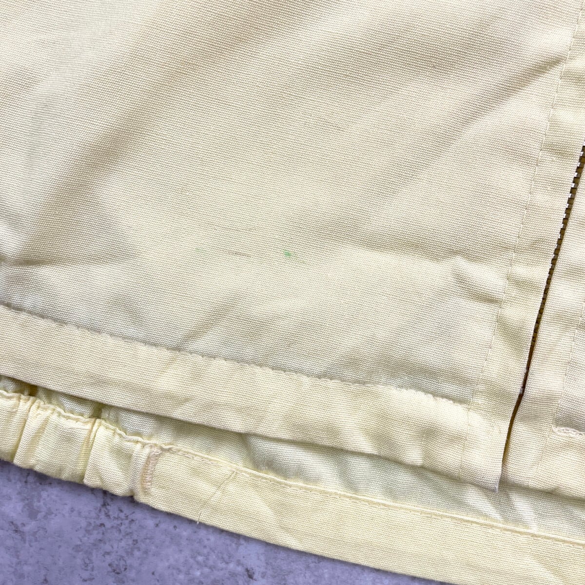 ■80年代 USA製 SPORTSMASTER スイングトップ メンズM~L相当 古着 80s VINTAGE ヴィンテージ ハリントンジャケット ラグランスリーブ 黄色 レモンイエロー【コットンジャケット】/イエロー 【ブランド】 SPORTSMASTER 【サイズ】表記 M(着用感メンズM~L相当) ※計測値をご確認ください。 着丈…61.5 身幅…57.5 裄丈…75 袖丈(脇下計測)…50.5 【生産国】USA製 【素材】不明(おそらくコットンかと思われます) 【状態】数か所に汚れがございます。 画像にてご確認ください。 【c250915110】 ※古着は洗濯、検品などのケアを行っております。(新品・デッドストックは洗濯していません。) ※モニターの発色により実物と異なる場合がございます。予めご了承ください。 ※ 海外直輸入USED品になります。