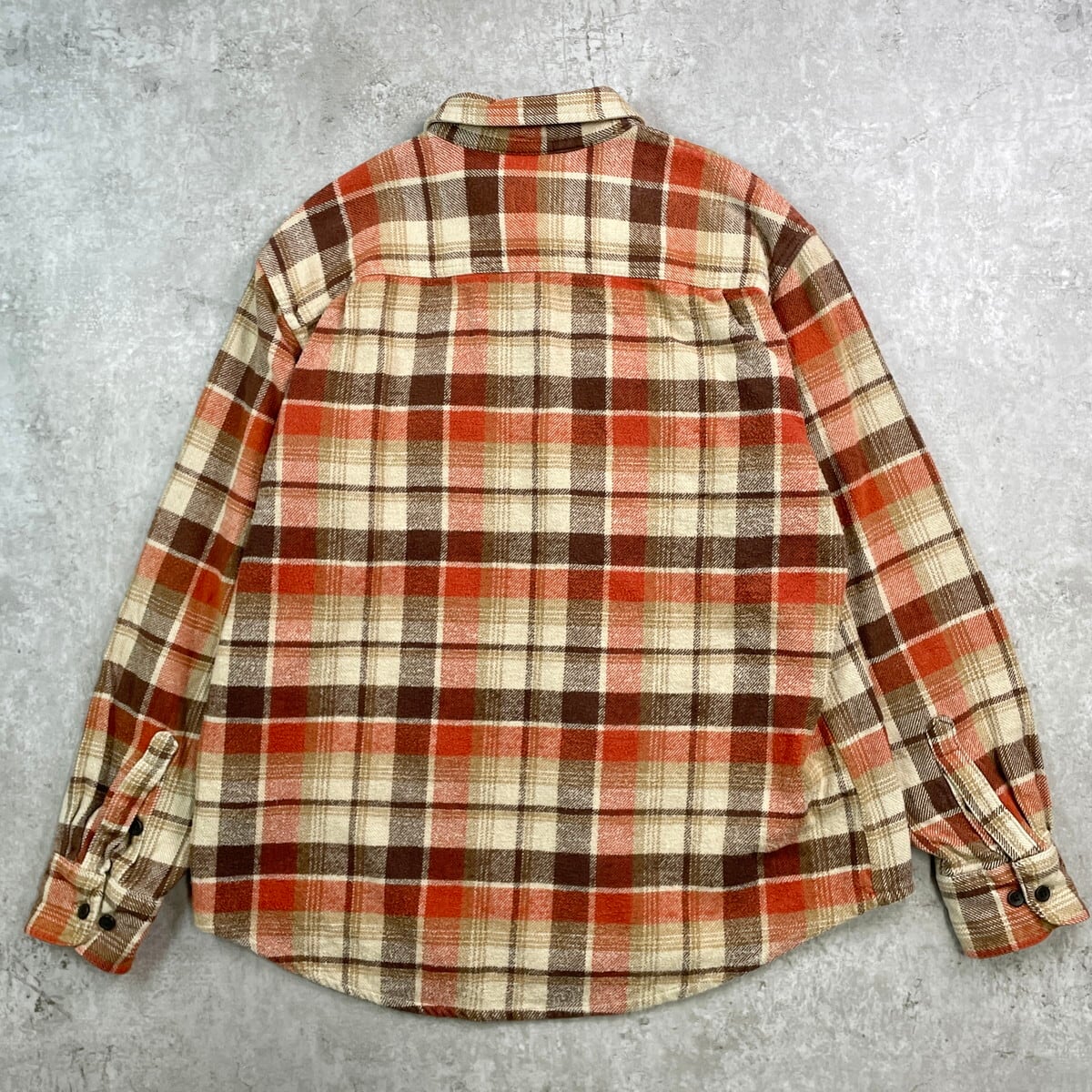 ■90年代 TIMBERLAND ティバーランド ヘビーネルシャツ マドラスチェックシャツ メンズL 古着 90s VINTAGE ヴィンテージ アウトドア ダブルポケット オレンジ ベージュ ブラウン【長袖シャツ】/マルチカラー 【ブランド】TIMBERLAND ティバーランド 【サイズ】表記 L ※計測値をご確認ください。 着丈…73 身幅…59.5 肩幅…50 袖丈…59.5 【生産国】バングラデッシュ製 【素材】コットン100% 【状態】使用感はありますが、目立った汚れやダメージはございません。 画像にてご確認ください。 【c250912104】 ※古着は洗濯、検品などのケアを行っております。(新品・デッドストックは洗濯していません。) ※モニターの発色により実物と異なる場合がございます。予めご了承ください。 ※ 海外直輸入USED品になります。