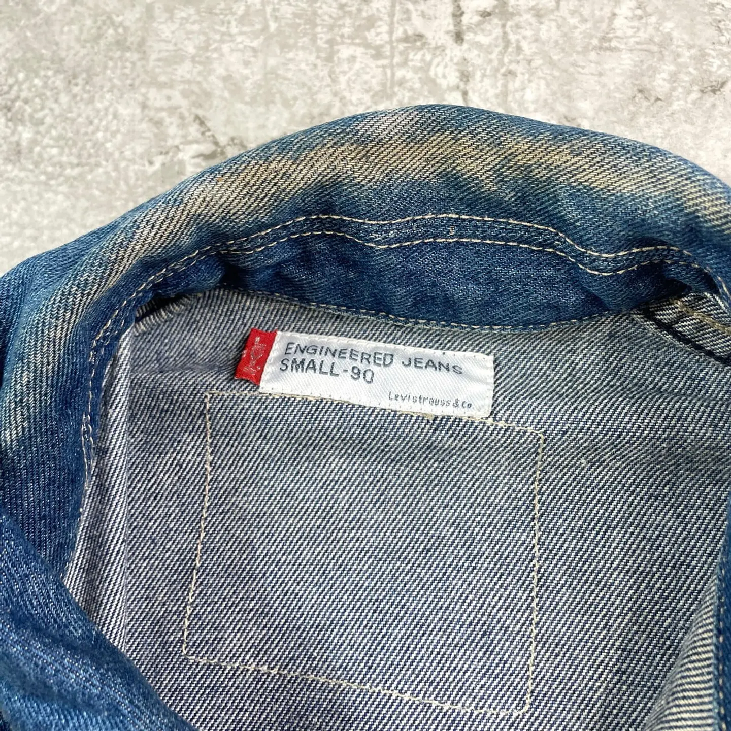 ■00年代 Levi's ENGINEERED JEANS ユーロリーバイス デニムジャケット エンジニアードジーンズ 立体裁断 メンズS 古着 00s Y2K VINTAGE ヴィンテージ トラッカージャケット【デニムジャケット】/ブルー 【ブランド】Levi's リーバイス 【サイズ】表記 SMALL ※計測値をご確認ください。 着丈…59 身幅…44 肩幅…41 袖丈…60 【生産国】不明 【素材】不明 おそらくコットンかと思われます。 【状態】襟俺部分や袖に汚れ、バック裾付近のスナップに錆がございます。 画像にてご確認ください。 【c250911018】 ※古着は洗濯、検品などのケアを行っております。(新品・デッドストックは洗濯していません。) ※モニターの発色により実物と異なる場合がございます。予めご了承ください。 ※ 海外直輸入USED品になります。