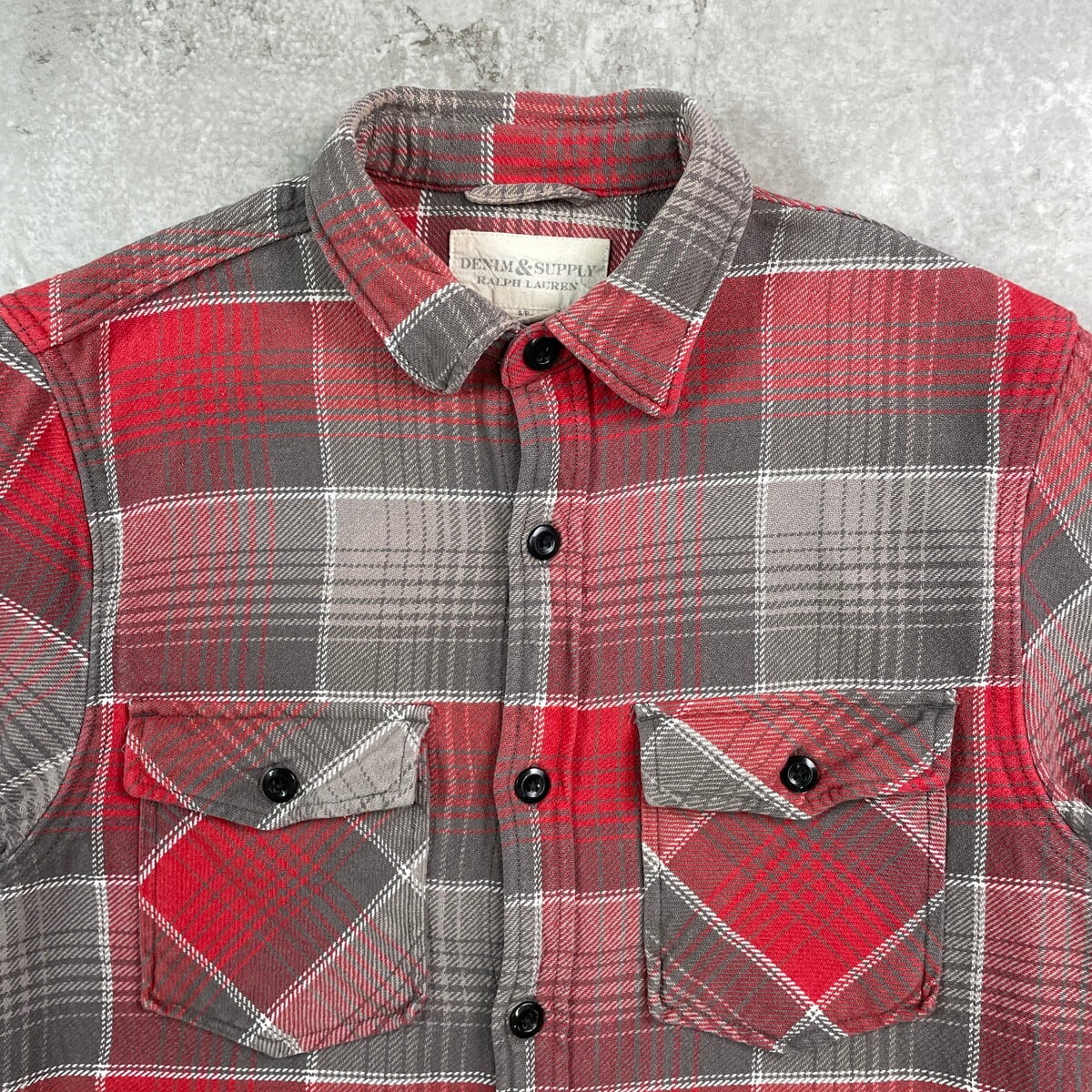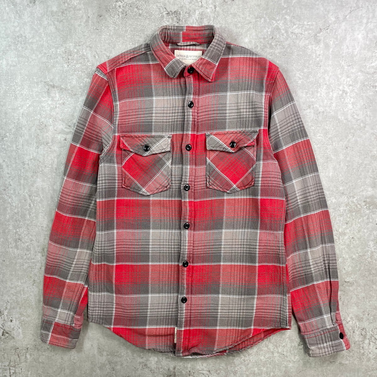 ■DENIM & SUPPLY Ralph Lauren ラルフローレン チェック フランネルシャツ メンズS 古着 アメカジ ダブルポケット 赤色 グレー ホワイト【長袖シャツ】/レッド ◎厚手のコットン生地です。 【ブランド】DENIM & SUPPLY Ralph Lauren 【サイズ】表記 S ※計測値をご確認ください 着丈…73 身幅…52 肩幅…40.5 袖丈…63.5 【生産国】インド製 【素材】コットン100% 【状態】全体的に使用感がありますが、 目立った汚れやダメージはございません。 画像にてご確認ください。 【c250909118】 ※古着は洗濯、検品などのケアを行っております。(新品・デッドストックは洗濯していません。) ※モニターの発色により実物と異なる場合がございます。予めご了承ください。 ※ 海外直輸入USED品になります。