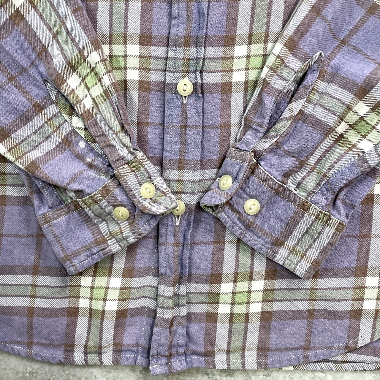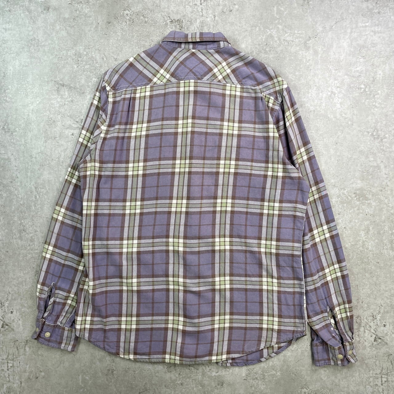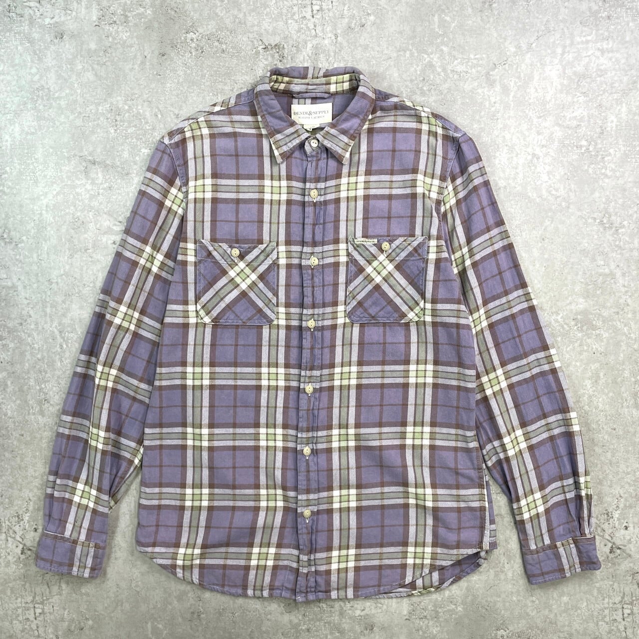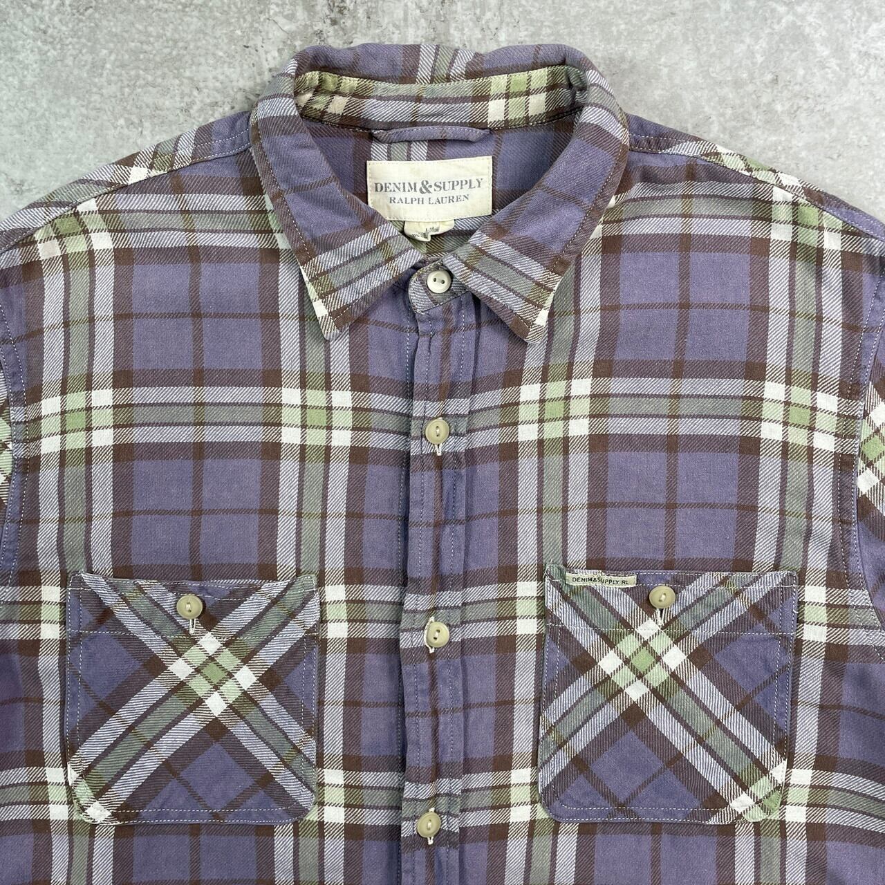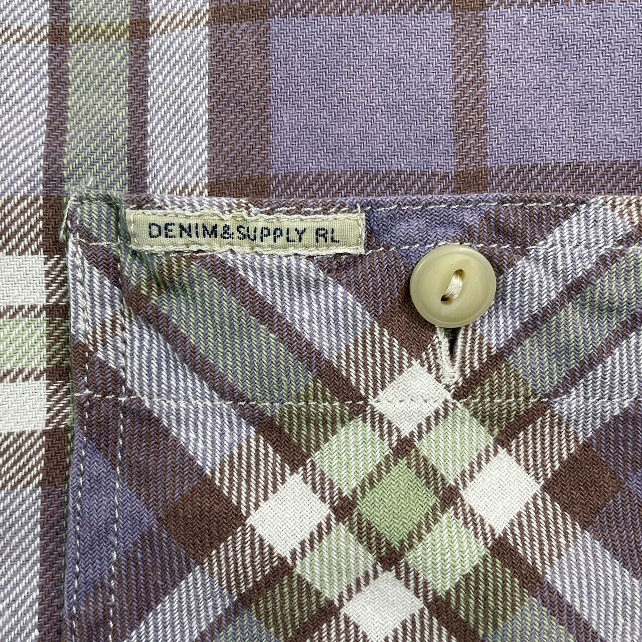 ■DENIM & SUPPLY Ralph Lauren ラルフローレン チェック フランネルシャツ メンズL 古着 アメカジ ダブルポケット 猫目ボタン【長袖シャツ】/パープル 【ブランド】DENIM & SUPPLY Ralph Lauren 【サイズ】表記 L/G ※計測値をご確認ください 着丈…78 身幅…59 肩幅…47 袖丈…68 【生産国】インド製 【素材】コットン100% 【状態】右袖口付近に汚れがございます。 画像にてご確認ください。 【c250909011】 ※古着は洗濯、検品などのケアを行っております。(新品・デッドストックは洗濯していません。) ※モニターの発色により実物と異なる場合がございます。予めご了承ください。 ※ 海外直輸入USED品になります。