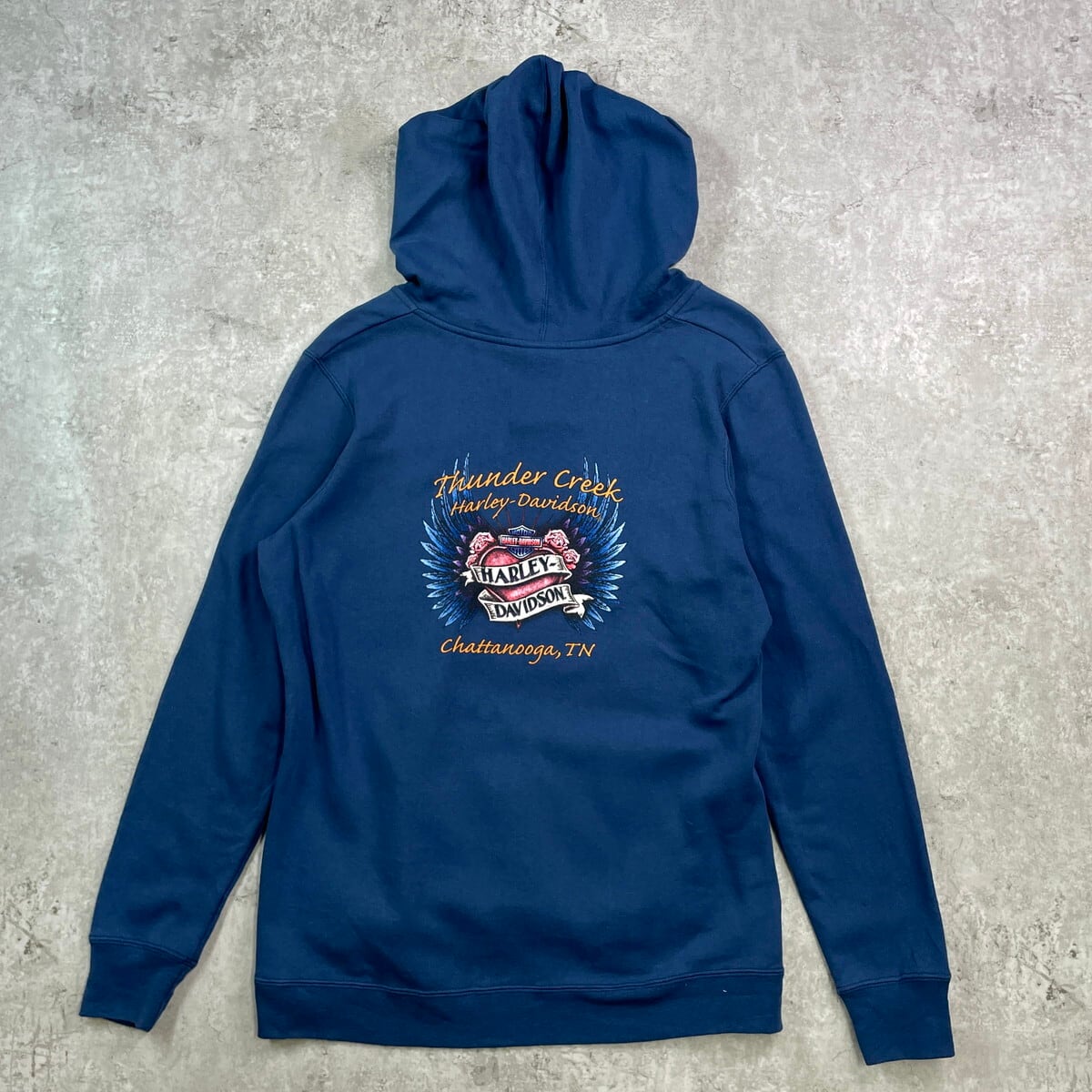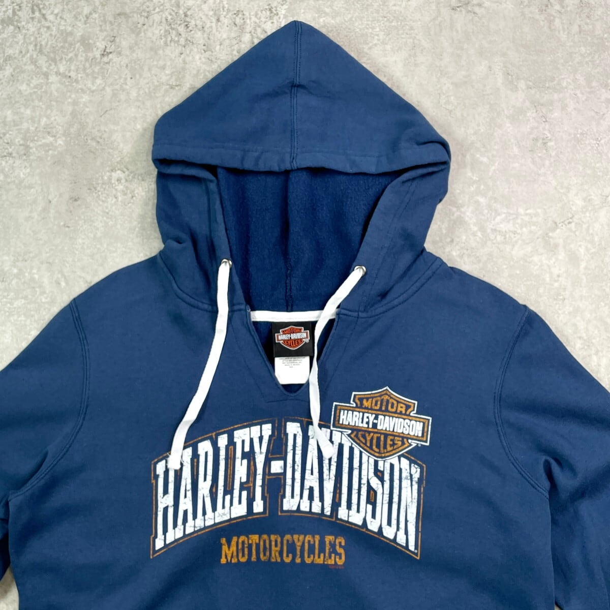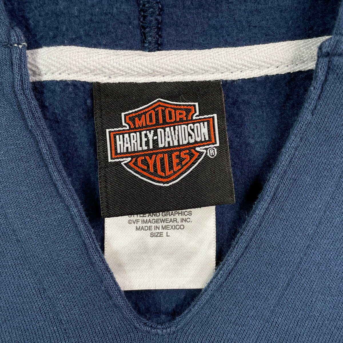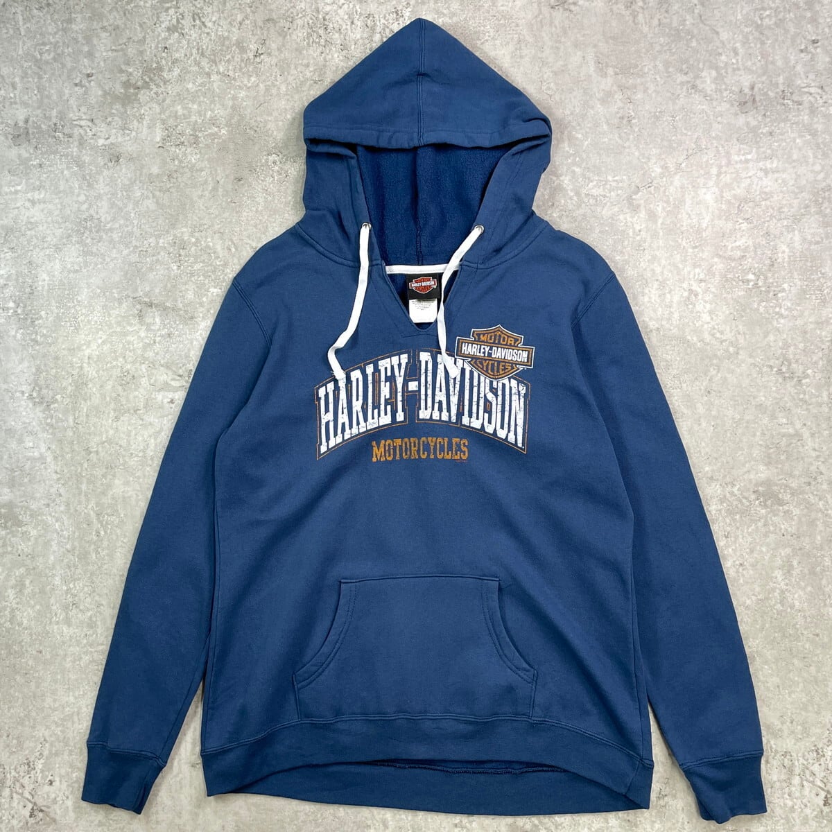 ■Harley-Davidson ハーレーダビッドソン ロゴプリント スウェットパーカー メンズM レディースM相当 古着 バイク モーターサイクル バックプリント 裏起毛 紺色【パーカー】/ネイビー ◎薄手のスウェット素材です。 【ブランド】Harley-Davidson ハーレーダビッドソン 【サイズ】表記 L ※計測値をご確認ください。 着丈…64.5 身幅…55 肩幅…49 袖丈…63 【生産国】メキシコ製 【素材】コットン50% ポリエステル50% 【状態】多少の使用感ございますが目立った汚れやダメージなくまだまだ長く愛用していただけます。 画像にてご確認ください。 【c250908106】 ※古着は洗濯、検品などのケアを行っております。(新品・デッドストックは洗濯していません。) ※モニターの発色により実物と異なる場合がございます。予めご了承ください。 ※ 海外直輸入USED品になります。