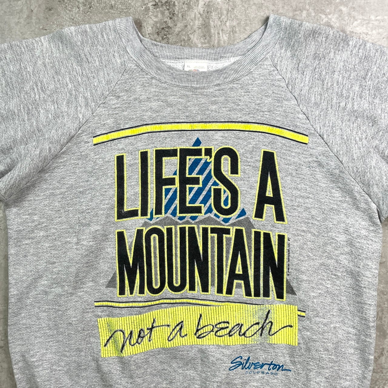 ■80年代 USA製 LIFE'S A MOUNTAIN メッセージプリント スウェットシャツ メンズL相当 古着 1987 80s ヴィンテージ VINTAGE スーベニア トレーナー 霜降りグレー 杢グレー【スウェット】/グレー 【ブランド】FRUIT OF THE LOOM フルーツオブザルーム 【サイズ】表記 XL(着用感メンズL相当) ※計測値をご確認ください。 着丈...65 身幅…57 肩幅…83 袖丈…59 【生産国】USA製 【素材】コットン50% ポリエステル50% 【状態】バックに薄汚れがございます。 画像にてご確認ください。 【c250906003】 ※古着は洗濯、検品などのケアを行っております。(新品・デッドストックは洗濯していません。) ※モニターの発色により実物と異なる場合がございます。予めご了承ください。 ※ 海外直輸入USED品になります。