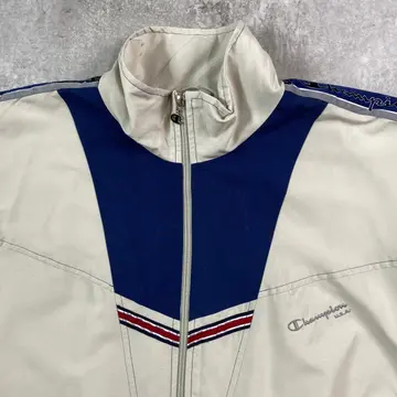■90年代 Champion U.S.A. チャンピオン ブルゾン トラックジャケット フルジップ メンズXL相当 古着 切替 ヴィンテージ VINTAGE 袖ロゴ刺繍 ベージュ ネイビー レッド【ジャージ・トラックジャケット】/ベージュ 【ブランド】Champion チャンピオン 【サイズ】表記 M(着用感メンズXL相当) ※計測値をご確認ください。 着丈…64.5 身幅…67 裄丈…76 袖丈(脇下計測)…52.5 【生産国】マレーシア製 【素材】ポリエステル100% 裏地 ポリエステル65%、コットン35% 【状態】裏表地に数か所小さな汚れがございます。 画像にてご確認ください。 【c250905102】 ※古着は洗濯、検品などのケアを行っております。(新品・デッドストックは洗濯していません。) ※モニターの発色により実物と異なる場合がございます。予めご了承ください。 ※ 海外直輸入USED品になります。