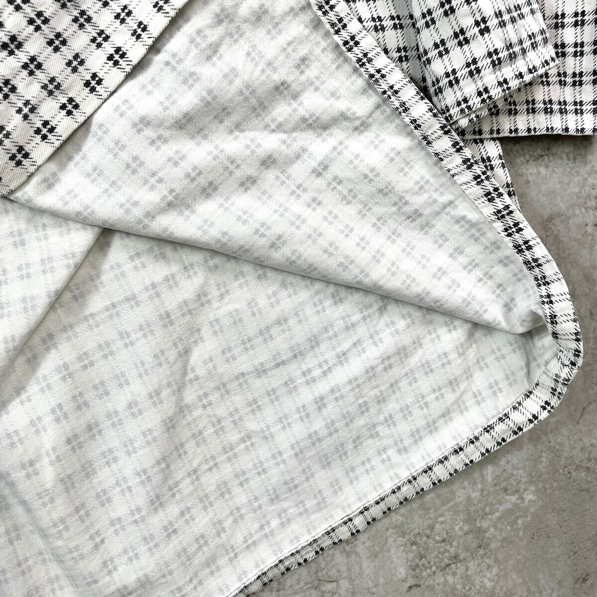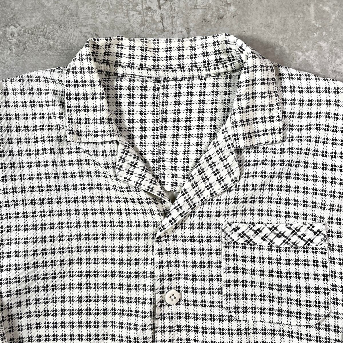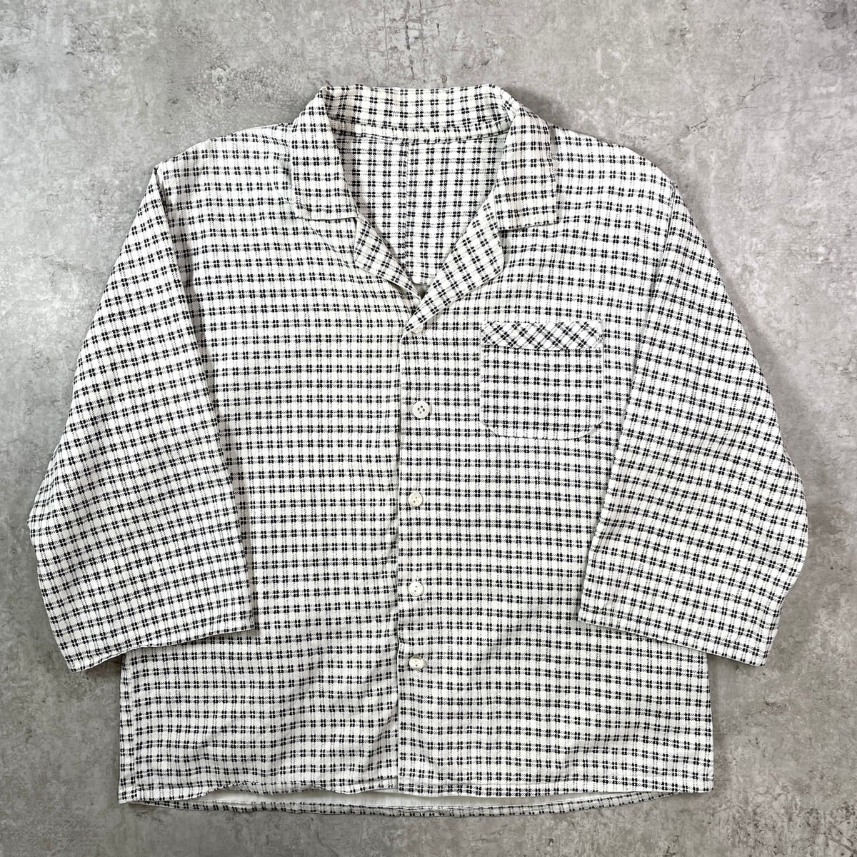 ■UNKNOWN ユーロ 開襟 ボックス パジャマシャツ メンズL相当 古着 ヴィンテージ VINTAGE オープンカラー 胸ポケット付き ホワイト×ブラック【長袖シャツ】/ホワイト ◎袖がオリジナルで短い作りになっております。 【ブランド】不明 【サイズ】不明(実寸メンズL相当) ※計測値をご確認ください。 着丈…72 身幅…62.5 肩幅…48.5 袖丈…46 【生産国】不明 【素材】不明(おそらくコットンかと思われます。) 【状態】一部代替ボタンが使用されております。 襟裏に目立たない程度の汚れがあります。 右袖にほつれによるダメージがございます。 画像にてご確認ください。 【c250901102】 ※古着は洗濯、検品などのケアを行っております。(新品・デッドストックは洗濯していません。) ※モニターの発色により実物と異なる場合がございます。予めご了承ください。 ※ 海外直輸入USED品になります。