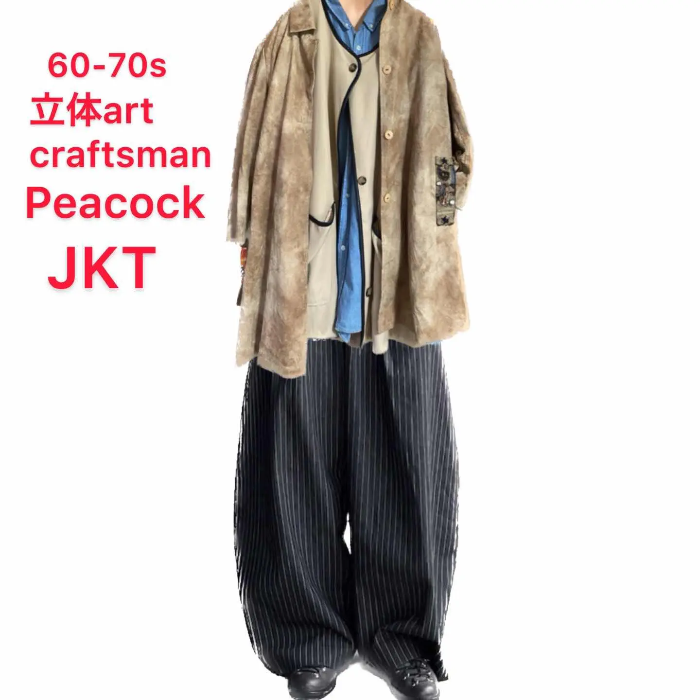 60-70s立体 チンスト職人作成 Peacock JKT 裏打ち 60年代のヴィンテージ職人が関わった世界に1つのジャケットなのは間違いないです。 理由は簡単裏打ちアートと言われる、 別名、焼き討ちアートと思います 0.1秒 勝負の。 裏側から立体にするために記事を焼いて立体を作るやつです 立体アートが、ボディーに現れるんですね。さらにポケット口ピーコックハンドアート、既製品なわけない、だから、 世界に1つです、だが?? そんな理論は正直どうでもいいです。 もうとにかくかっこいい。この独特のカラーリングに仕上がった。ジャケット フォーマルなのに、嫌味のない 状態に仕上がっており コーディネート見ればわかりますよね シルエットが良いから、ここまでかっこよく決まるんです。 ちなみに、年中活躍のタイプです 洗えますし、 無駄に、気温差が激しい現代に確実に向てる、ゆったりボトム とFUDGE系と、柄ボトム!まで、神田に合わせれます 着まわし抜群かどうか、質が良いか、これをクリアしていたら、服は即ゲットです ▷color◁ 写真通り ※ブラウザで異なる場合ありますがかなり実物には、近づけてます、 ▷size◁ 平置き片面採寸【㎝表記】 表記size Lに属します。 着丈/80 身幅/58 肩幅/45 袖丈 /60 DSは袖はハンガー採寸 ※多少の誤差は理解下さい 170センチ Mジャストの私が、着用して前締めできます、し、ゆるだぼ、 【素材】 焼き打ちtexture、画像参照、職人の手作業じゃないとできません、立体アートいいます、 【状態】 不具合なし良い、長持ちします、洗えます、 検品、洗濯、検品で、3回チェックして発送しますので、ご安心して、お買い求め下さい!!