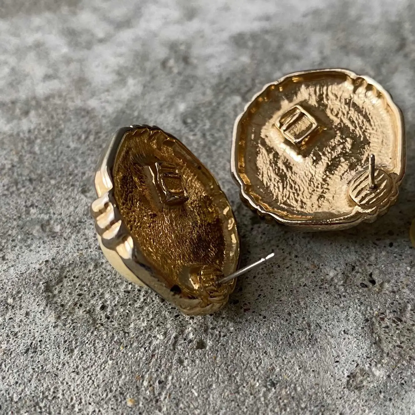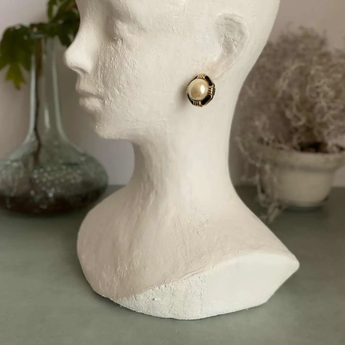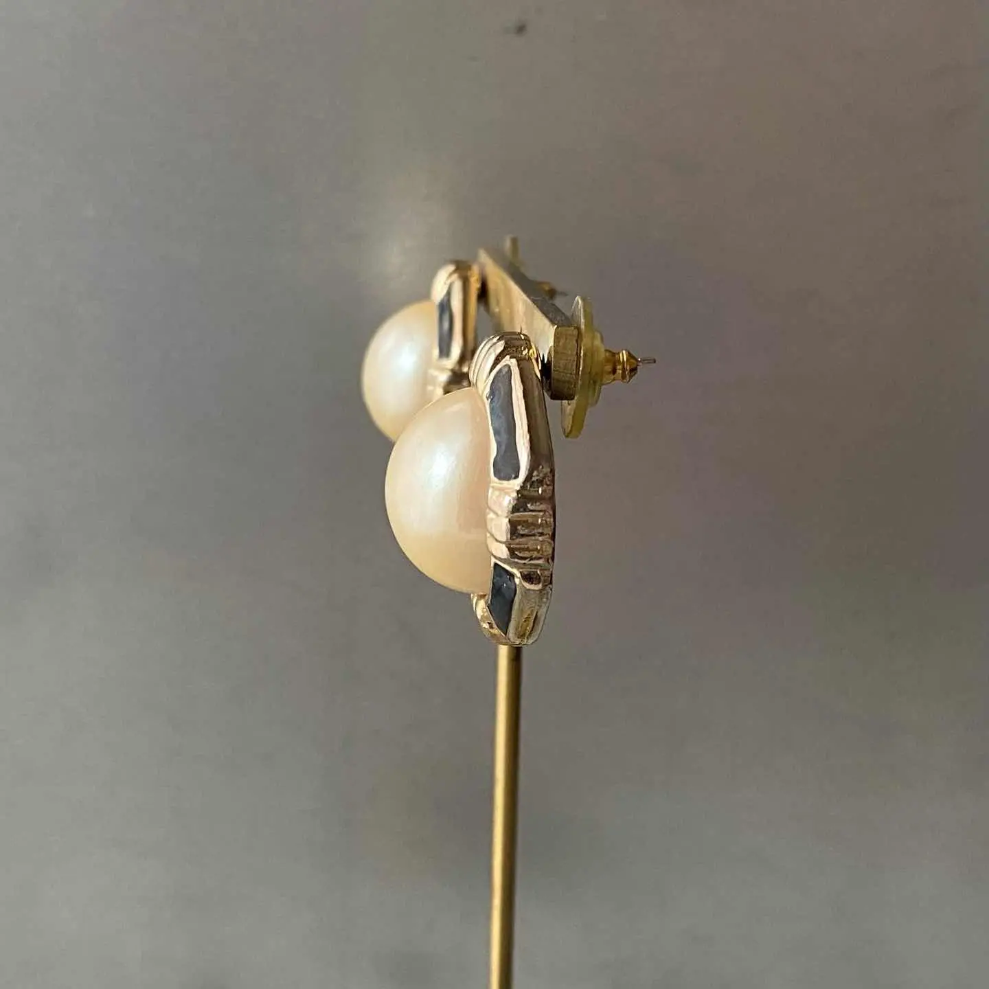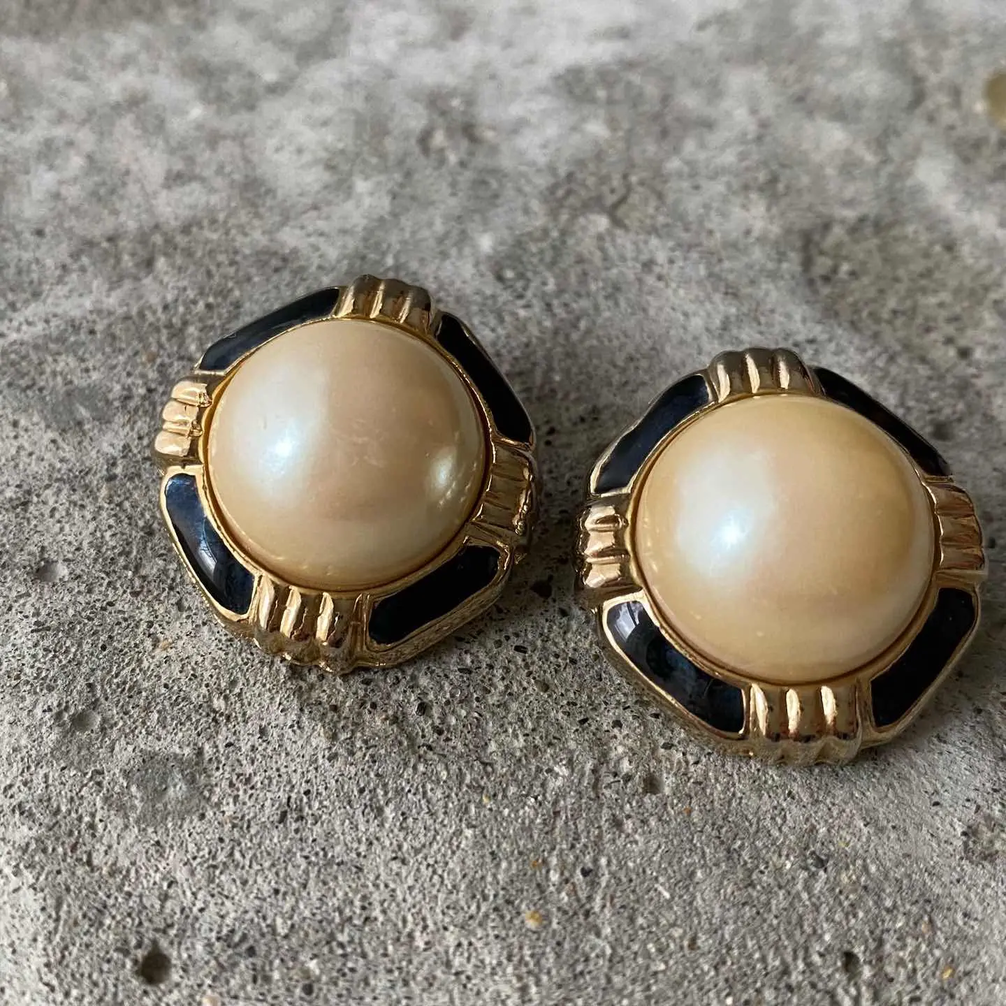 大きなパールと上品なエナメルが美しいUSAヴィンテージピアス。重厚感のあるしっかりとした作りでクラシカルな雰囲気。存在感がありレトロスタイルのワンポイントにおすすめです。 □Materials メタル(ゴールドメッキ)、エナメル、イミテーションパール □Size 約H2.7×W2.5㎝ 24g □Condition【C】 画像の通りパール表面に細かなスレ傷やメタル部分に変色がみられます。古びた雰囲気がお好きな方におすすめです。中古品であることをご理解のうえお買い求めください。ご購入前に必ずショッピングガイドのご確認をお願いいたします。 【S】未使用 【A】未使用に近い 【B】やや使用感あり 【C】使用感あり Item No.3357