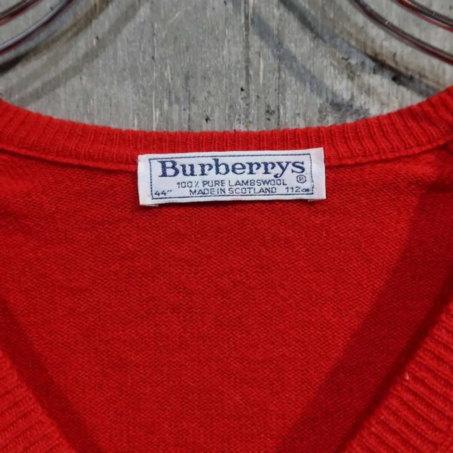 【サイズ】 着丈 : 72 身幅 : 59 裄丈:98 #burberry #90s #ニット #vネック 【素材】 ウール 【コンディション】 背面に小さな傷がございます。