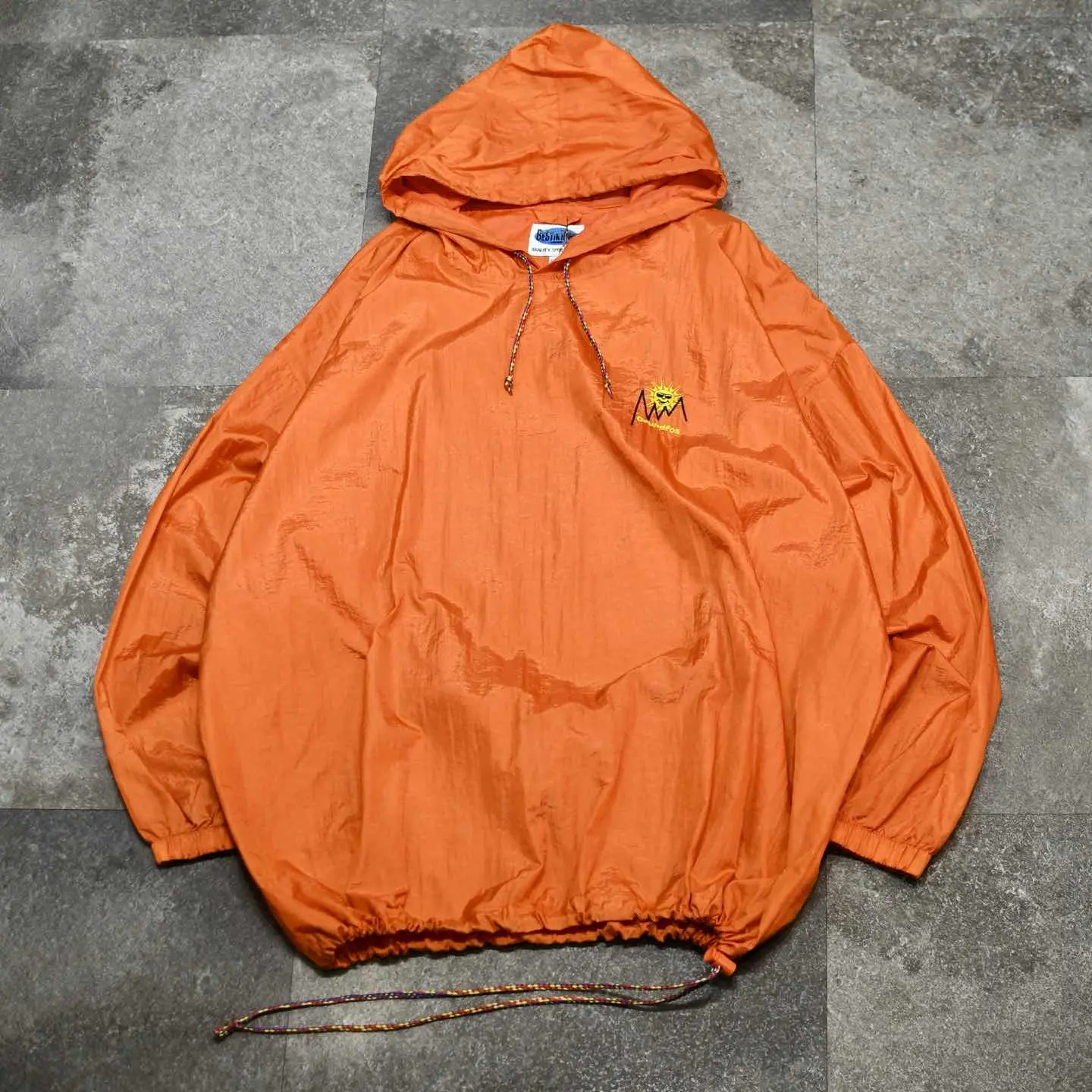SIZE:L/XL 着丈81cm 肩幅73cm 身幅79cm 袖丈60cm fabric/nylon 着用画像 177cm/64kg どこかキャッチーで惹かれる胸元の太陽は、 デンマークのポンプメーカーのロゴのようです。 恐らくノベルティやプロモーション用として、 製作されたアイテムではないでしょうか。 ビビットなオレンジにこのサイズ感、 ドローコードを絞って贅沢に腰元に溜めても、 コートのインナーとして仕込むなら、 絞らずそのままレイヤードとして使っても◎ 重ね着の季節、重たくなりがちなコーデの色味を 明るくしてくれる差し色としても活躍する 逸品です。 ドローコードのカラフルなカラーリングにまで 惹かれた、推しアノラック。 ※撮影状況により、実物と多少色が異なる場合が ございます。 ※古着を取り扱っているため、気づかない汚れや ほつれ等がある場合がございます。 ※サイズは着用感で選んでおり、 表記サイズは説明欄の最初に記載しております。 old vintage ヴィンテージ used 80's 90's POLO RALPH LAUREN Eddie Bauer OLD GAP LANDS' END ランズエンド LLBean エルエルビーン オールドギャップ エディーバウアー ラルフローレン ブルックスブラザーズ Brooks Brothers オレンジ プルオーバー ナイロンジャケット などがお好きな方 #vintage #オーバーサイズ #old #used #90s #80s #古着 #ヴィンテージ #LLBean #エルエルビーン #EddieBauer #エディーバウアー #oldgap #LANDSEND #NAUTICA #ラルフローレン #POLORALPHLAUREN #ブルックスブラザーズ #BrooksBrothers #ナイロンジャケット #アノラック #アノラックパーカー #プルオーバー #ナイロンプルオーバー
