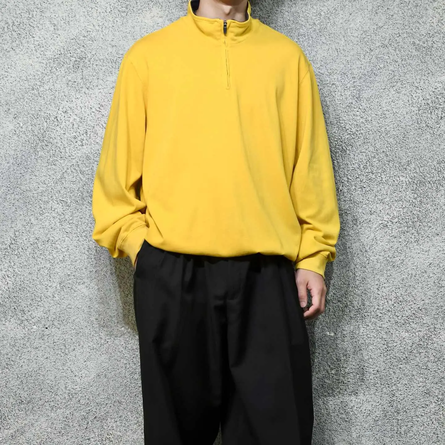 SIZE:XL 着丈70cm 肩幅54cm 身幅70cm 袖丈72cm fabric/cotton 着用画像 177cm/64kg ロンT感覚で着れる厚みのハーフジップ スウェットへ、ドローコードをカスタム。 本来味わうことの出来ない、溜まるシルエットを 楽しめる逸品です。 映えるカラーで差し色にも活用でき、 ナイロンパンツやトラックパンツと合わせて スポーティにも、デニムと合わせて カジュアルにも、幅広いコーデに落とし込める アイテムです。 ※フロントに軽度の汚れあり。 ※撮影状況により、実物と多少色が異なる場合が ございます。 ※古着を取り扱っているため、気づかない汚れや ほつれ等がある場合がございます。 ※サイズは着用感で選んでおり、 表記サイズではございません。 表記サイズは説明欄の最初に記載しております。 古着 オーバーサイズ old vintage ヴィンテージ used 80's 90's アメリカ古着 ユーロ古着 POLO RALPH LAUREN Eddie Bauer OLD GAP LANDS' END ランズエンド LLBean エルエルビーン オールドギャップ エディーバウアー ラルフローレン ブルックスブラザーズ Brooks Brothers 黄色 スウェット トレーナー などがお好きな方 #vintage #オーバーサイズ #old #used #90s #80s #古着 #ヴィンテージ #アメリカ古着 #ユーロ古着 #LLBean #エルエルビーン #EddieBauer #エディーバウアー #oldgap #オールドギャップ #LANDSEND #ランズエンド #NAUTICA #ノーティカ #ラルフローレン #POLORALPHLAUREN #ブルックスブラザーズ #BrooksBrothers #リメイク #リメイク古着 #ハーフジップ #ロンT #スウェット #ハーフジップスウェット