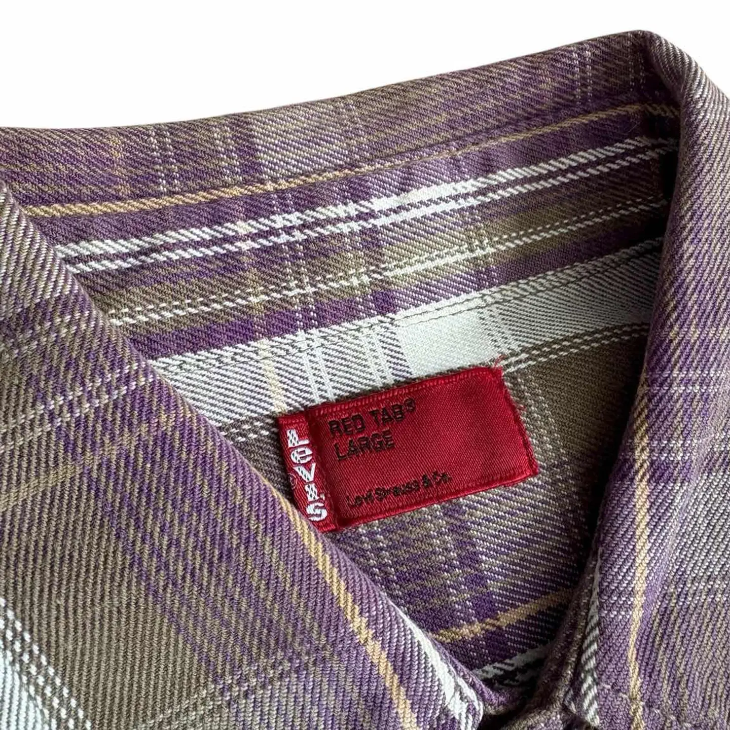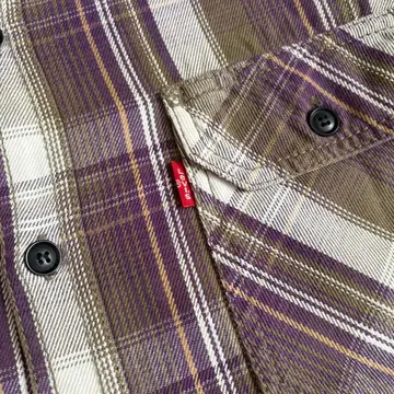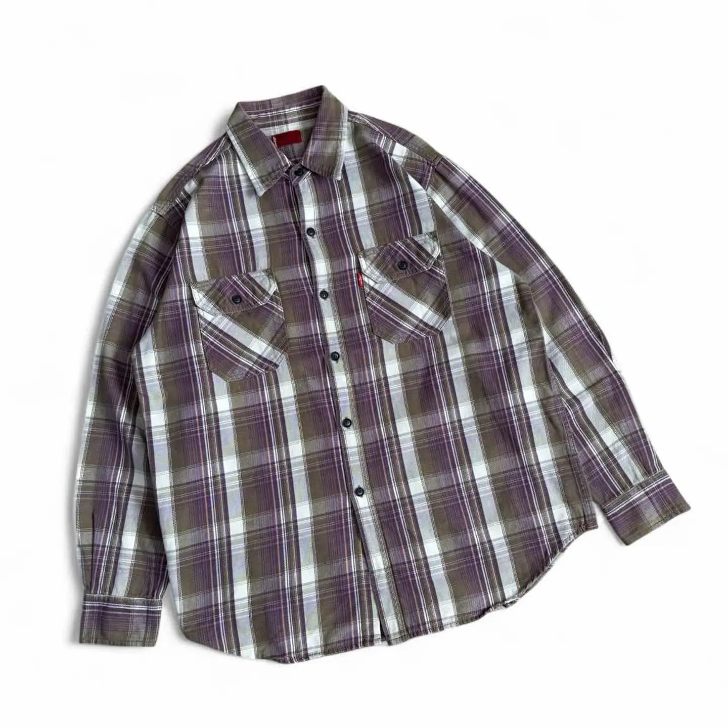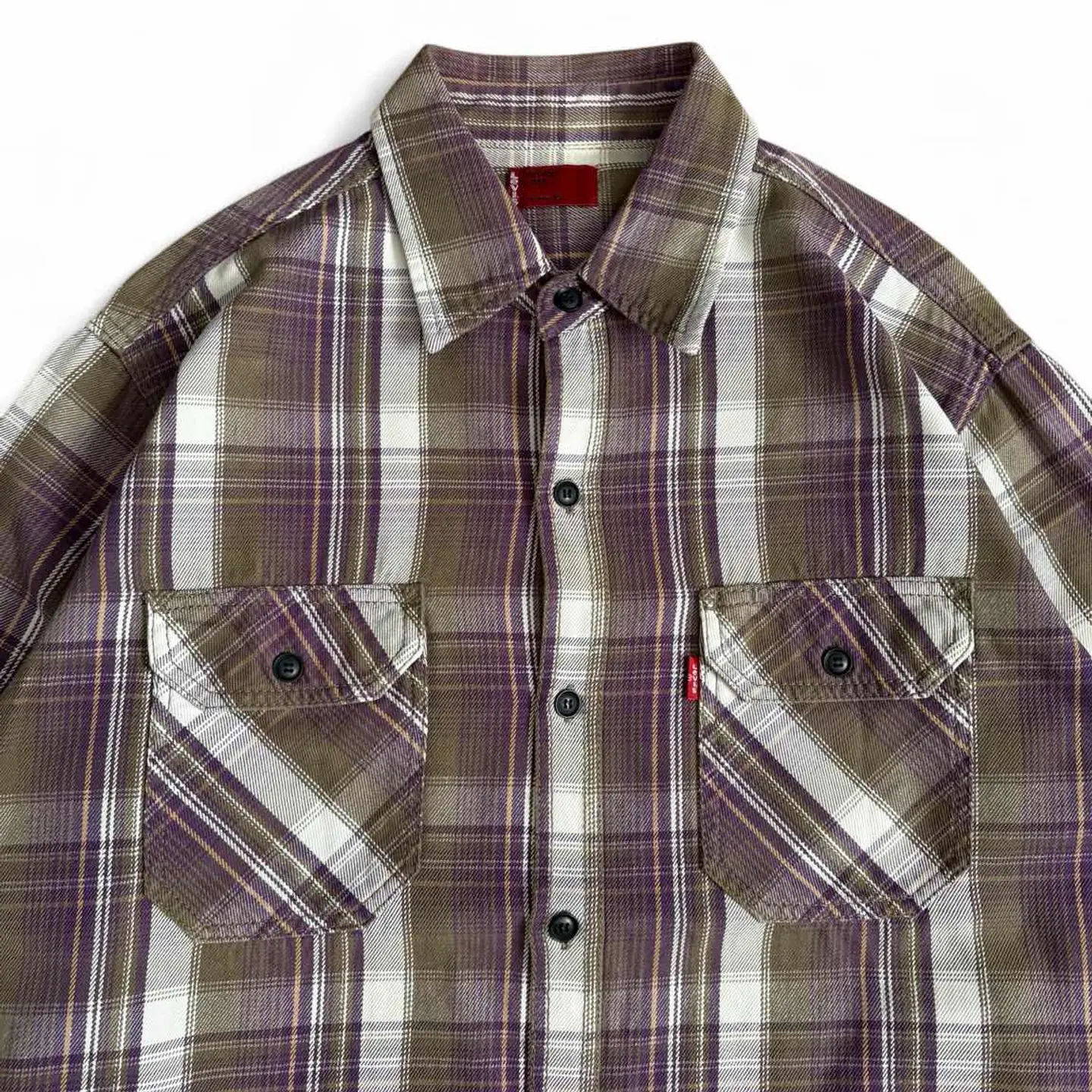 ○商品説明 Levi's 落ち着いた色味のパープルとホワイトのラインが 組み合わさったクラシカルなチェックデザイン。 両胸にはボタン付きのフラップポケットがついております。 カジュアルからアメカジスタイルまで幅広く合わせやすい一枚になっています。 是非。 ○サイズ 表記L 平置き ・肩幅45cm ・身幅58cm ・袖丈61cm ・着丈77cm ○商品の状態A A:使用感がほとんどなく、汚れやシミもなし B:多少使用感はあるが、汚れやシミも少ない C:使用感があり、汚れやシミがある D:使用感があり、大きな汚れや破れあり ○色 パープル カーキ ホワイト #Levi's#リーバイス#ネルシャツ