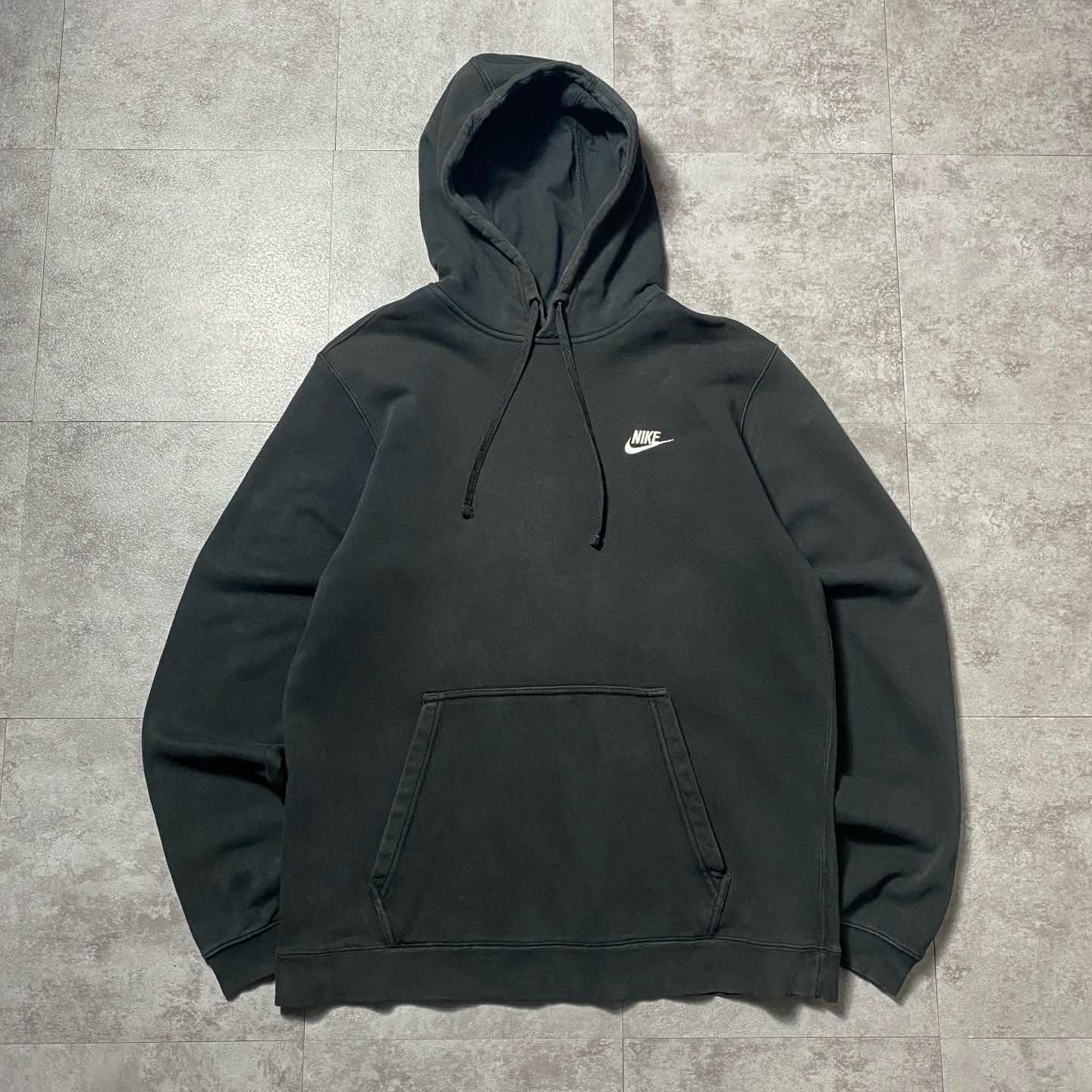 00's NIKE ナイキ スウォッシュ 刺繍ロゴ ブラック フリースパーカー