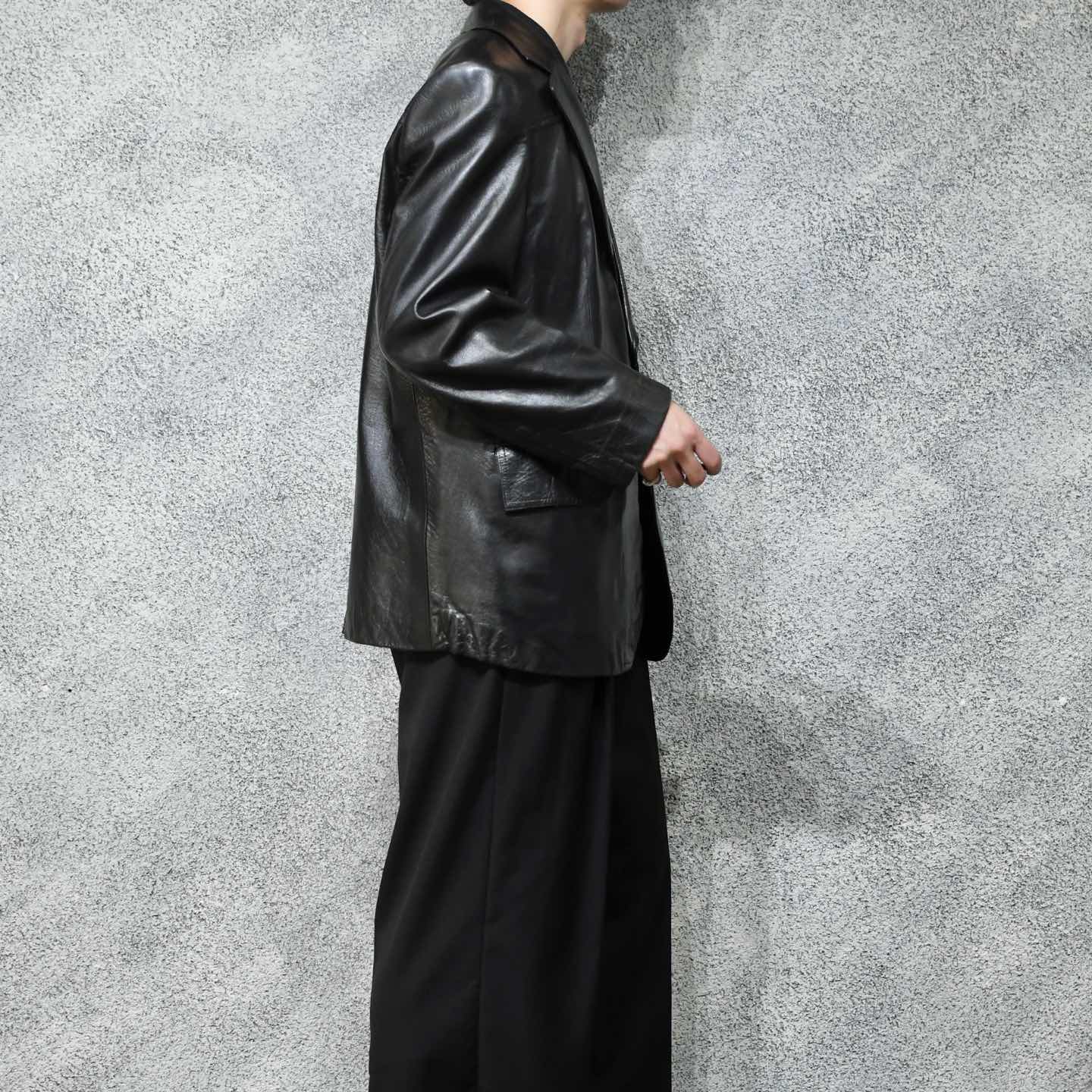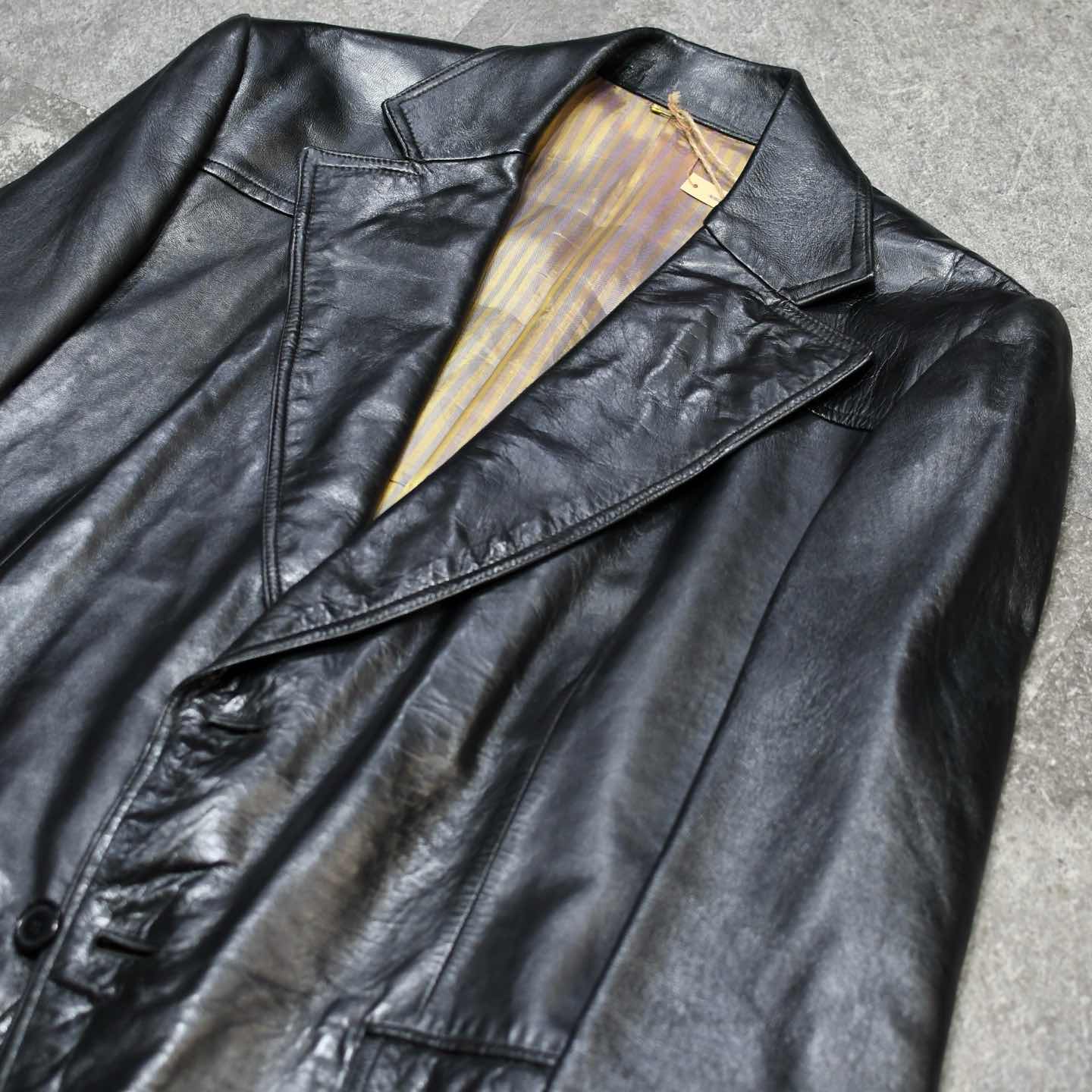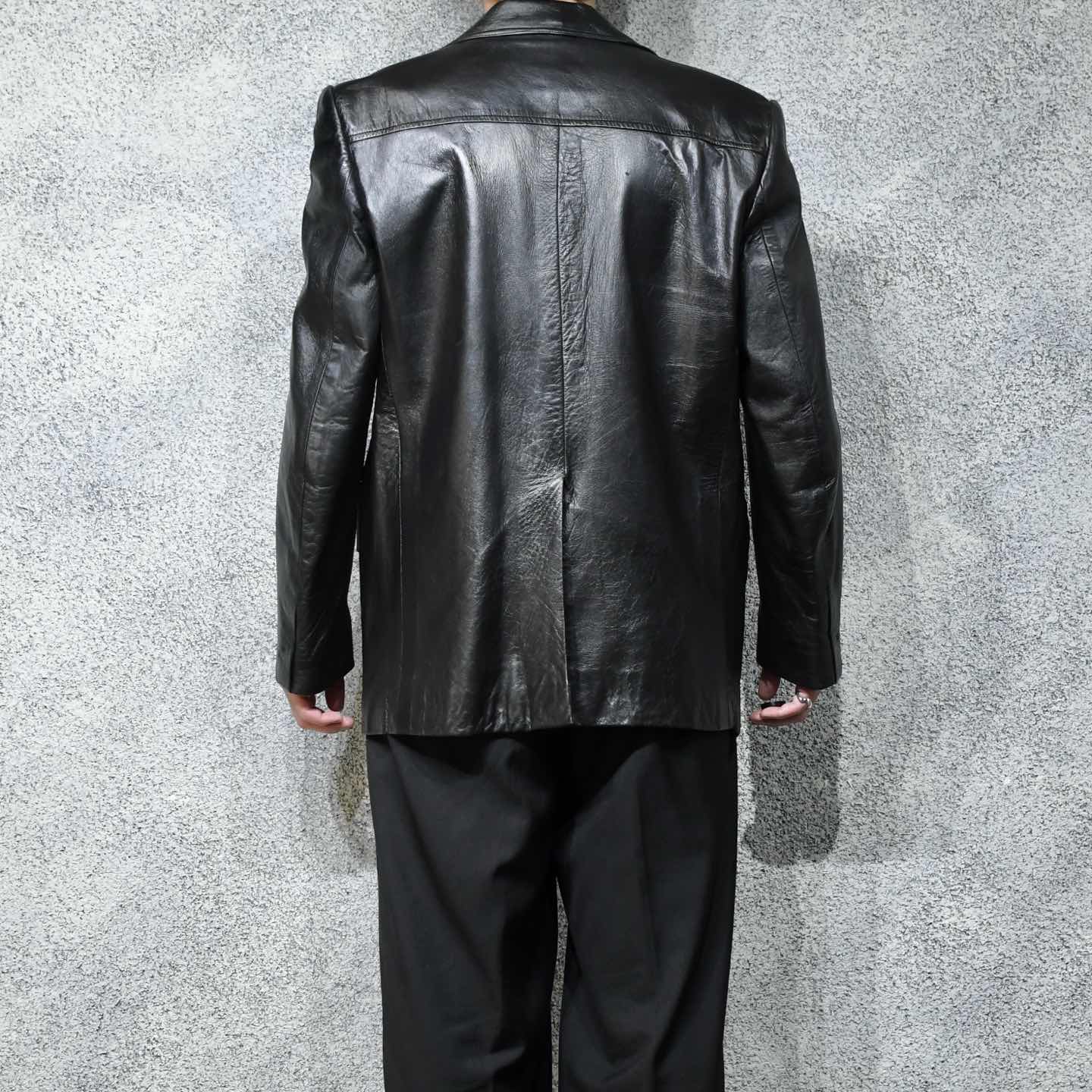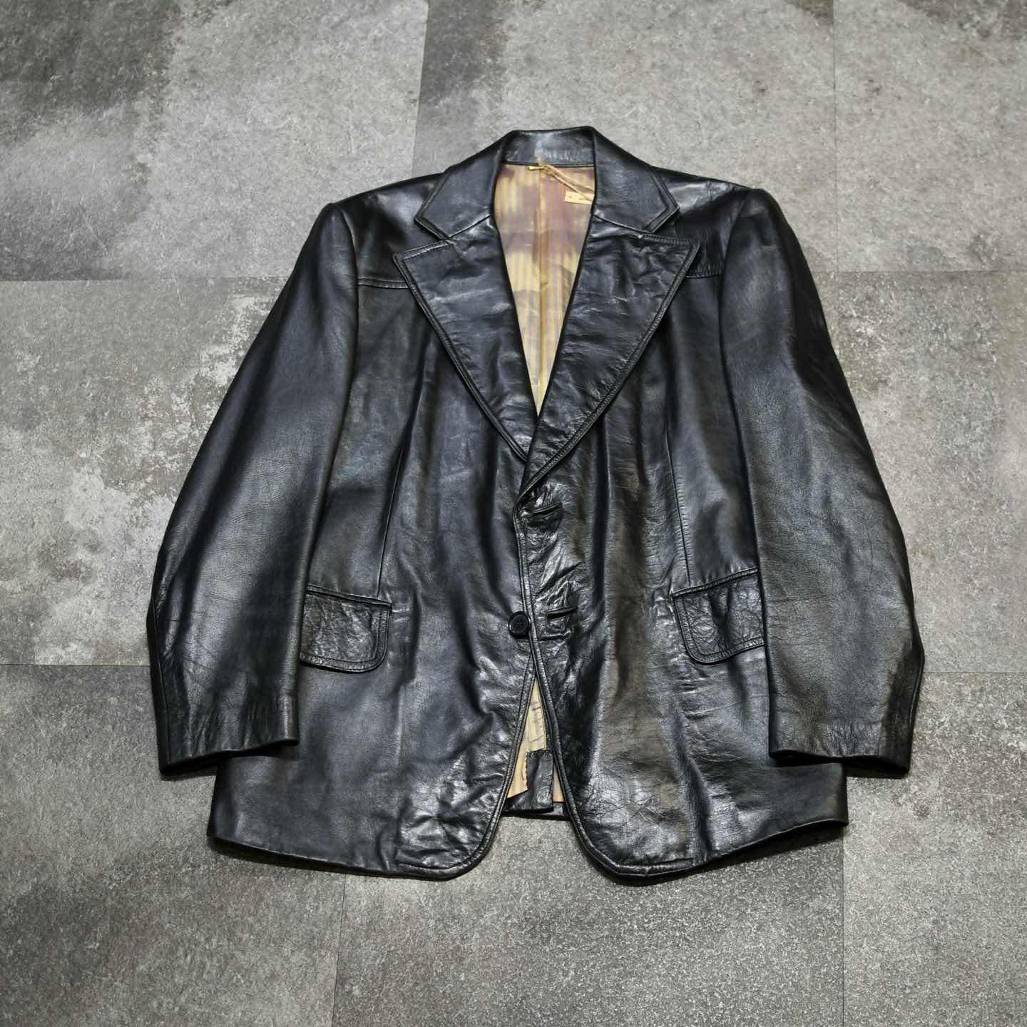 SIZE:- 着丈80cm 肩幅48cm 身幅60cm 袖丈62cm fabric/leather 着用画像 177cm/64kg 1930年代から存在するアメリカの老舗ブランド "Botany 500" クラシックなスーツやジャケットを 多く手掛けており、その中でも今回はレザーを 使った贅沢な逸品。 古い個体でありながら状態も良く、 そして比較的重くないところも◎ 裏地の高級感溢れるストライプ柄や、サイズ感、 最高でした。 デイリーユースというよりか、一張羅として着たい 1着です。 ※撮影状況により、実物と多少色が異なる場合が ございます。 ※古着を取り扱っているため、気づかない汚れや ほつれ等がある場合がございます。 ※サイズは着用感で選んでおり、 表記サイズではございません。 表記サイズは説明欄の最初に記載しております。 古着 オーバーサイズ old vintage ヴィンテージ used 80's 90's アメリカ古着 ユーロ古着 POLO RALPH LAUREN Eddie Bauer OLD GAP LANDS' END ランズエンド LLBean エルエルビーン オールドギャップ エディーバウアー ラルフローレン ブルックスブラザーズ Brooks Brothers ブラック 黒 50's などがお好きな方 #vintage #オーバーサイズ #old #used #90s #80s #古着 #ヴィンテージ #アメリカ古着 #ユーロ古着 #LLBean #エルエルビーン #EddieBauer #エディーバウアー #oldgap #オールドギャップ #LANDSEND #ランズエンド #NAUTICA #ノーティカ #ラルフローレン #POLORALPHLAUREN #ブルックスブラザーズ #BrooksBrothers #レザージャケット #テーラードジャケット #50s #60s #ジャケット