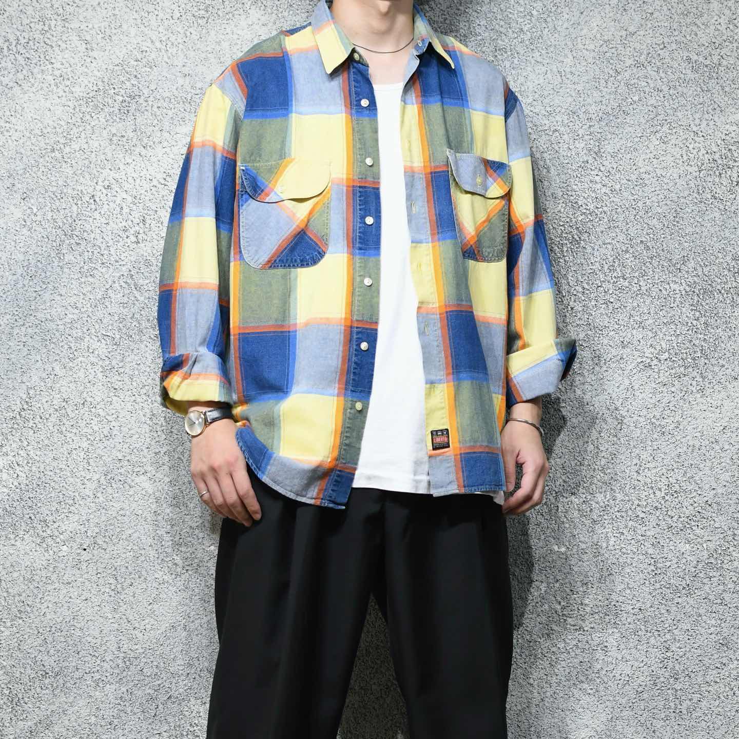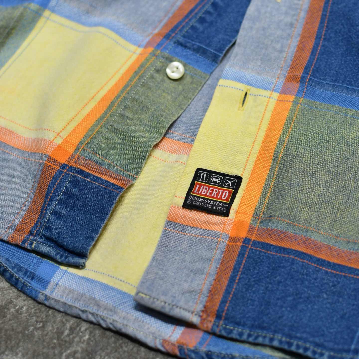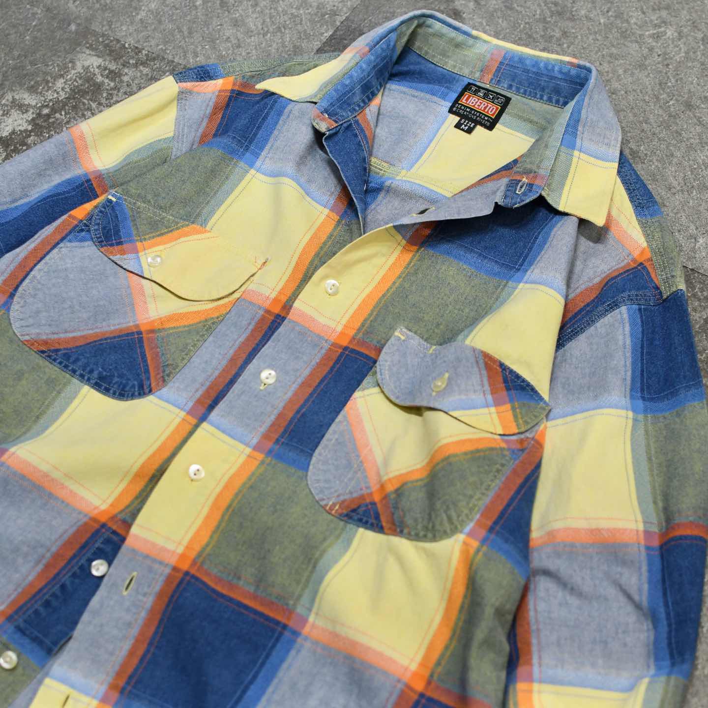 SIZE:M 着丈78cm 肩幅54cm 身幅62cm 袖丈63cm fabric/cotton 着用画像 177cm/64kg 1975年、フランスで誕生したデニムを 中心とするカジュアルウェアブランド。 フランスと聞くと、モード寄りなファッションや アイテムを思い浮かべますが、創業当時の フランスは、モードなファッションから 自由を求め、元々労働者の作業着であった デニムをファッションに取り入れ始めていた ようです。 そんな中に創業したこちらのブランド、 LIBERTO(自由)。 こちらの1着は其れを汲み取れますし、 フランスらしい型紙の良さが分かる 襟の形や袖のパターン。 そしてインディゴ染めや、糸の太さを変えて 編まれた生地。 見れば見るほどに惹かれる逸品です。 ※左袖後ろ側に軽度の汚れあり。 ※撮影状況により、実物と多少色が異なる場合が ございます。 ※古着を取り扱っているため、気づかない汚れや ほつれ等がある場合がございます。 ※サイズは着用感で選んでおり、 表記サイズは説明欄の最初に記載しております。 オーバーサイズ old vintage ヴィンテージ used 80's 90's POLO RALPH LAUREN Eddie Bauer OLD GAP LANDS' END ランズエンド LLBean エルエルビーン オールドギャップ エディーバウアー ラルフローレン ブルックスブラザーズ Brooks Brothers 黄色 などがお好きな方 #vintage #オーバーサイズ #old #used #90s #80s #古着 #ヴィンテージ #LLBean #エルエルビーン #EddieBauer #エディーバウアー #oldgap #LANDSEND #ランズエンド #NAUTICA #ラルフローレン #POLORALPHLAUREN #ブルックスブラザーズ #BrooksBrothers #チェックシャツ #シャツ