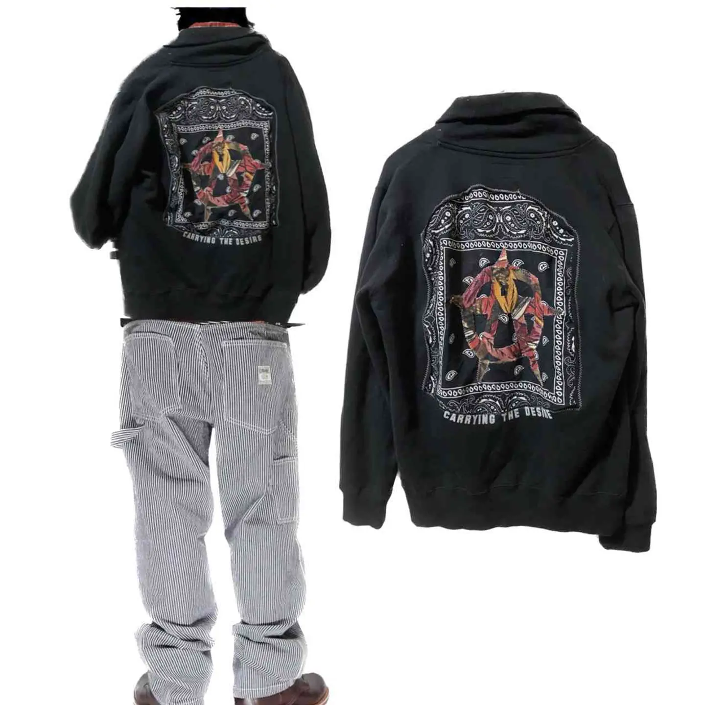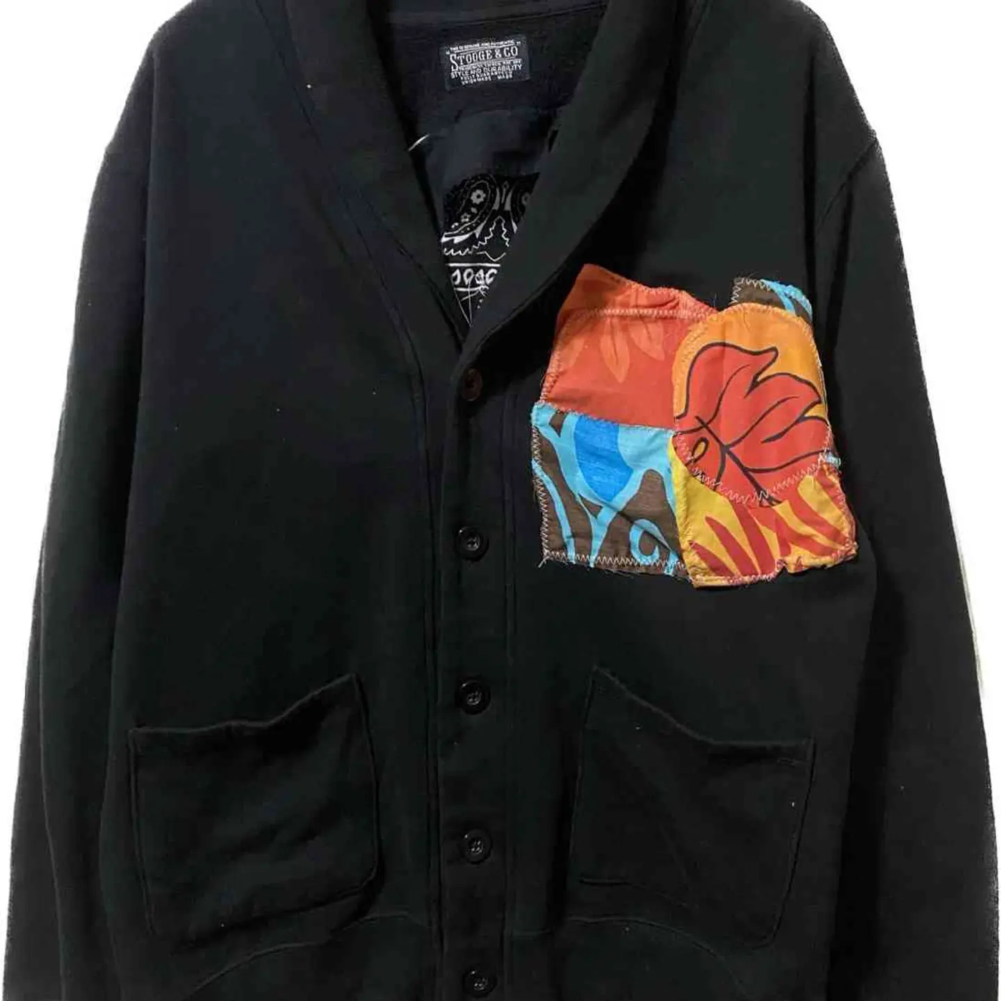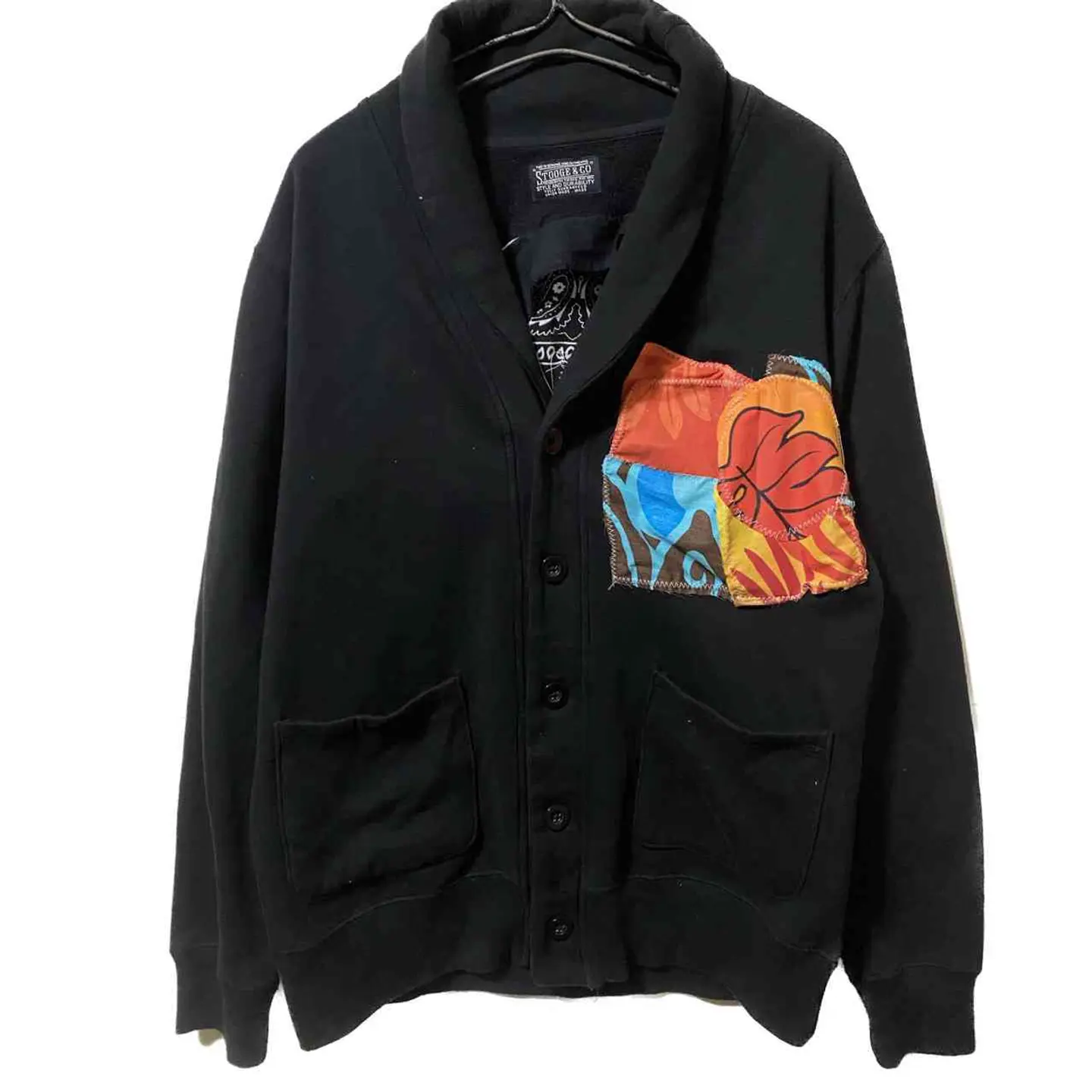 00s ヴィンテージ アンチスタイルリメイク ショールカラージャケットXL 普通のものに価値を加えるアンチスタイル リメイク スウェット素材のようなショールカラーのジャケットをフルリメイクしました 保温性と通気性を考慮して バッグ をざっくりと切り抜き バンダナ 裏から縫い付け アナーキーマークを施しました さらにフロントはデザイン性のあるマテリアルを縫い付け デザイン性を考慮しました 後ろにはロゴも残しており かなり かっこいい作りとなっておりますので お気に召した方のお気に入りになってくれると嬉しいです コーディネートネオ アメカジスタイルです いかつめの中にセンスが光る 大人コーディネートとなっております ▷color◁ ブラック ※ブラウザで異なる場合ありますがかなり実物には、近づけてます、 ▷size◁ 平置き片面採寸【㎝表記】 表記sizeXL にしました 着丈/69 身幅/60 肩幅/58DS 袖丈 /63 DSは袖はハンガー採寸 ※多少の誤差は理解下さい 170/Mジャスト体型の私が着て、✔️参考に ジャスト オーバーサイズ✔️ ビックサイズ 【素材】 スウェットよりのコットン 【状態】 最強 検品、洗濯、検品で、3回チェックして発送しますので、ご安心して、お買い求め下さい!! #vintage #90s #古着男子 #remake