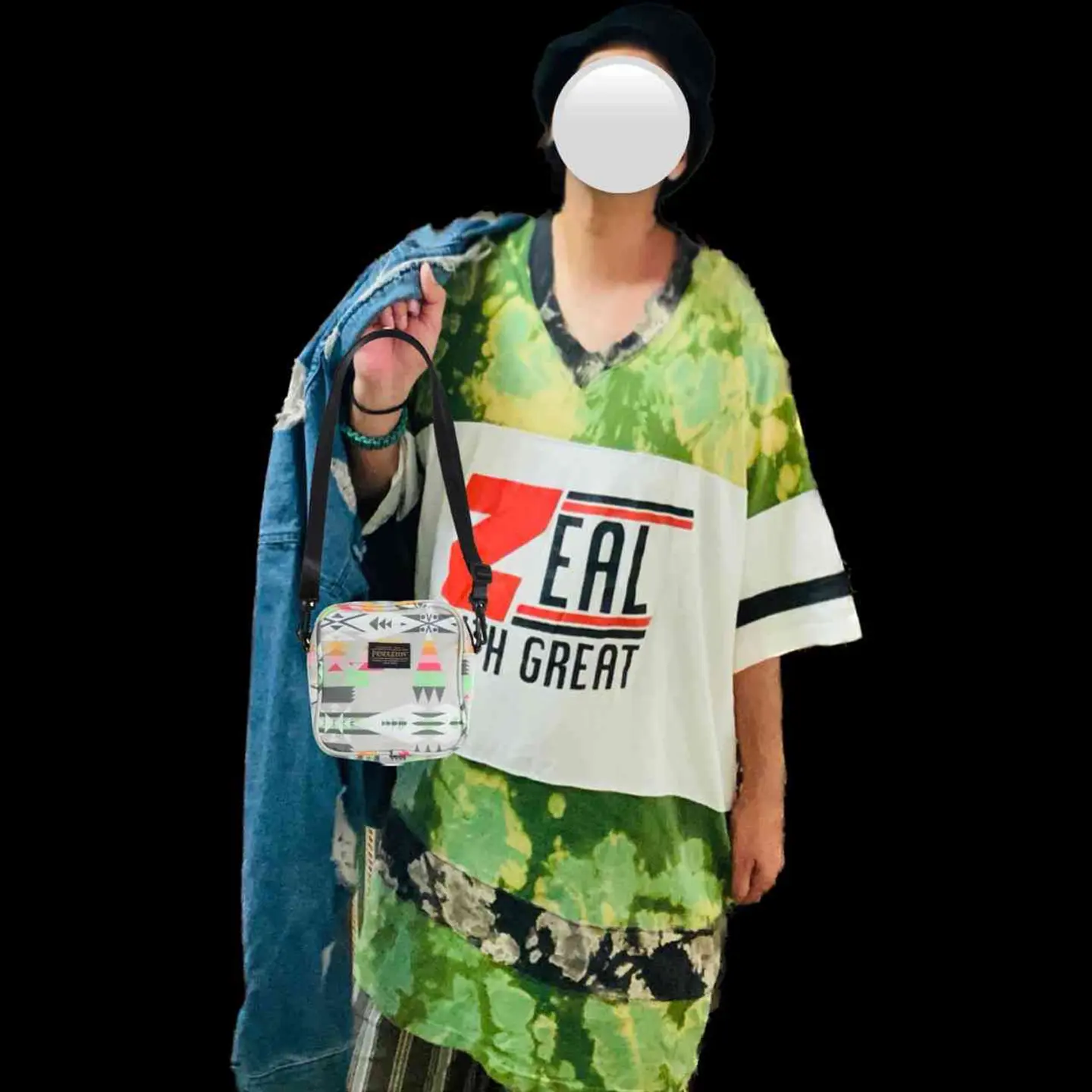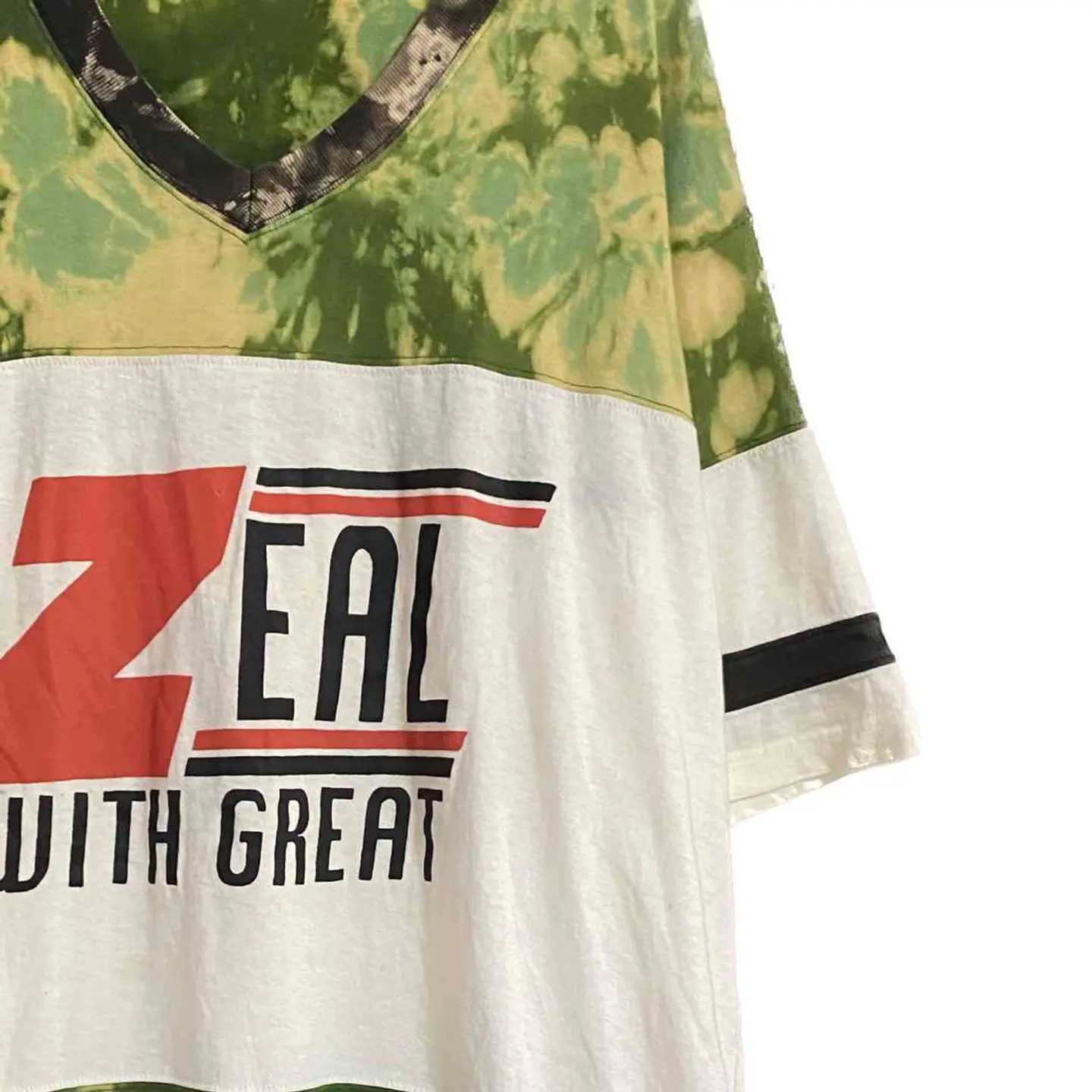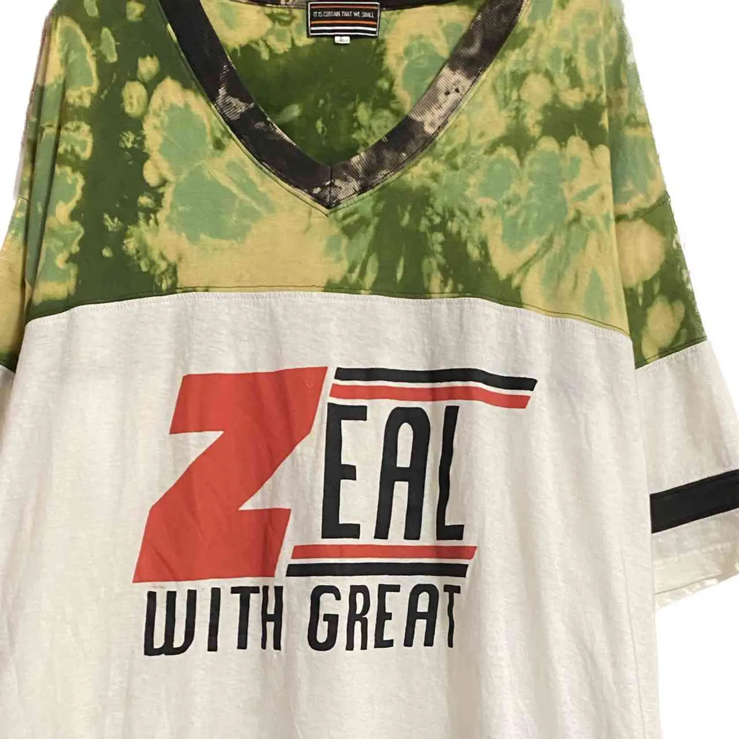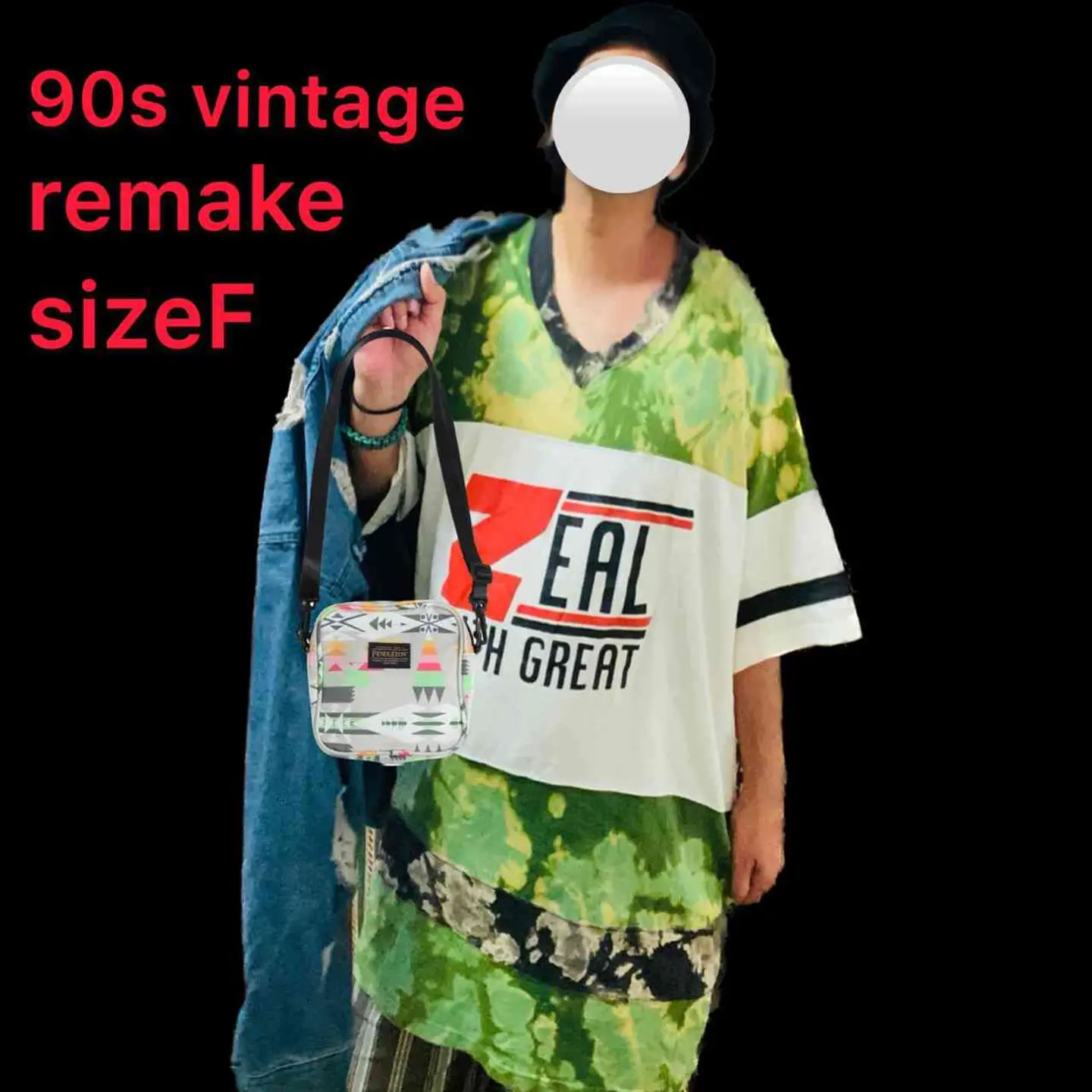 90年 ヴィンテージ リメイク草木染め スイッチ デザイン ビッグT シャツ 90年代 ヴィンテージの激レアなスイッチフットボルフデザインの限定 T シャツをフルカスタム いたしました。 とことん 草木染めをして色を抜き 染め抜きを繰り返しての個性的な色に仕上げました 圧倒的なビッグサイズがあの時代のトレンド を彷彿させ わくわくする 1着となっております さらに V ネックは独特の脱力感が出ますので首の野暮ったさもありませんので 是非試して欲しいです コーディネートのように デニムジャケット 軽く肩持ちして気温が変われば 羽織る という しかもそこにフロントデザインが一気に 個性を見せる おしゃれなコーディネートを提供しましたので 是非 参考にしてゲットください COLOR 写真通り ※ブラウザで異なる場合ありますがかなり実物には、近づけてます、 ▷size◁ 平置き片面採寸【㎝表記】 表記size F表記よって、omeoff タイプキングサイズ 着丈/94 身幅/68 肩幅/65超DS 袖丈 /47↓ 人によりますが、ハーフスリーブ風に決まり、お洒落 DSは袖はハンガー採寸 ※多少の誤差は理解下さい 170センチ Mジャストの私が、着用してビックサイズ、 【素材】 コットン100% 【状態】 良い長く愛用できます、