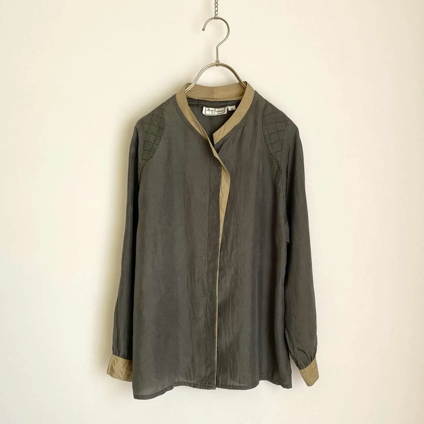 レトロなバイカラーの色合いが魅力的なUSAヴィンテージ古着ブラウス。ショルダー部分がキルティングになっているお洒落なデザインです。薄手の軽やかな生地感でほどよくゆとりのあるシルエット。大人の古着スタイルにぴったりなオススメのアイテムです。 □Size (着用感レディースS程度) 着丈59㎝ 身幅45㎝ 肩幅32㎝ 袖丈53㎝ (平置き) □タグ欠損の為素材不明 □Condition【B】 目立ったダメージの無い通常の古着コンディションです。中古品であることをご理解のうえお買い求めください。ご購入前に必ずショッピングガイドのご確認をお願いいたします。 【S】未使用 【A】未使用に近い 【B】やや使用感あり 【C】使用感あり Item No.3386