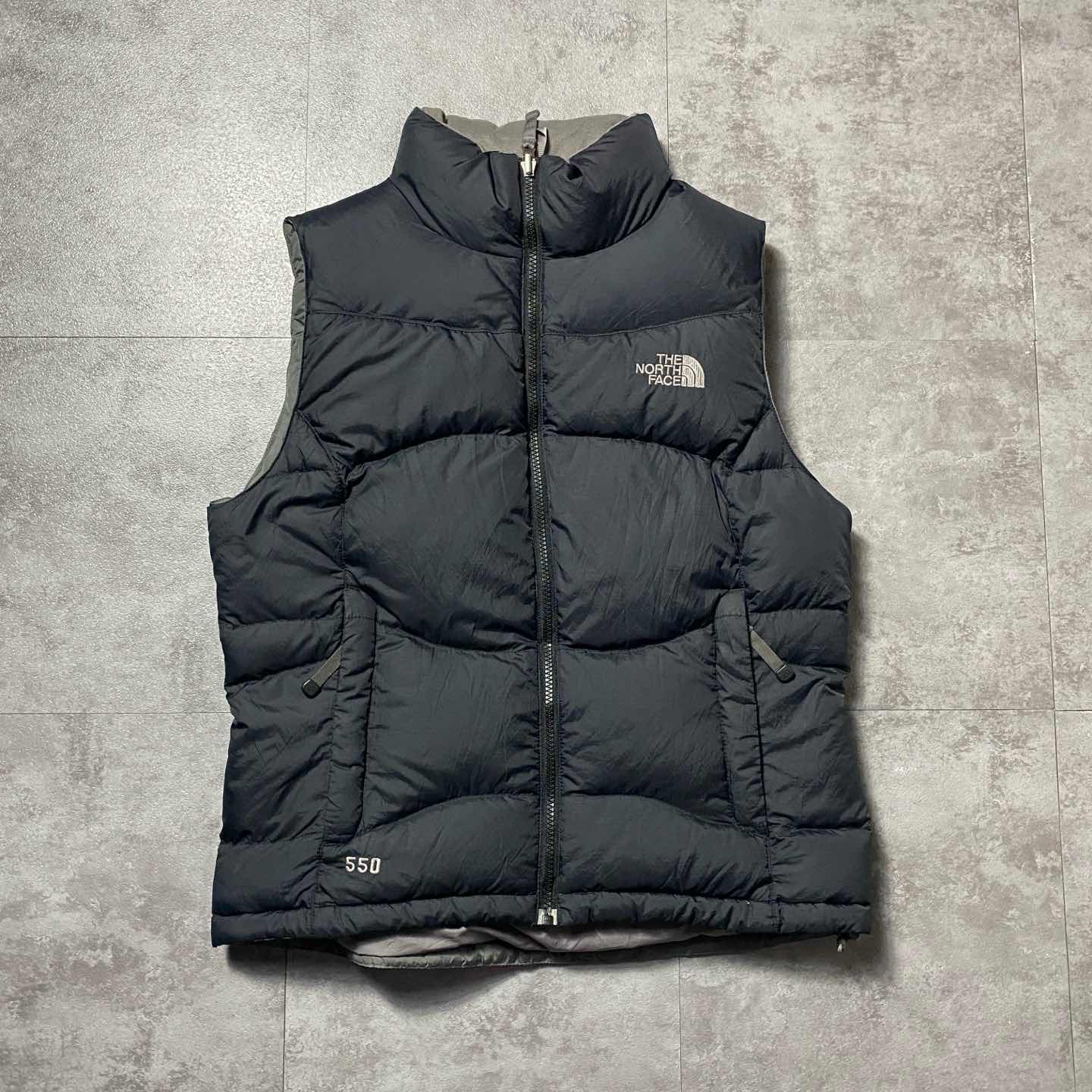 ノースフェイス 550フィルパワー ブラック 刺繍ロゴ ダウンベスト