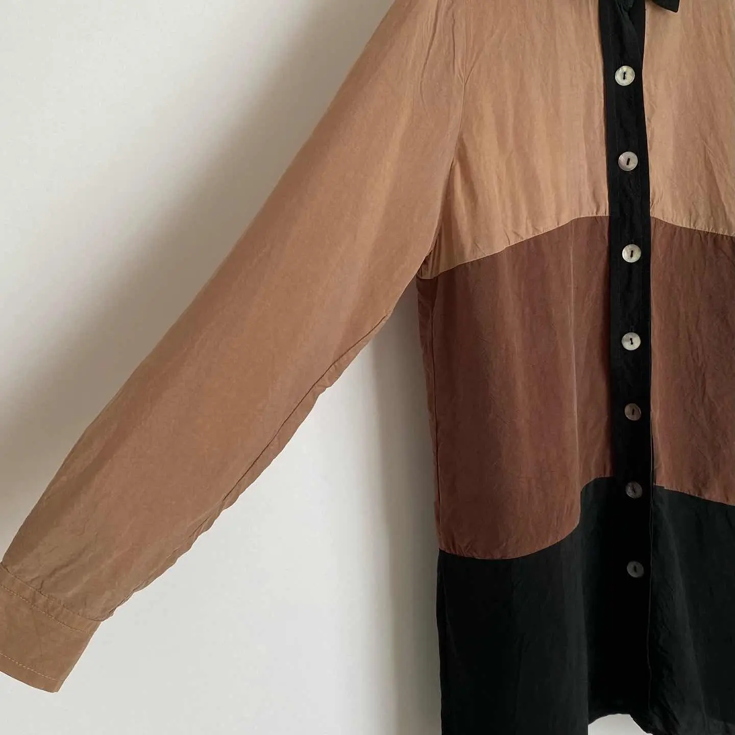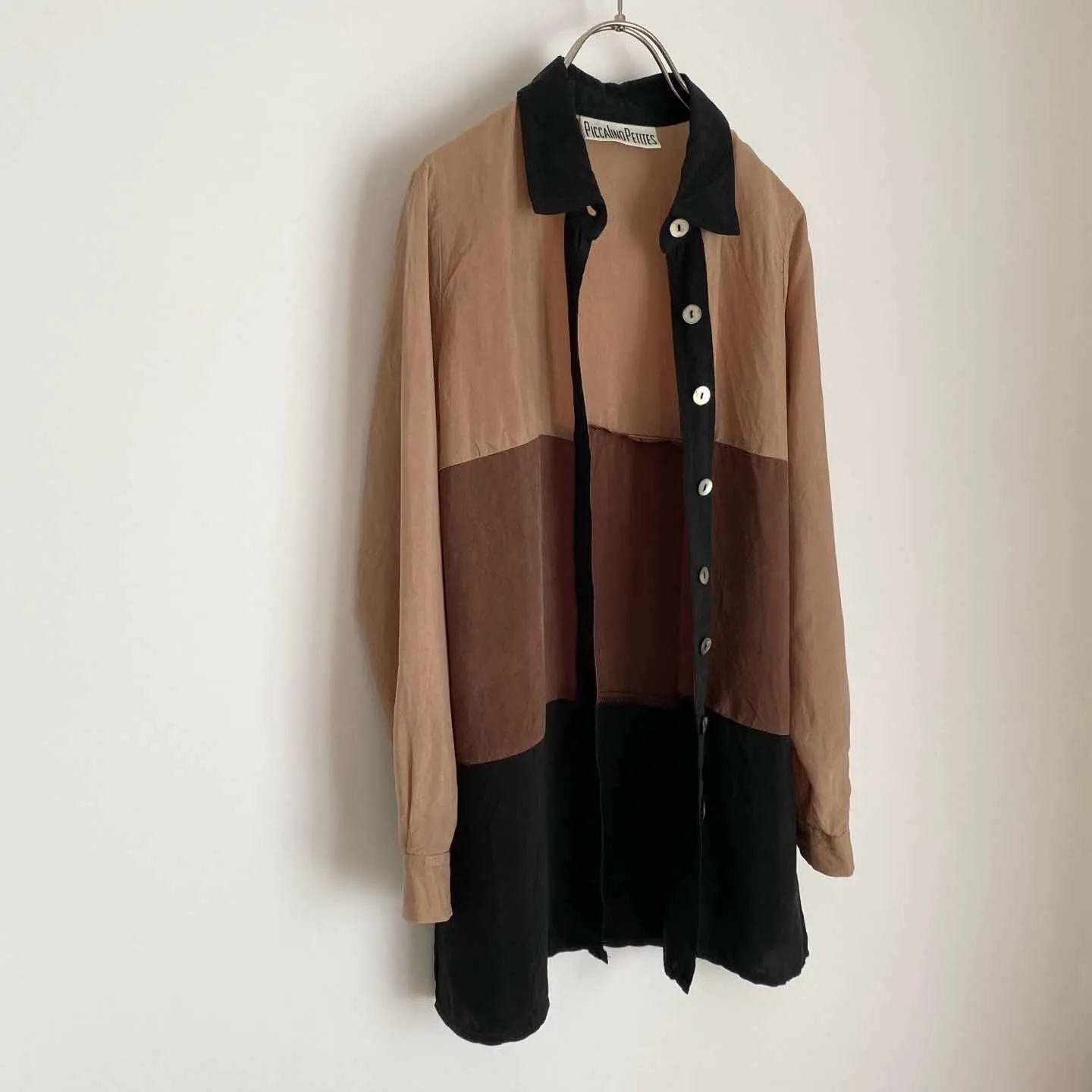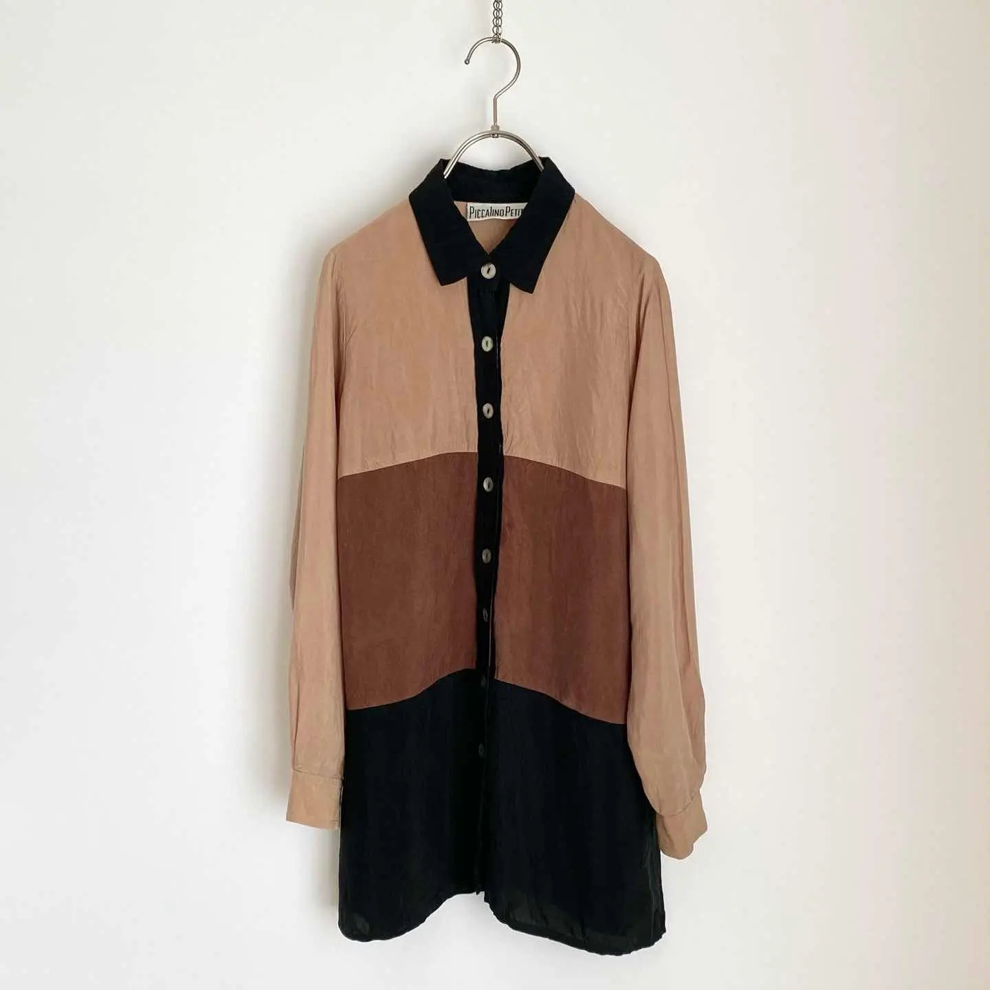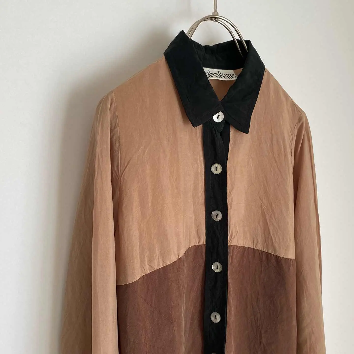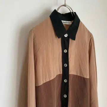 レトロな色合いが魅力的なUSAヴィンテージ古着ブラウス。落ち着いた色合いの中にシェルボタンがキラリと輝くお洒落なデザインです。薄手のサラリとした生地感でほどよくゆとりのあるシルエット。やや長めの丈感ですので、ボタンを開けてアウター代わりや重ね着スタイルにもおすすめです。 □Size (着用感レディースS程度) 着丈73㎝ 身幅46㎝ 肩幅33㎝ 袖丈58.5㎝ (平置き) □タグ欠損の為素材不明 □Condition【B】 目立ったダメージの無い通常の古着コンディションです。(※左袖口のボタンのみプラスチック製のものになっています)中古品であることをご理解のうえお買い求めください。ご購入前に必ずショッピングガイドのご確認をお願いいたします。 【S】未使用 【A】未使用に近い 【B】やや使用感あり 【C】使用感あり Item No.3390