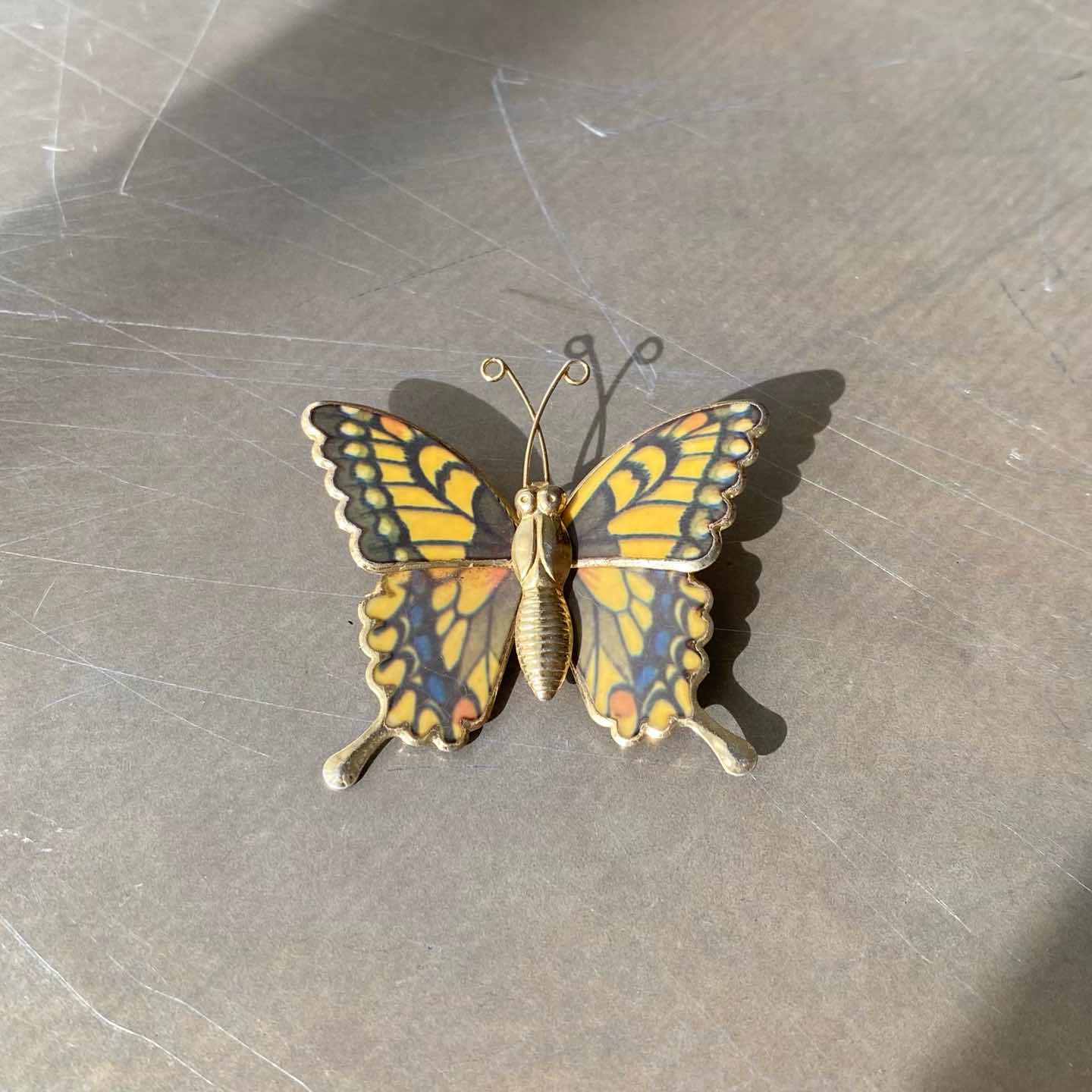 Vintage 70s-80s USA retro yellow butterfly brooch
