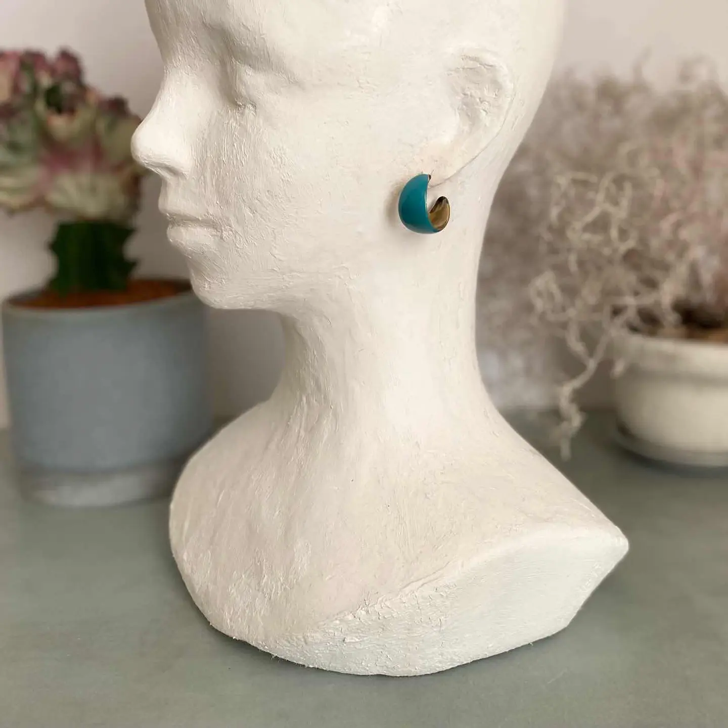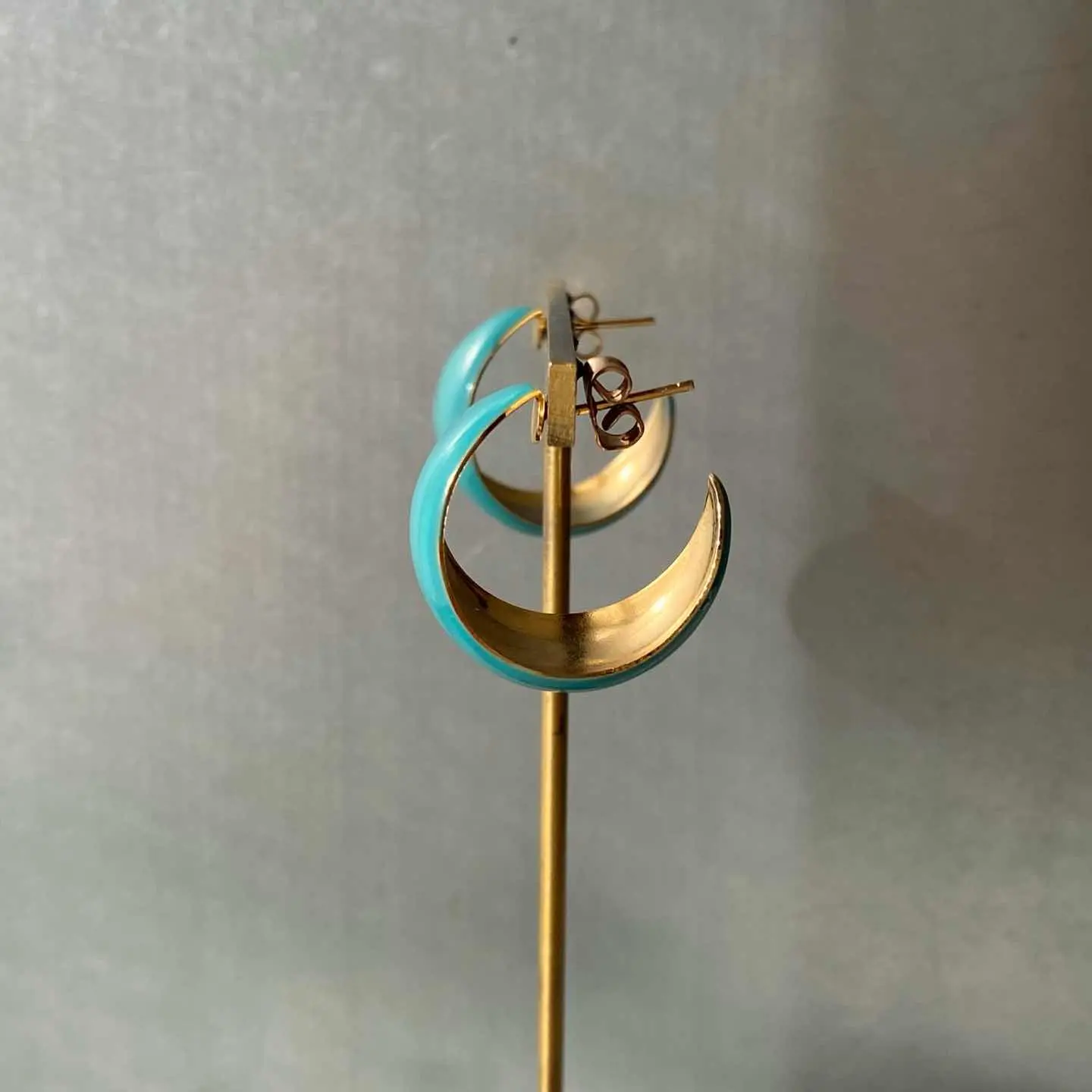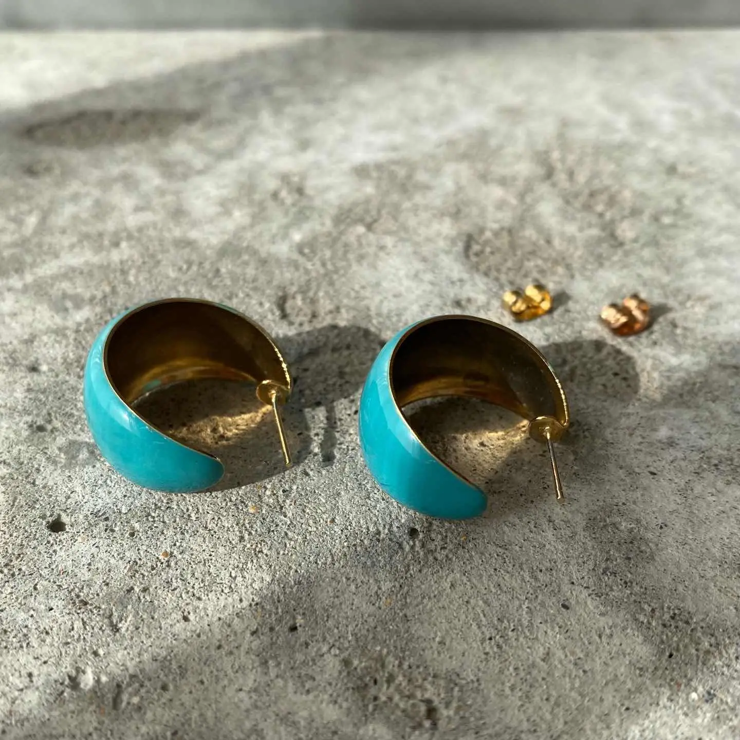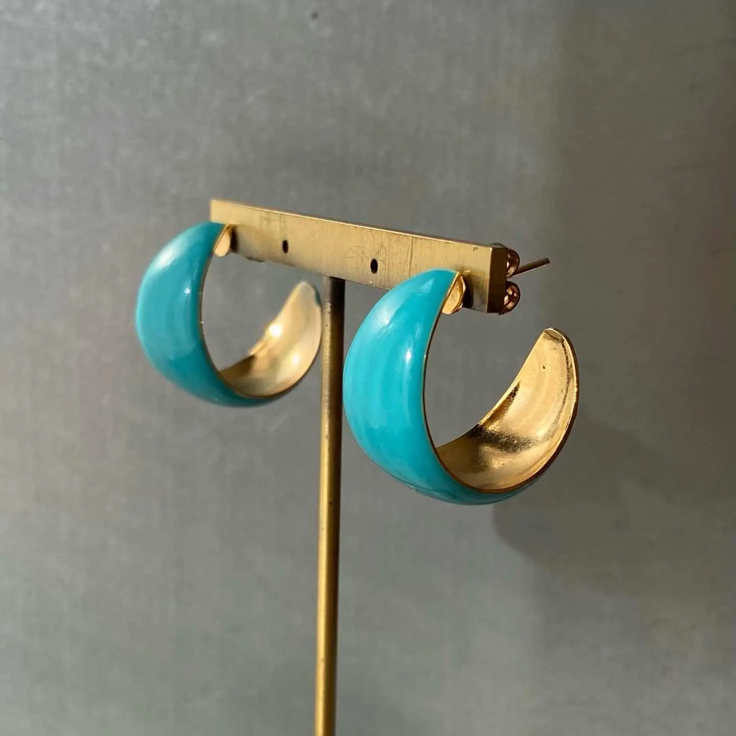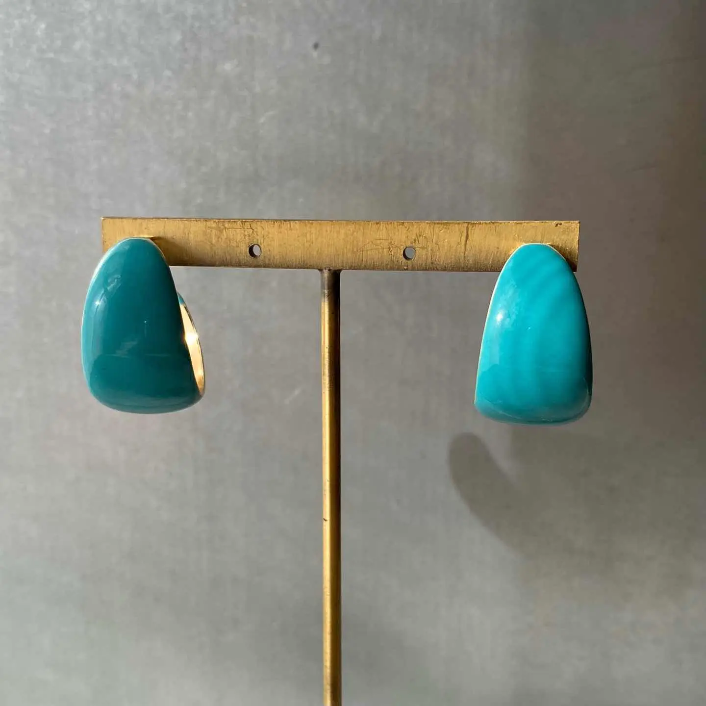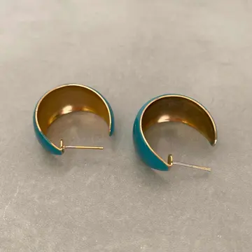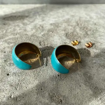 レトロなエナメルが魅力的なUSAヴィンテージフープピアス。スタイリングの差し色になりお顔まわりを明るい雰囲気にしてくれます。 □Materials メタル(ゴールドメッキ)、エナメル □Size 約H2.4×W1.4㎝ 6g □Condition【B】 経年によるメタルの変色がみられます。(※元々の作りですがポスト部分のメッキに左右差がございます。画像をご確認ください。)中古品であることをご理解のうえお買い求めください。ご購入前に必ずショッピングガイドのご確認をお願いいたします。 【S】未使用 【A】未使用に近い 【B】やや使用感あり 【C】使用感あり Item No.3396
