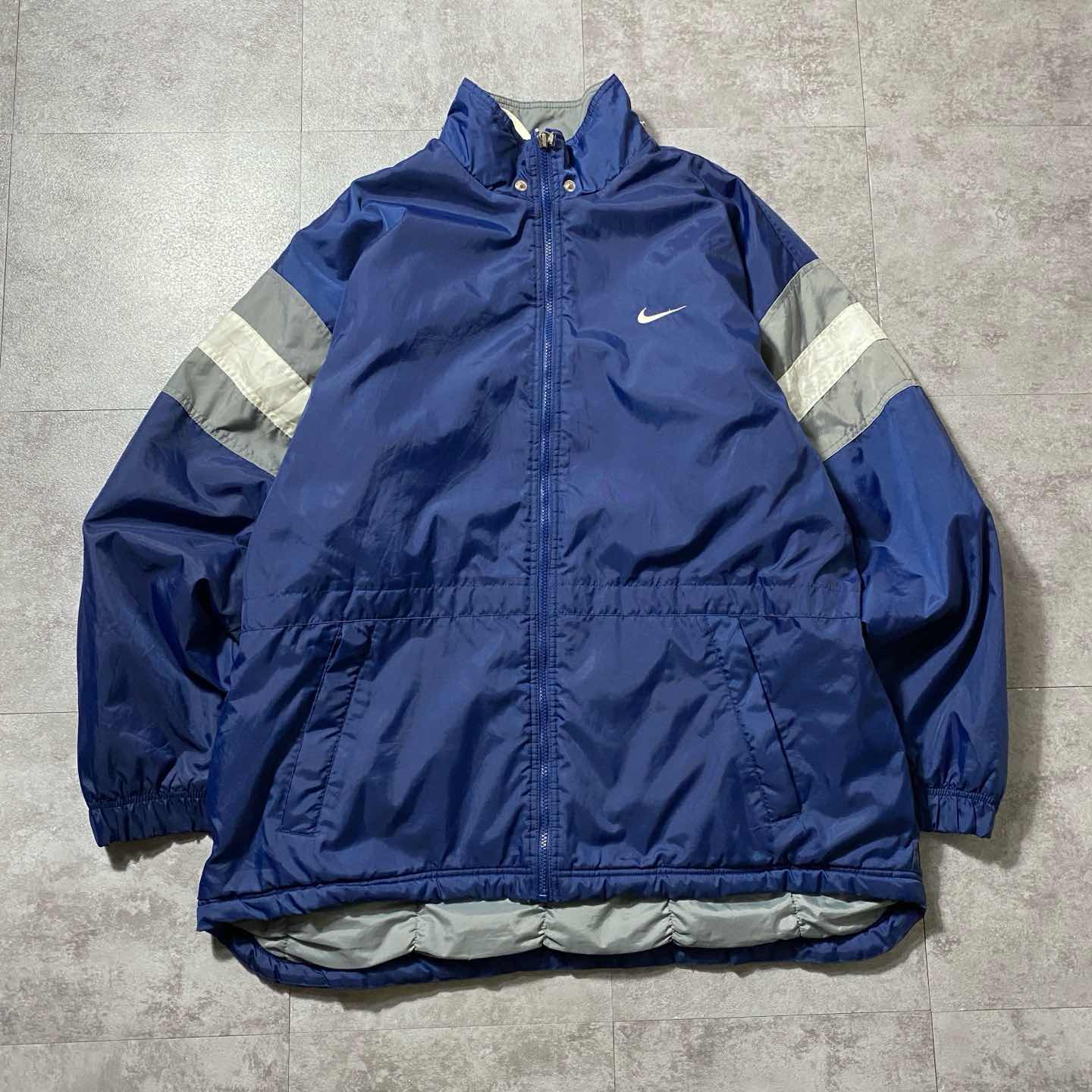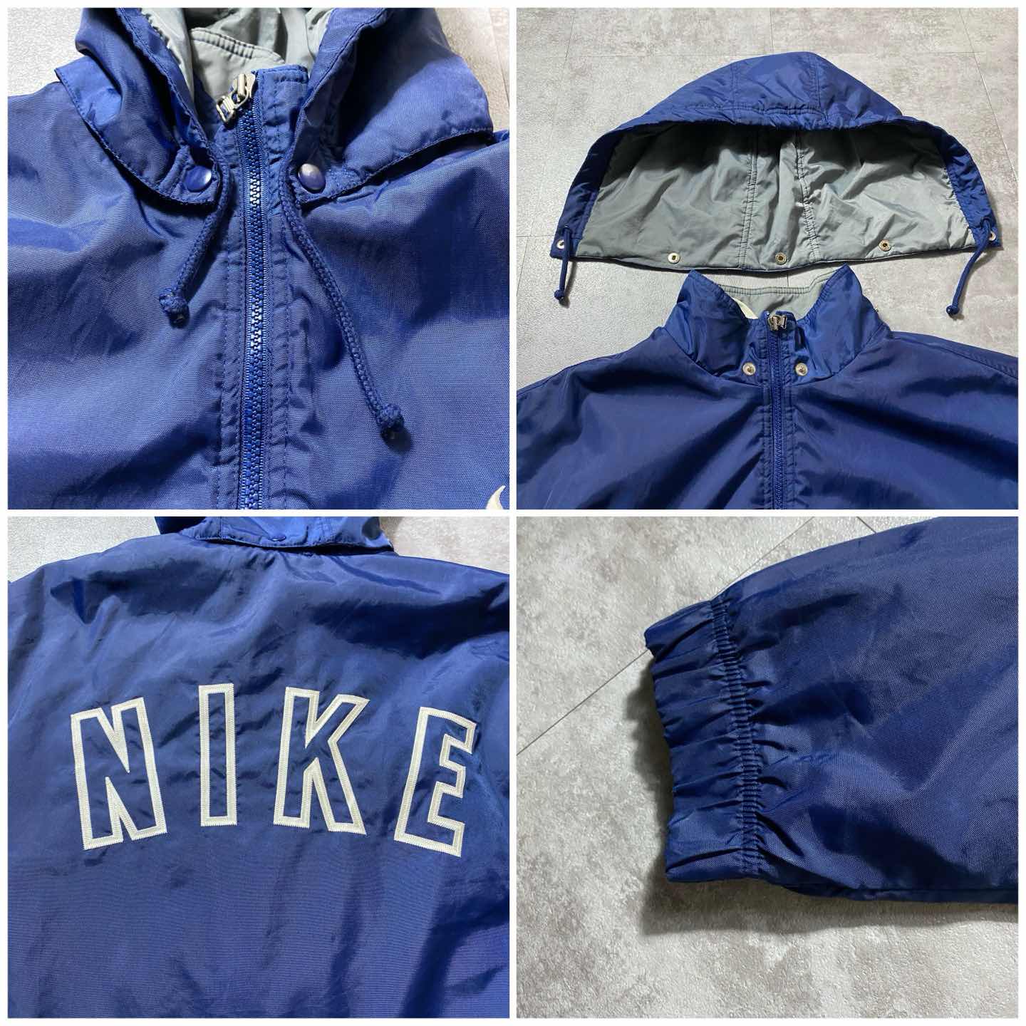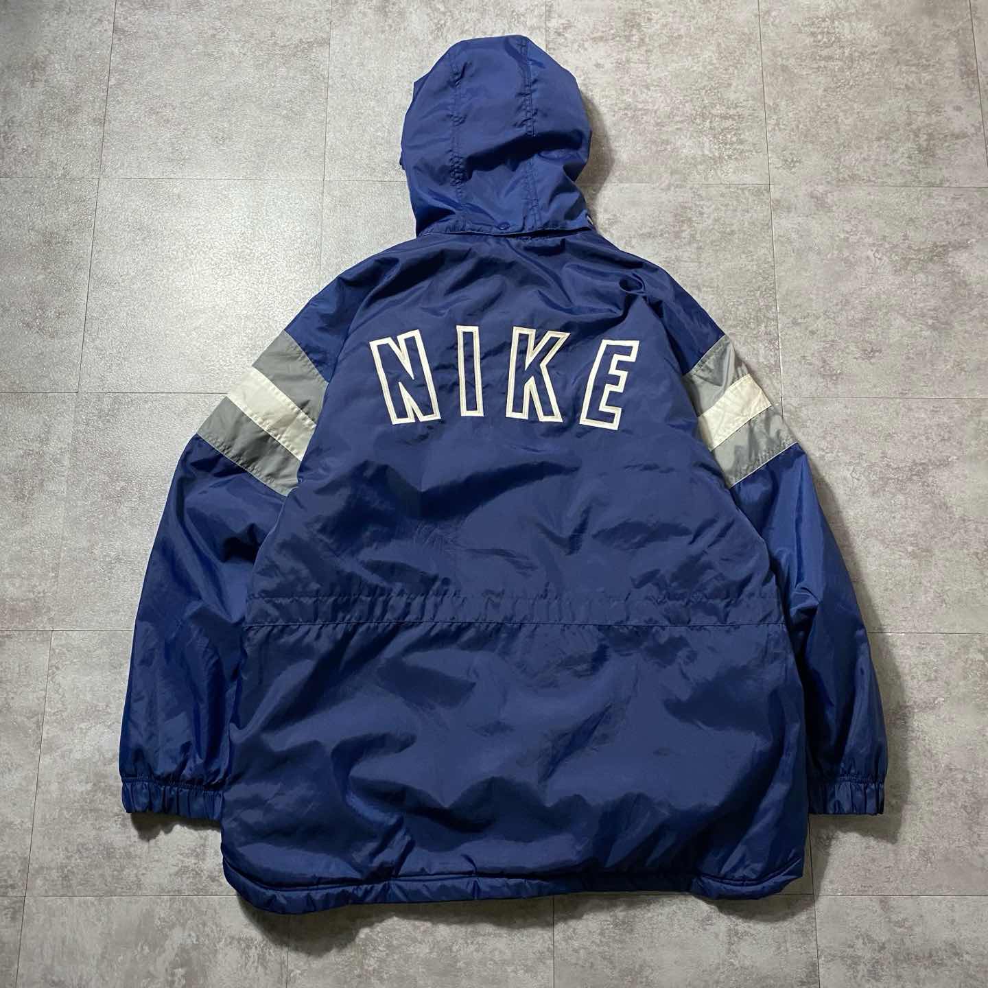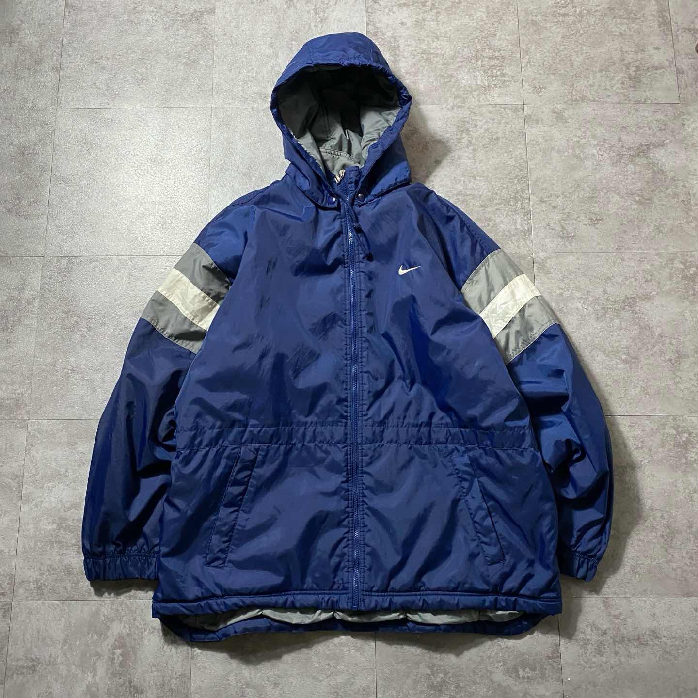 90s NIKE ナイキ 刺繍ワンポイント バックロゴ 中綿 フード ナイロンジャケット