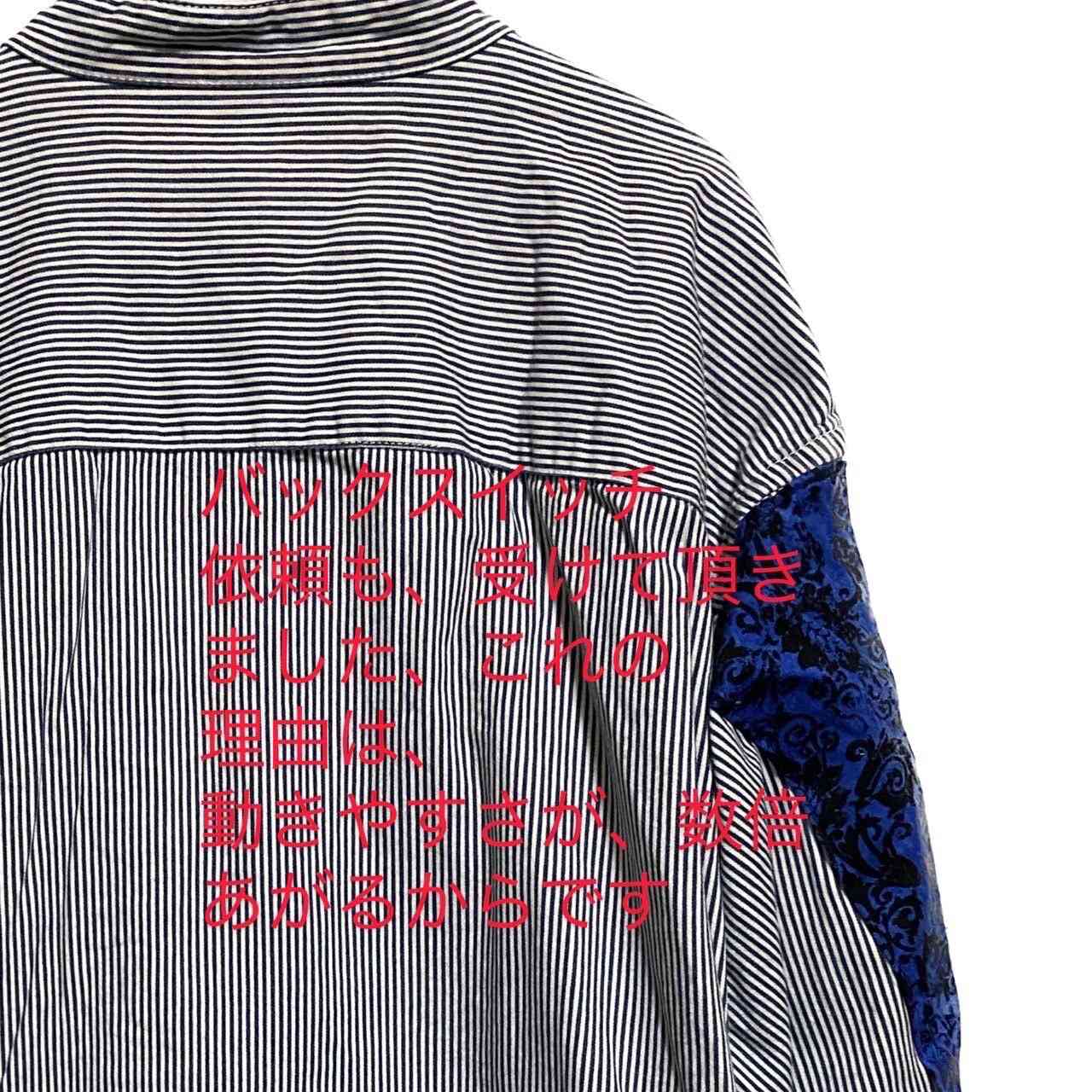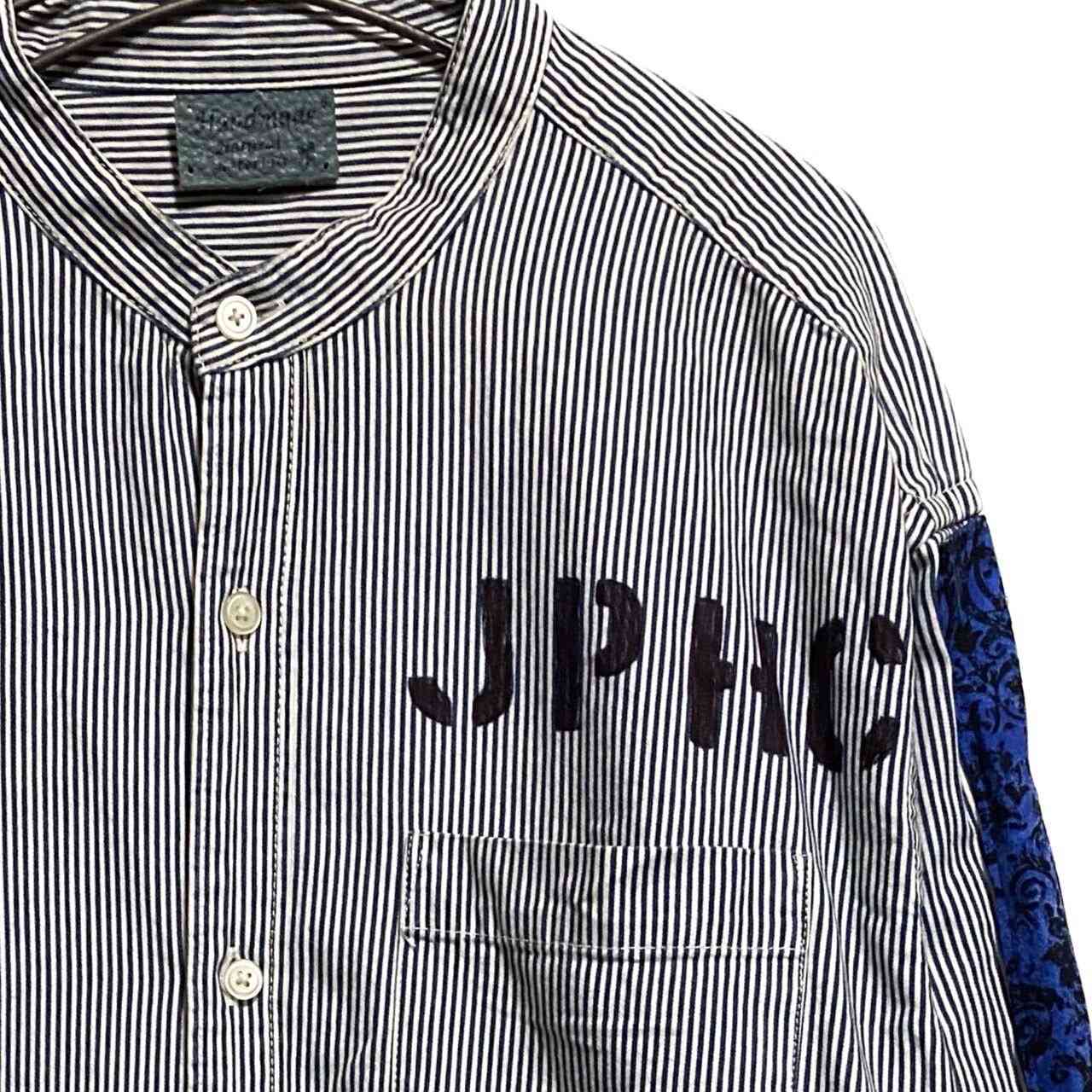 90年 ヴィンテージのヒッコリー シャツ デザイナーズのやつを フルリメイク いたしました。 袖にデザインがあるとかっこいいなと思って 70年代のヨーロピアン マテリアルを縫い付け さらに胸に jphc ロゴを入れて フォントはアメリカのミリタリーフォントをイメージしてありました 世界で1つだけのヒッコリー シャツと激レアなオーバーサイズを利用して作成しましたので様々なコーディネートに対応いたします コーディネート 参考になればいいのですが 最近気に入っている ダボっとしたデザインパンツを合わせて ゆるダボ 大人ナチュラルスタイルにしております もちろん デニムパンツ チノパン 何とでも相性はいいのでお買い求め後すぐにあなたのコーディネートがアップデートされることは間違いないので是非この機会に当店の自慢のリメイク 体感ください ▷color◁ ヒッコリー ※ブラウザで異なる場合ありますがかなり実物には、近づけてます、 ▷size◁ 平置き片面採寸【㎝表記】 表記size F 着丈/84 身幅/68 肩幅/62DS 袖丈 /65↓ DSは袖はハンガー採寸 ※多少の誤差は理解下さい 170/Mジャスト体型の私が着て、✔️参考に ジャスト オーバーサイズ ビックサイズ✔️ 【素材】 最高級斜織コットン 【状態】 丁寧に仕上げたので最高です。 検品、洗濯、検品で、3回チェックして発送しますので、ご安心して、お買い求め下さい!!
