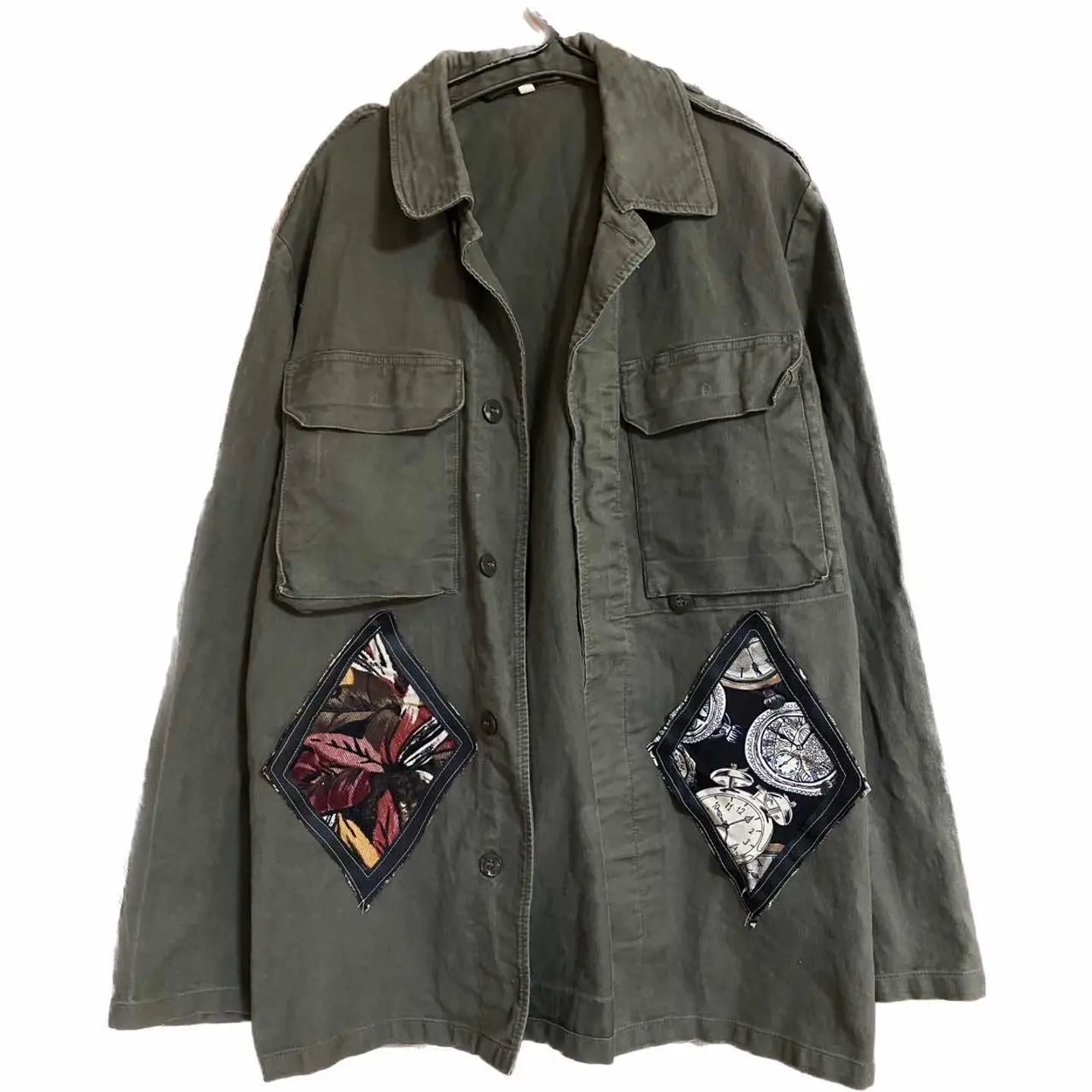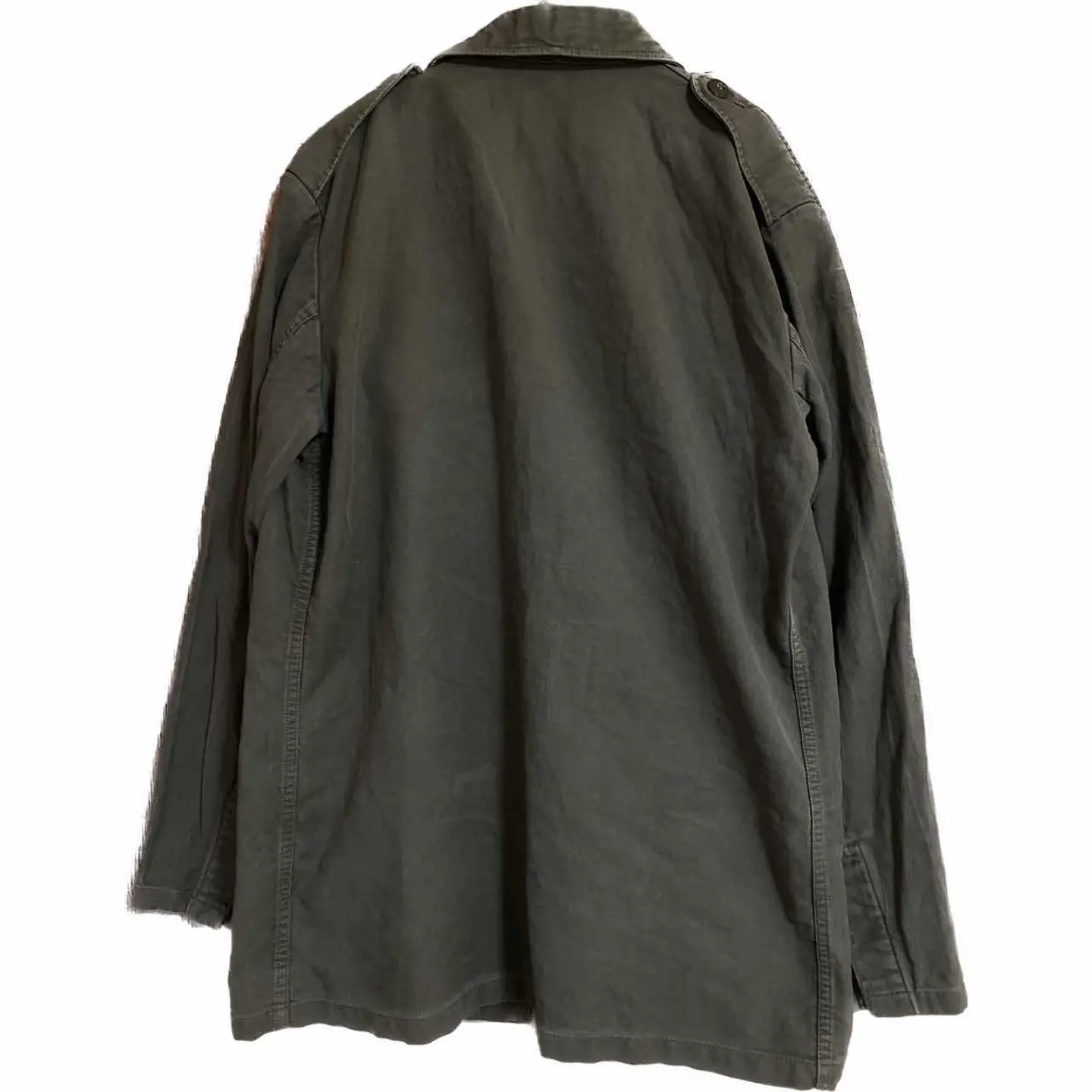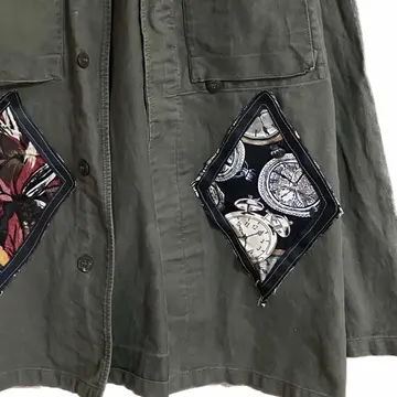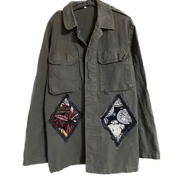 80s ドイツ軍 GMBGジャケット リメイク アート 個性派11 80s ドイツ軍 GMBGジャケット【最高責任者に、着ることが、ゆるされる、激レアな、ジャケット】BDUに、ちかいつくりで、ダメージなし、カッコ良過ぎる!! それを、、、いや、、もっとカッコよくなるでしょ?と、情熱もって、リメイクしました、 作業風景まで、載せてます、 洗えるレザー使用、さらに、中抜きといわれる、高等技術に、ワザと、ちょっぴり柄を、はみださせてます、理由 経年きたら、ここが、少しケバになる、デザインに、なるんです、ガンガンカッコよくなる、 militaryジャケット、 コーデも、2コーデ!! 最初は、アメカジ、次fudgeカジュアル、 デザインを、リメイクしたから、これ、決まるんすよ、ただのミリタリーだったら、 無理。迷わずゲット!! 【カラー】 カーキ、 【素材】 コットン 【カラー】 カーキ 流行りに左右されません、 【condition】 ダメージ無く古着の感じで超かっこいいです、 【サイズ】海外のなんでXLはあります、11表記!!よって重ね着いけます!!年中活躍 平置き片面採寸 モデル170センチ 着丈78 身幅63 肩幅57 袖丈65 ボタン調節や。ロールアップよゆうなんで、関係ないです、 170.Mジャストの私が、重ね着してかなり、余裕です、 #ヨーロピアン古着 #ヴィンテージミリタリーシャツジャケット #ヴィンテージミリタリー #70年ドイツ #ジャーマニーミリタリージャケット