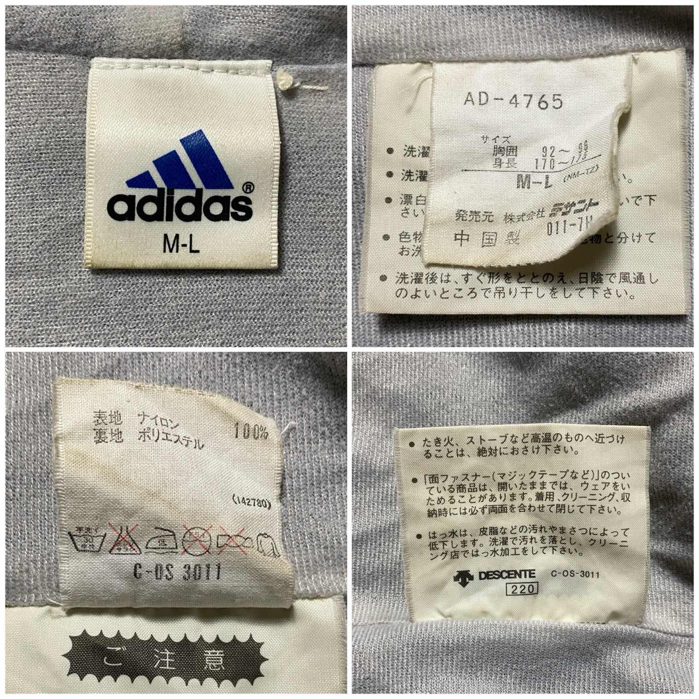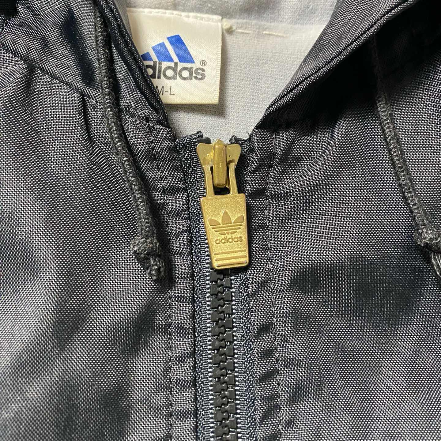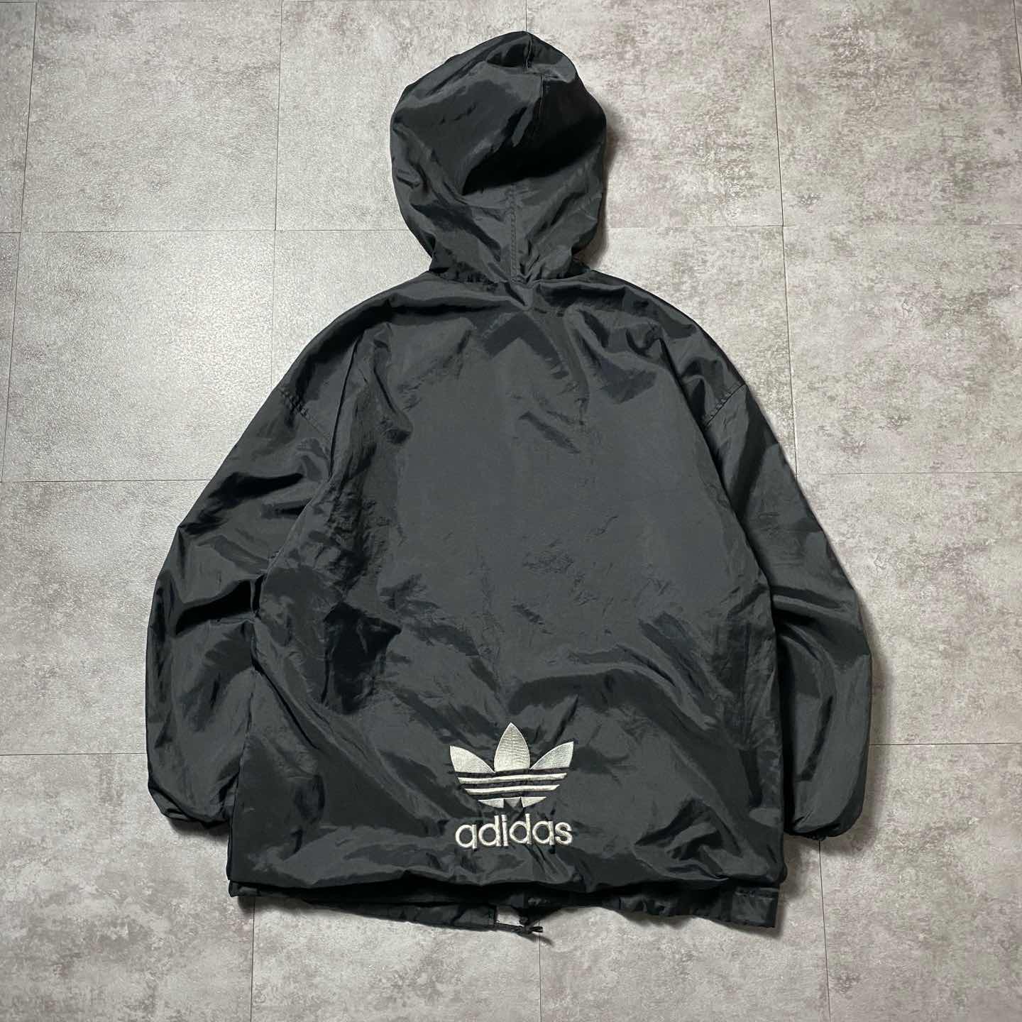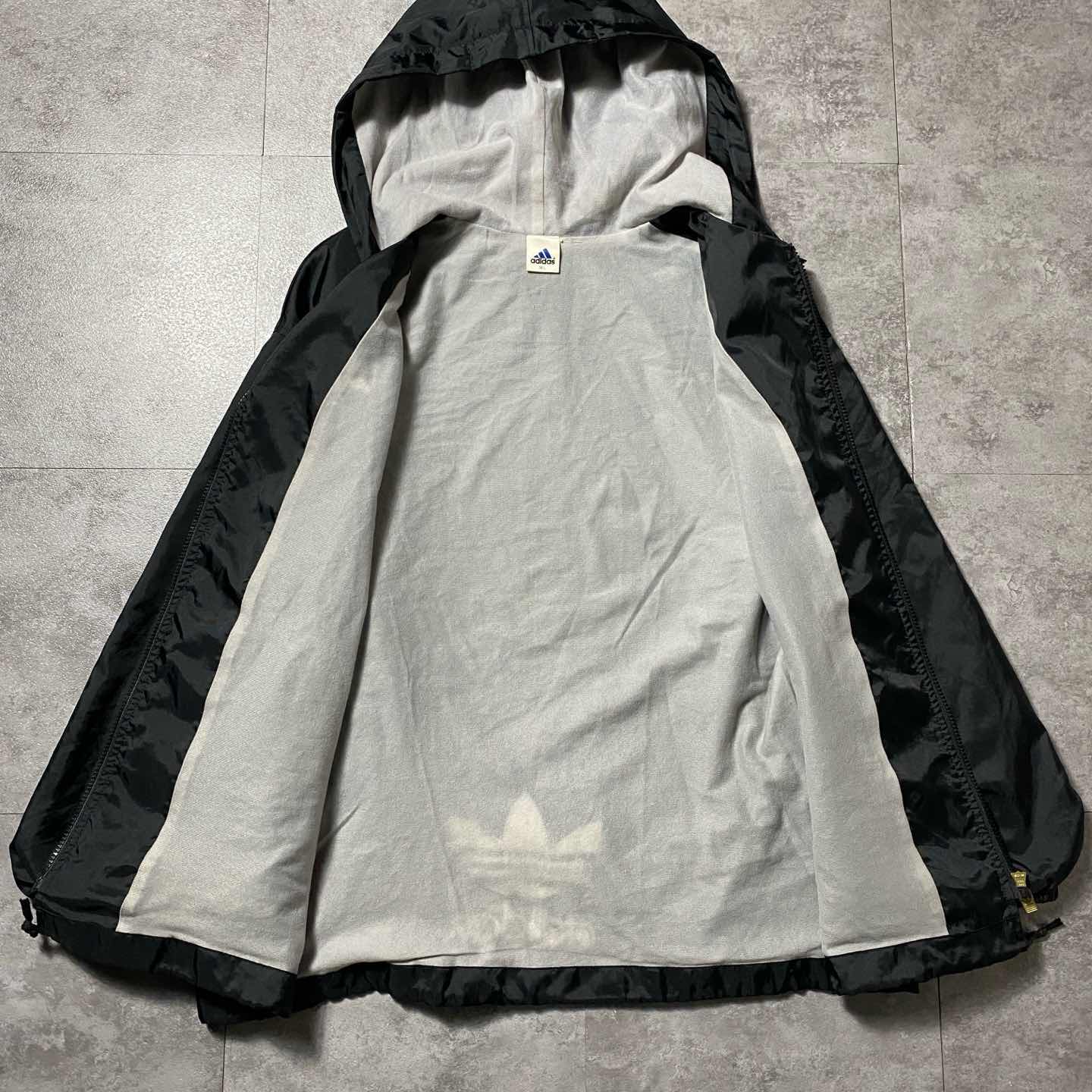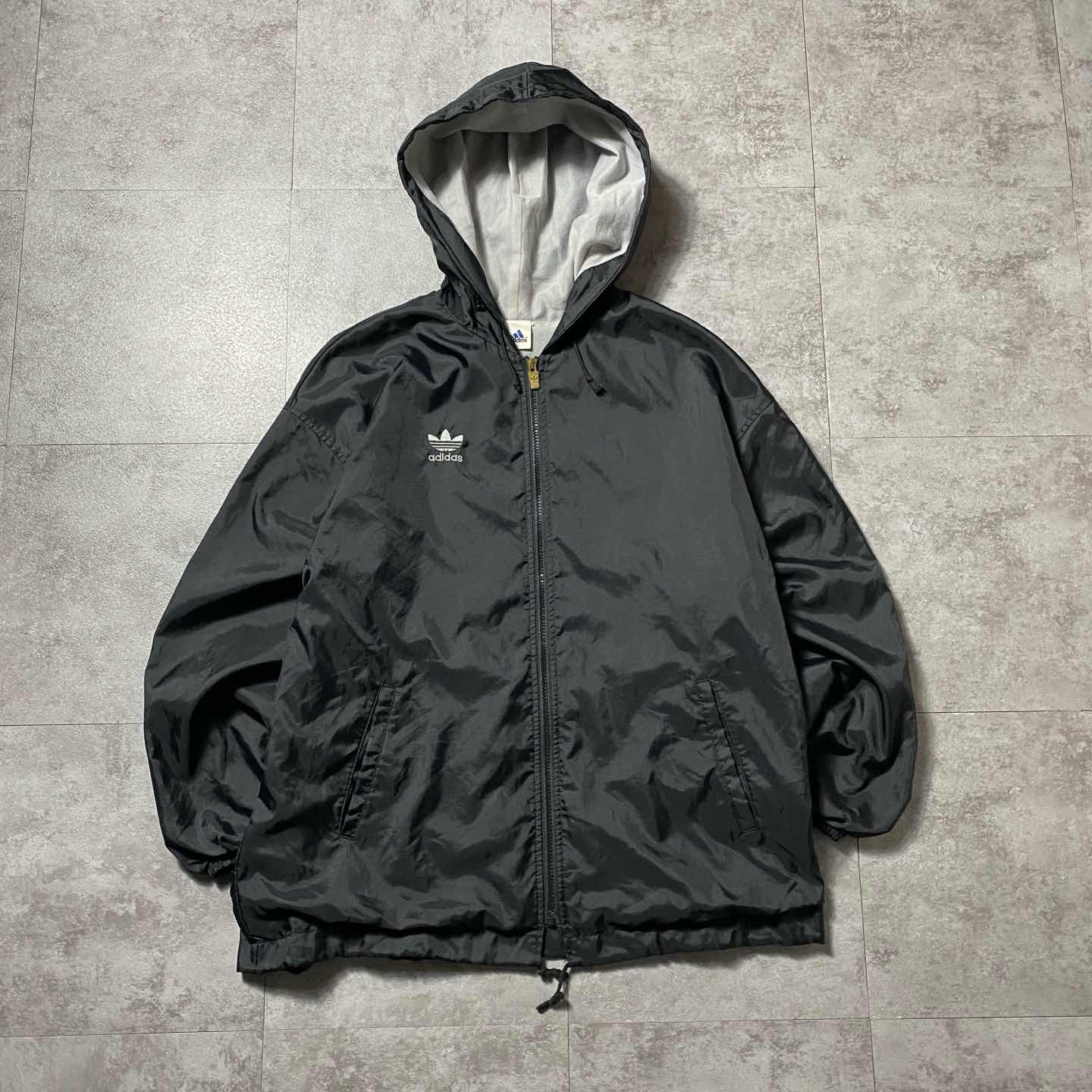 90s adidas デサント製アディダス トレフォイル 刺繍ロゴ フード ナイロンジャケット