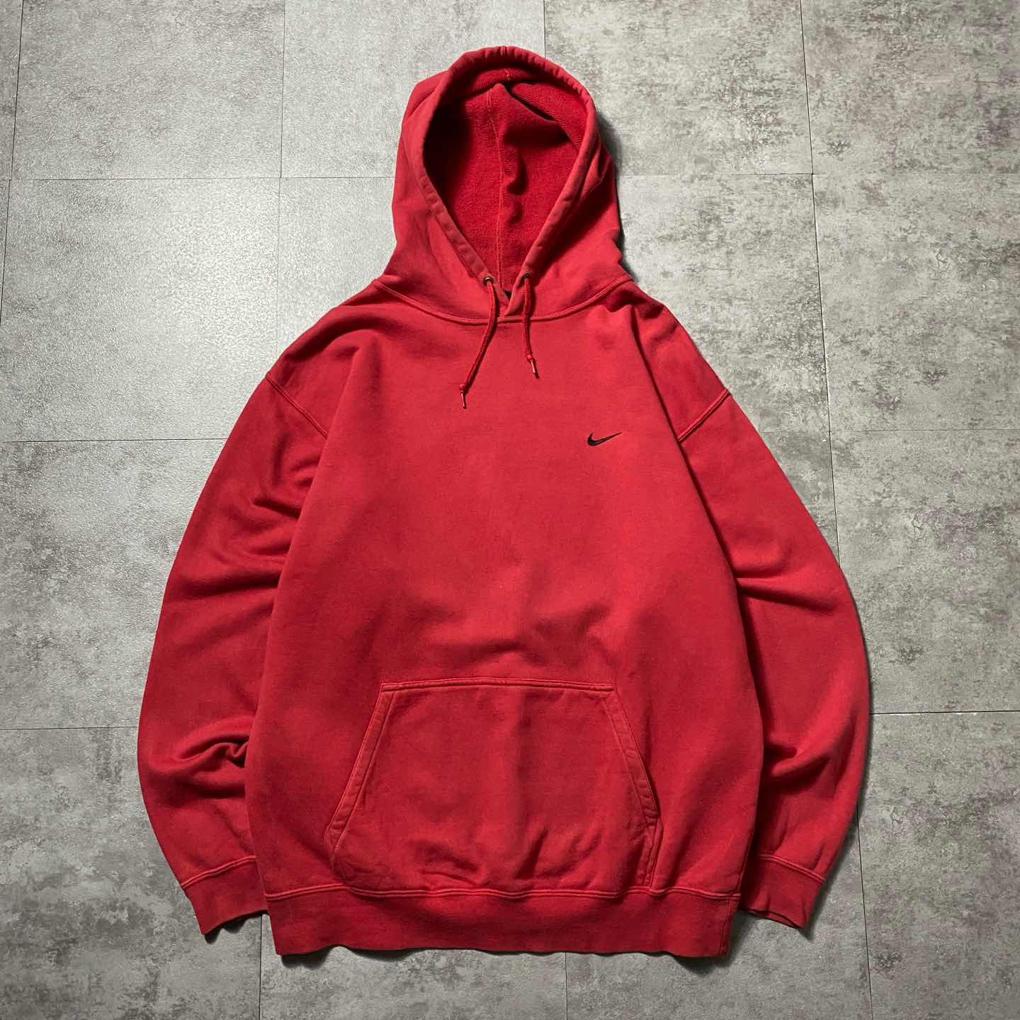 00s NIKE ナイキ スウォッシュ 刺繍ワンポイント レッド スウェット パーカー