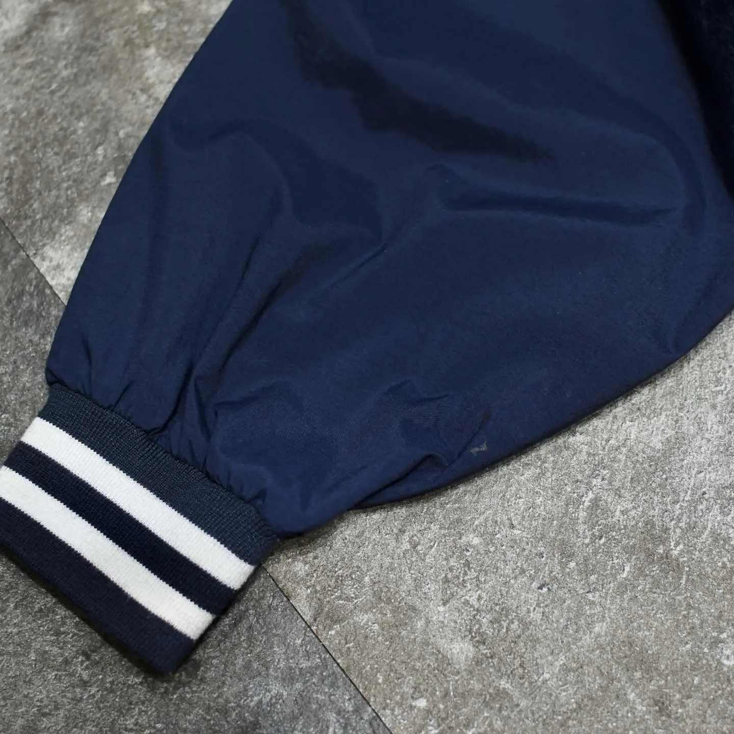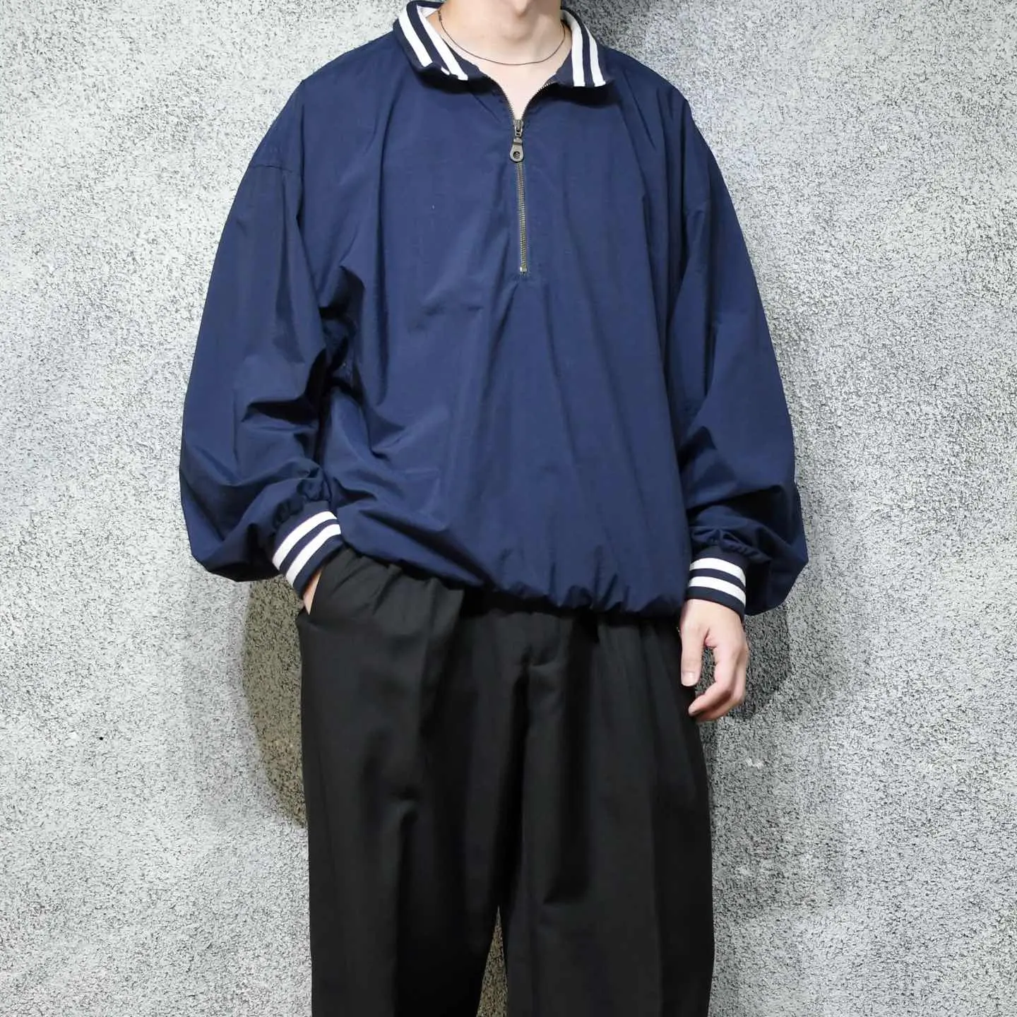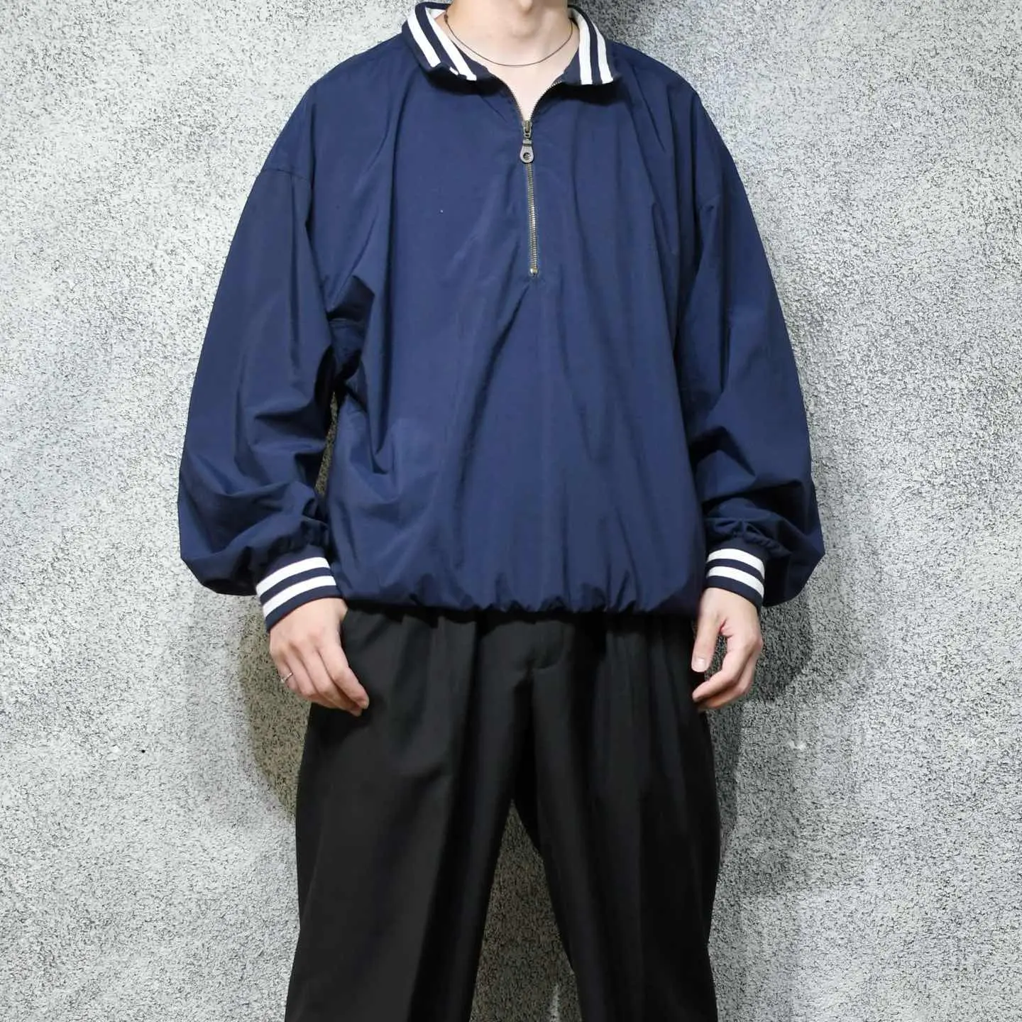 SIZE:- 着丈73cm 肩幅70cm 身幅72cm 袖丈62cm fabric/nylon 着用画像 177cm/64kg 何故だか裏地の袖部分がちぎられた ナイロンプルオーバー。 ゆったりとしたサイズでありながら、 裾のリブでしっかり溜まる、 丸みのあるシルエットでオーバーサイズが 苦手な方でも、コーデに落とし込みやすいのでは ないでしょうか。 またナイロンプルオーバーの中でも、 比較的数少ない襟付きの個体。 通常の個体と比べても、やや上品で熟れた雰囲気を 纏うことができる逸品です。 スウェット代わりとして着たり、この上から ナイロンベストなんかをレイヤードするのも おすすめです。 脇にはベンチレーション付き。 ※胸元に小さなピンホール、右袖に汚れあり。 ※撮影状況により、実物と多少色が異なる場合が ございます。 ※古着を取り扱っているため、気づかない汚れや ほつれ等がある場合がございます。 ※サイズは着用感で選んでおり、 表記サイズではございません。 表記サイズは説明欄の最初に記載しております。 オーバーサイズ old vintage ヴィンテージ used 80's 90's POLO RALPH LAUREN Eddie Bauer OLD GAP LANDS' END ランズエンド LLBean エルエルビーン オールドギャップ エディーバウアー ラルフローレン ブルックスブラザーズ Brooks Brothers ネイビー 紺色 スウェット プルオーバー などがお好きな方 #vintage #オーバーサイズ #old #used #90s #80s #古着 #ヴィンテージ #LLBean #エルエルビーン #EddieBauer #エディーバウアー #ラルフローレン #POLORALPHLAUREN #ブルックスブラザーズ #BrooksBrothers #ナイロンプルオーバー #プルオーバー #スウェット #ハーフジップ