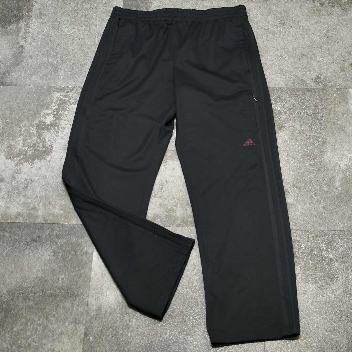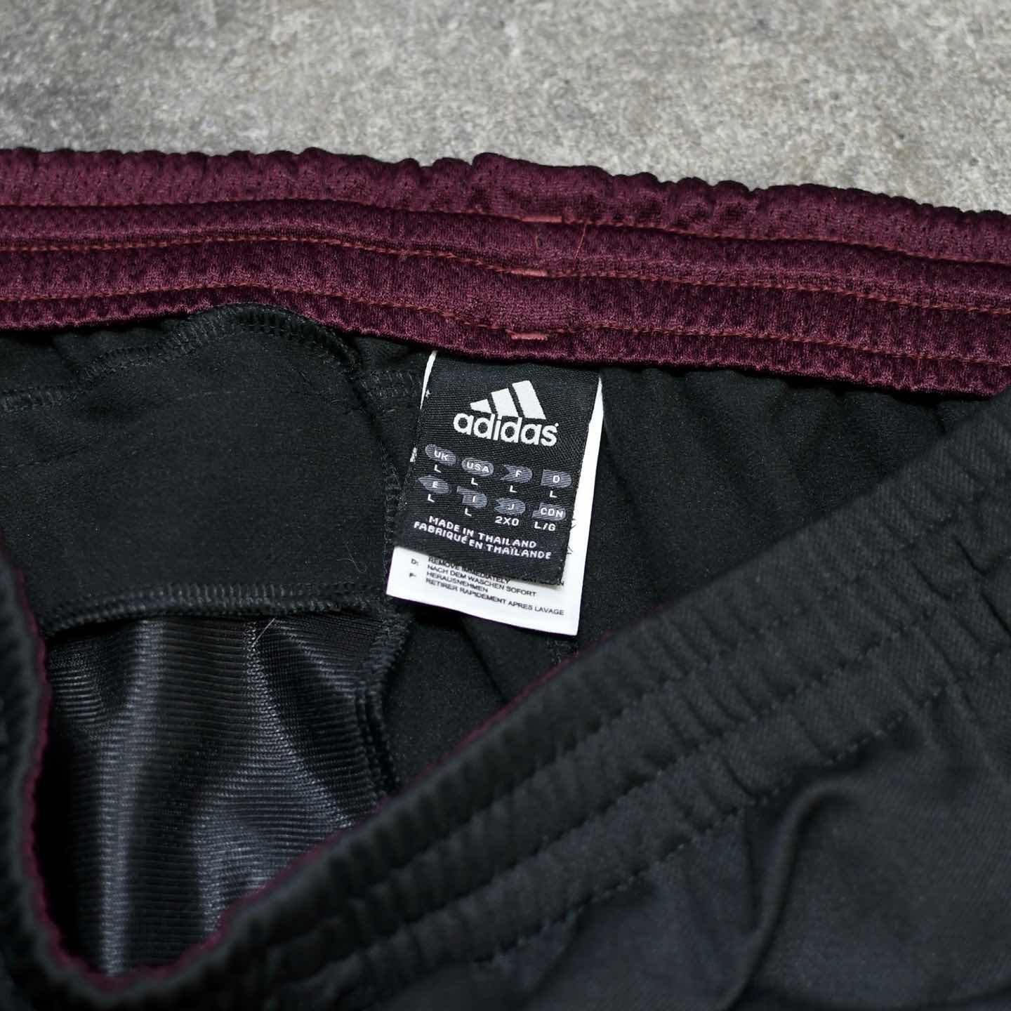 SIZE:L ウエスト~116cm(ドローコード付き) 総丈105cm 股下80cm わたり37cm 裾幅25cm fabric/poly 着用画像 177cm/64kg 左腿に付く小さなポケット、 そしてバーガンディ色のロゴに惹かれました。 ブラックにブラックのサイドラインという 組み合わせも、新鮮味がありつつ、さり気なく 主張する程度のデザイン。 だからこそ幅広いコーデに 落とし込めるのではないでしょうか。 裾まで太さをしっかり残した ストレートシルエットというのも、 ポイントが高い、、、 カラーリング、シルエット、ディテール。 どれも推せる一本です。 ※裾上げ等のレングス直しにつきましては、 購入前に、必ずご連絡お願い致します。 ※撮影状況により、実物と多少色が異なる 場合がございます。 ※古着を取り扱っているため、気づかない汚れや ほつれがある場合がございます。 ※サイズは着用感で選んでおり、 表記サイズではございません。 表記サイズは説明欄の最初に記載しております。 オーバーサイズ old vintage ヴィンテージ used 80's 90's POLO RALPH LAUREN Eddie Bauer OLD GAP LANDS' END ランズエンド LLBean エルエルビーン オールドギャップ エディーバウアー ラルフローレン ブルックスブラザーズ Brooks Brothers ワイドパンツ 黒 イージーパンツ などがお好きな方 #vintage #オーバーサイズ #old #used #90s #80s #古着 #ヴィンテージ #LLBean #エルエルビーン #EddieBauer #oldgap #オールドギャップ #LANDSEND #ラルフローレン #POLORALPHLAUREN #ブルックスブラザーズ #BrooksBrothers #トラックパンツ #ワイドパンツ #イージーパンツ #adidas