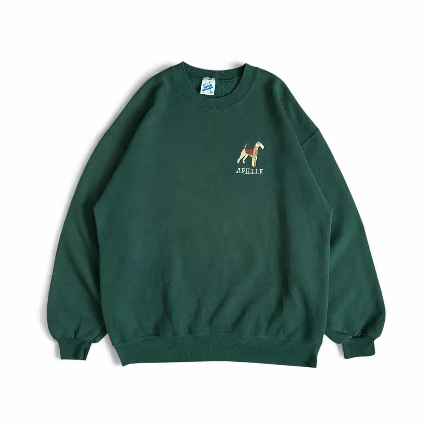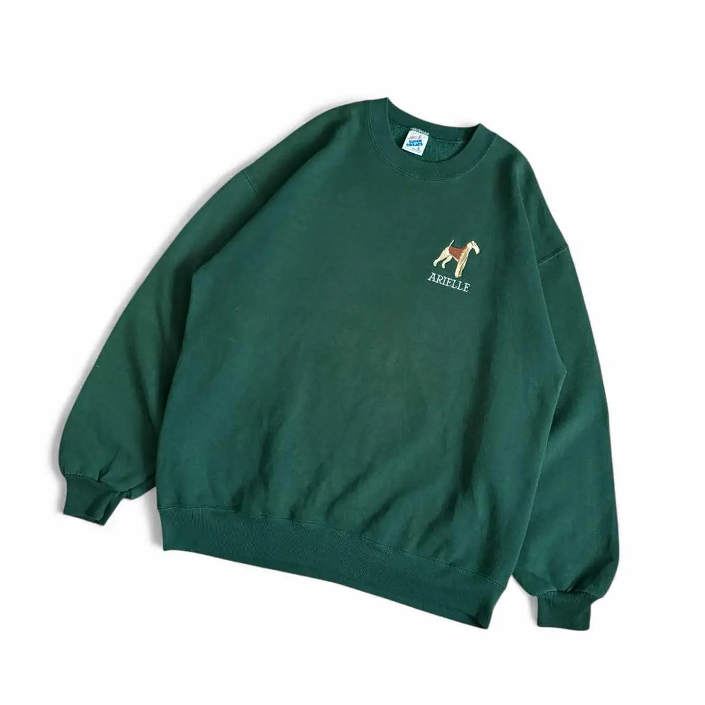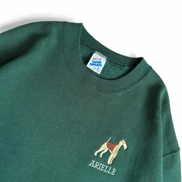 ○商品説明 90s USA製 JERZEES エアデール・テリアが胸元に刺繍されています。 可愛らしいですね。 気になった方は是非。 ○サイズ 表記 L 平置き ・肩幅56cm ・身幅56cm ・袖丈54cm ・着丈66cm ○商品の状態 B A:使用感がほとんどなく、汚れやシミもなし B:多少使用感はあるが、汚れやシミも少ない C:使用感があり、汚れやシミがある D:使用感があり、大きな汚れや破れあり ○色 グリーン #90s#USA製#JERZEES#ジャージーズ#アニマル#スウェット