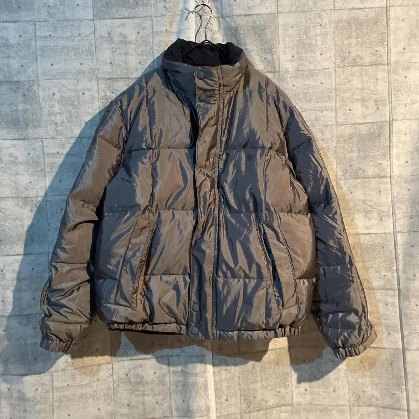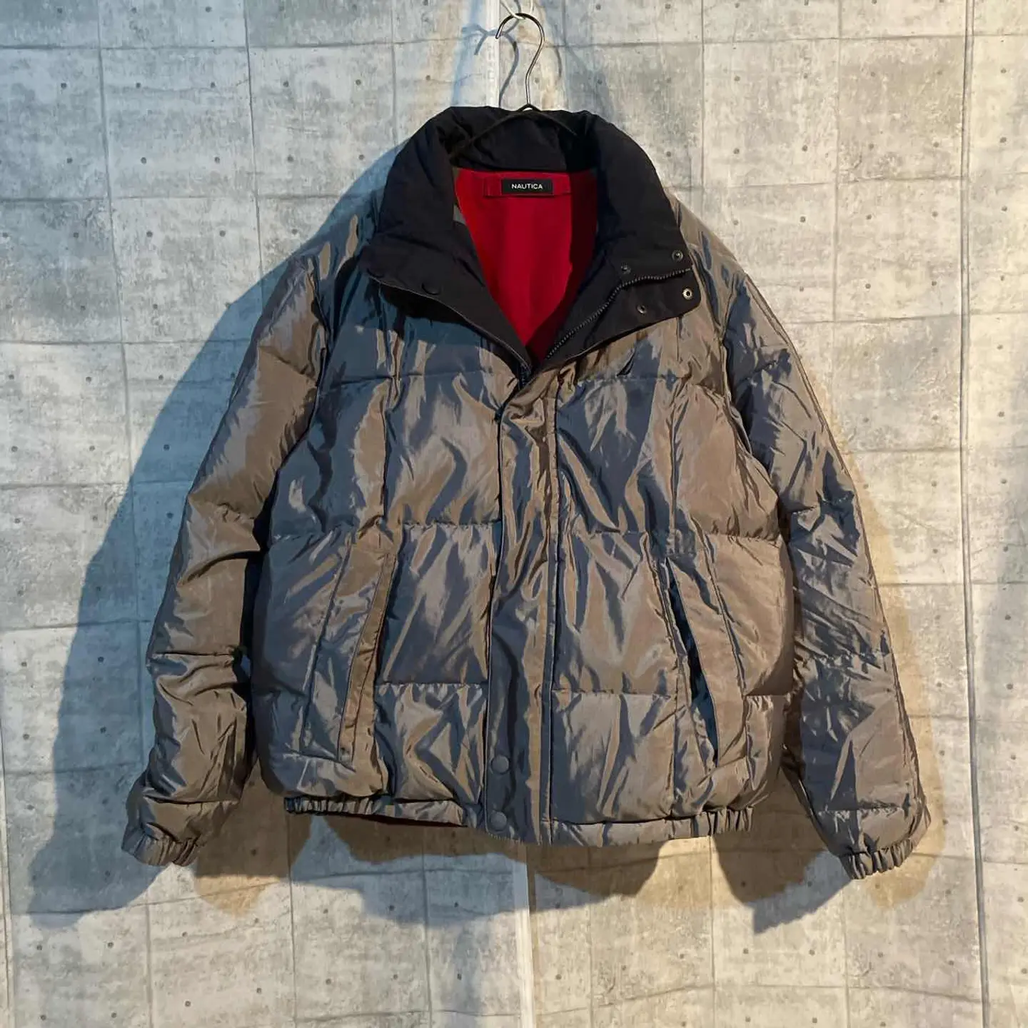【アイテム説明】 NAUTICA(ノーティカ)のリバーシブルダウンジャケット。 表は光沢感のあるグレージュ×ネイビーのシックな配色、裏は鮮やかなレッドでストリートライクな印象に仕上げた、気分でガラッと雰囲気を変えられる一着です。 ゆったりとした90’sシルエットに、程よいボリューム感のダウン。 軽量ながら防寒性が高く、街でもアウトドアでも活躍。 表裏どちらをメインにしても完成度が高く、まさに“2着分の価値”を楽しめます。 シンプルなデザインながら、リバーシブル仕様や襟の切り替えが生む立体感で、古着コーデに奥行きをプラス。 90’s NAUTICAらしい無骨さと遊び心を併せ持った、雰囲気抜群のアウターです。