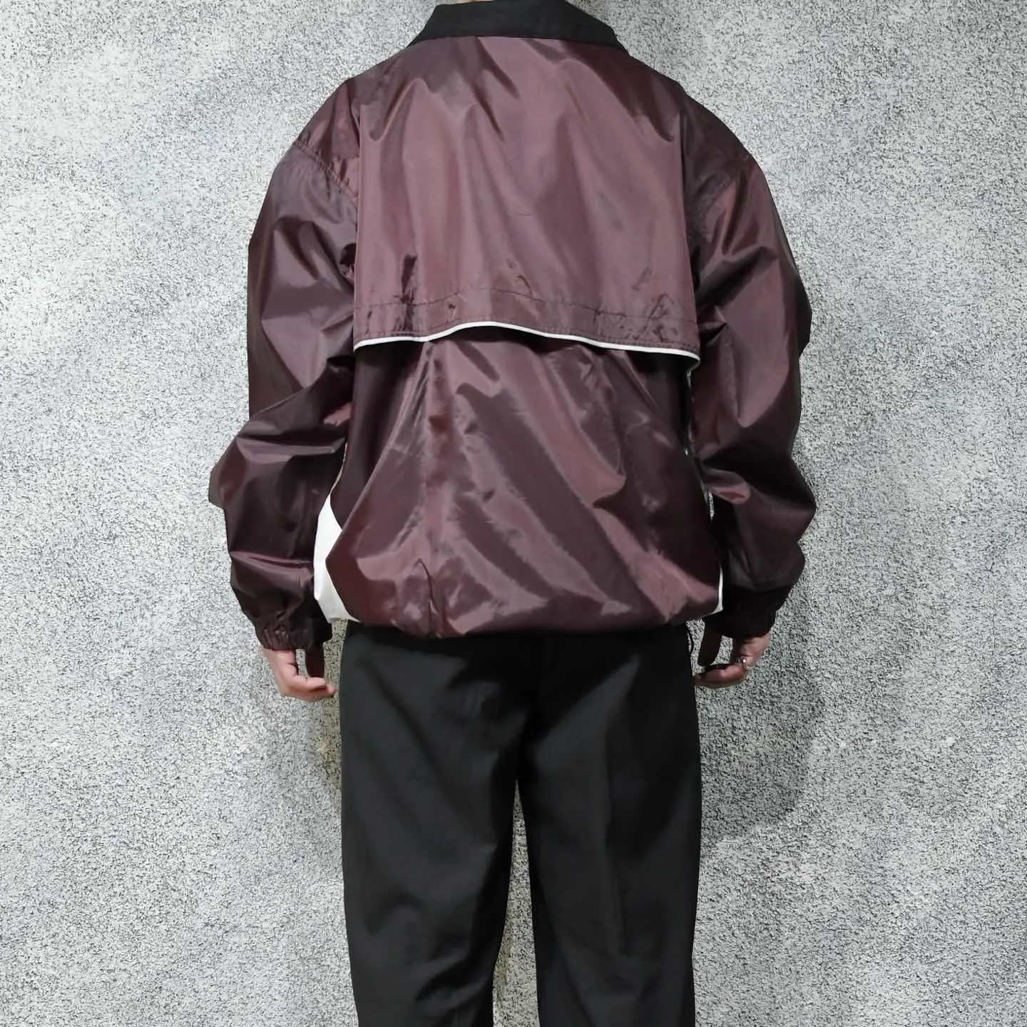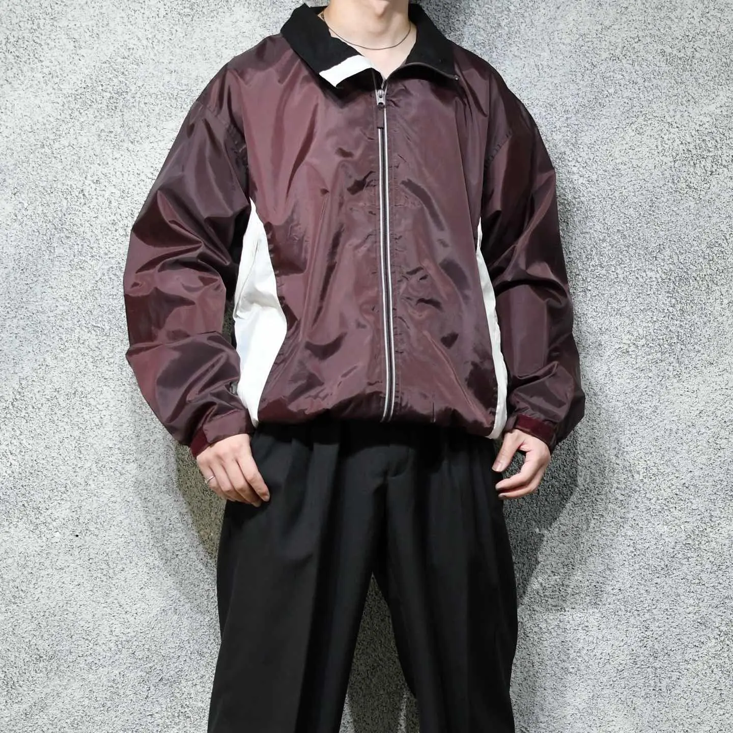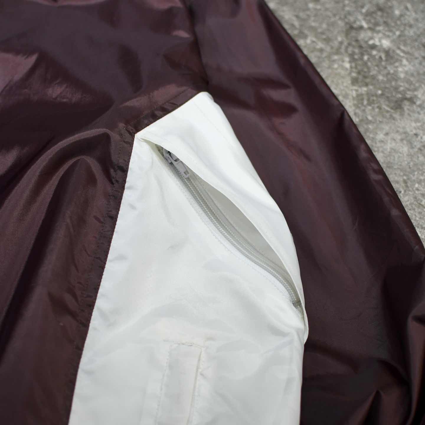 SIZE:XL 着丈76cm 肩幅61cm 身幅69cm 袖丈65cm fabric/nylon 着用画像 177cm/64kg シャリ感のあるナイロンらしいナイロンジャケット。 深みのあるカラーとはっきりとしたカラーとの 切り替えにはデザイン性を感じますし、 裾の両サイドに付くドローコード、 ポケットの上にあるジップは開けると メッシュ生地で、ベンチレーションのような 役割を担っており、機能性をも兼ね備えた逸品。 天気の崩れた日には、 ナイロンジャケットらしい使い道、それ以外は ライトアウターとして落とし込んでみてはどうでしょう。 ※撮影状況により、実物と多少色が異なる場合が ございます。 ※古着を取り扱っているため、気づかない汚れや ほつれ等がある場合がございます。 ※サイズは着用感で選んでおり、 表記サイズは説明欄の最初に記載しております。 古着 オーバーサイズ old vintage ヴィンテージ used 80's 90's アメリカ古着 ユーロ古着 POLO RALPH LAUREN Eddie Bauer OLD GAP LANDS' END ランズエンド LLBean エルエルビーン オールドギャップ エディーバウアー ラルフローレン ブルックスブラザーズ Brooks Brothers バーガンディ ワインレッド ホワイト 白 などがお好きな方 #vintage #オーバーサイズ #old #used #90s #80s #古着 #ヴィンテージ #アメリカ古着 #ユーロ古着 #LLBean #エルエルビーン #EddieBauer #エディーバウアー #oldgap #オールドギャップ #LANDSEND #ランズエンド #NAUTICA #ノーティカ #ラルフローレン #POLORALPHLAUREN #ブルックスブラザーズ #BrooksBrothers #ブルゾン #ナイロンジャケット #ジャケット #フルジップ