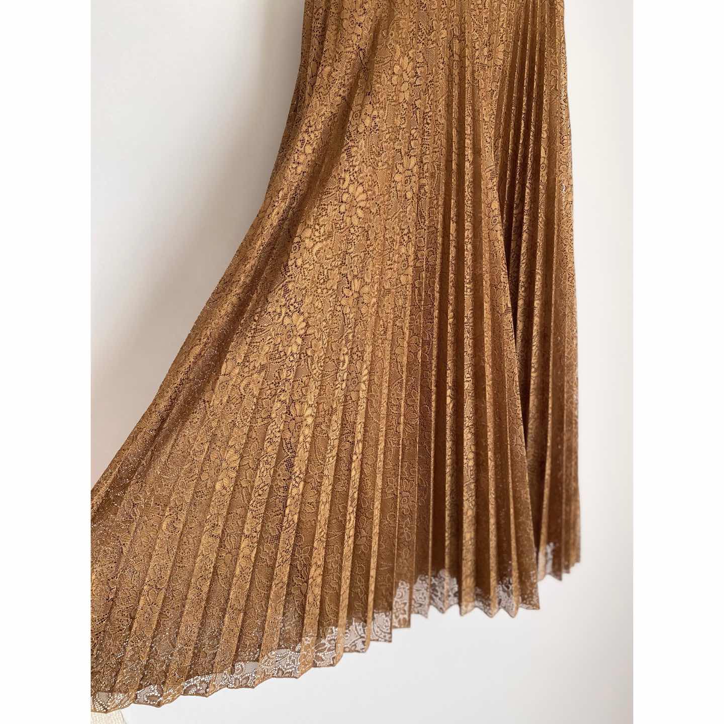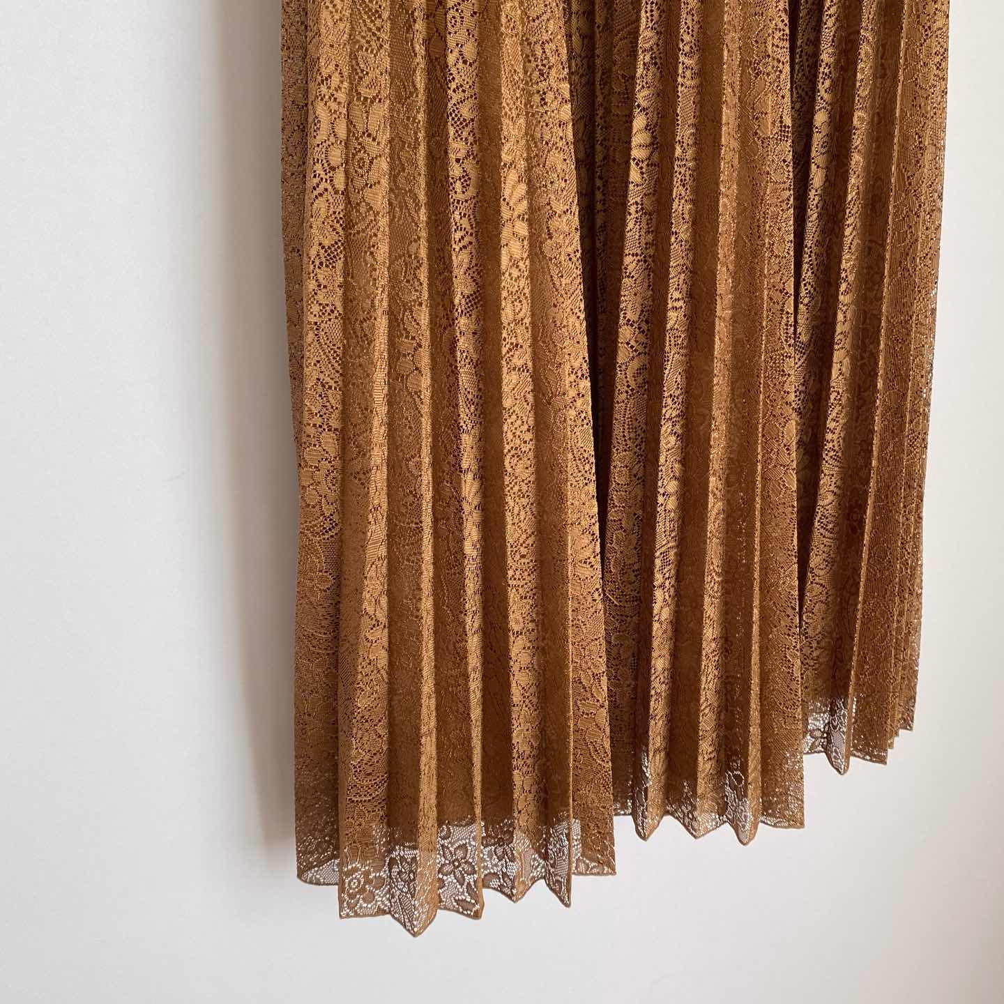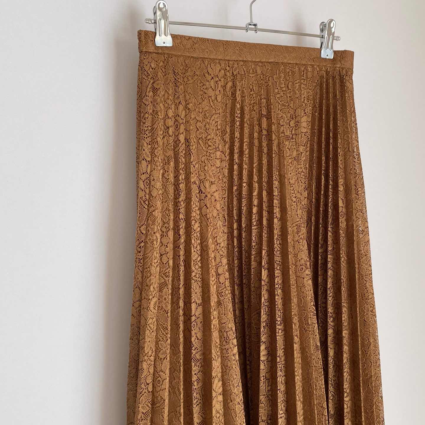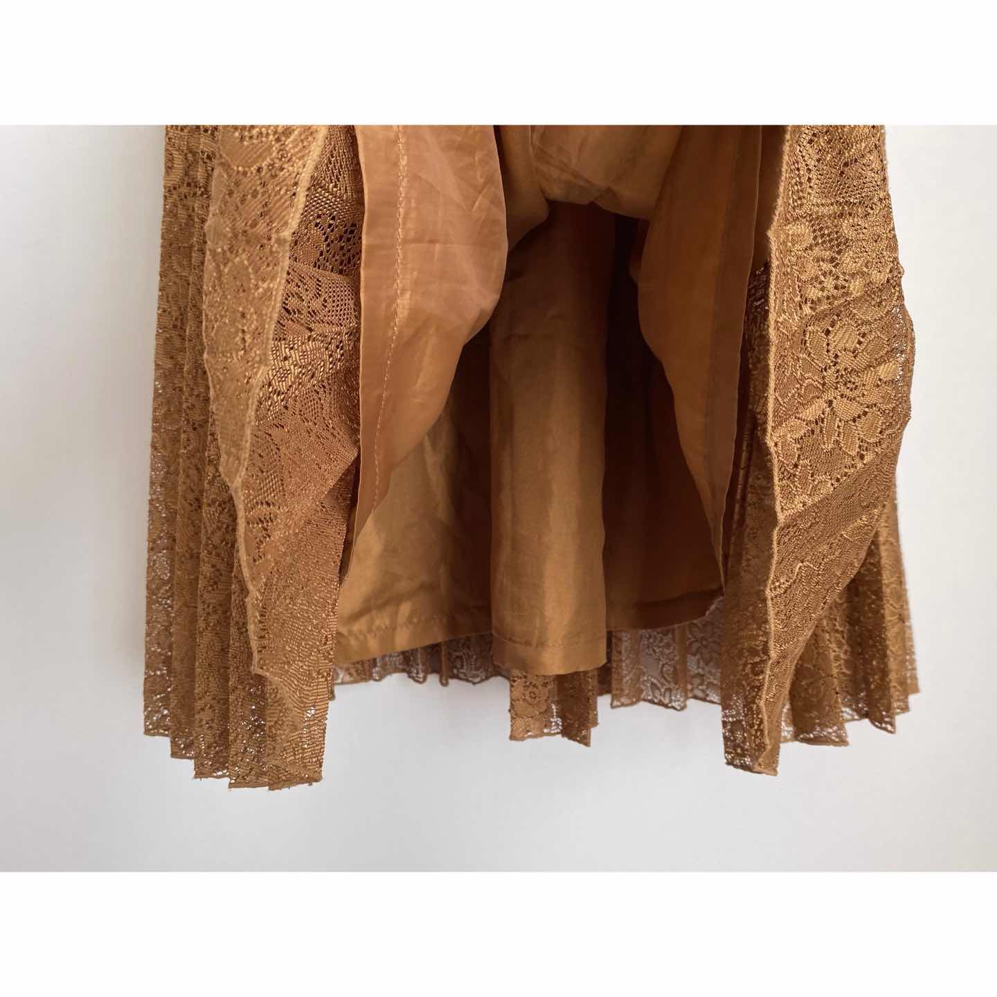 ボタニカルフラワー模様のレースが魅力的なヴィンテージ古着スカート。軽やかな生地感でふんわり広がるプリーツデザイン。落ち着いた色合いで、カジュアルからフェミニンなスタイルまで幅広いコーディネートに合わせていただけます。 □Size (着用感 レディースM程度) 総丈85㎝ ウエスト68㎝ ヒップ112㎝ (平置き) □タグ欠損の為素材不明 (おそらくポリエステルかと思われます) □Condition【B】 目立ったダメージの無い通常の古着コンディションです。中古品であることをご理解のうえお買い求めください。ご購入前に必ずショッピングガイドのご確認をお願いいたします。 【S】未使用 【A】未使用に近い 【B】やや使用感あり 【C】使用感あり Item No.3404