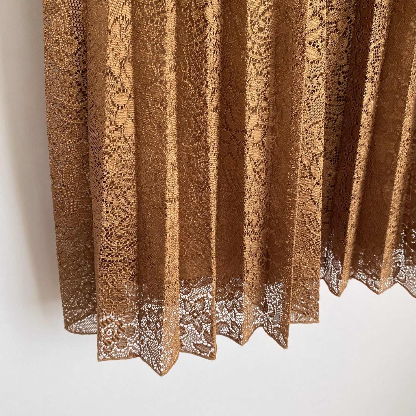 Vintage retro botanical flower lace pleats long skirt